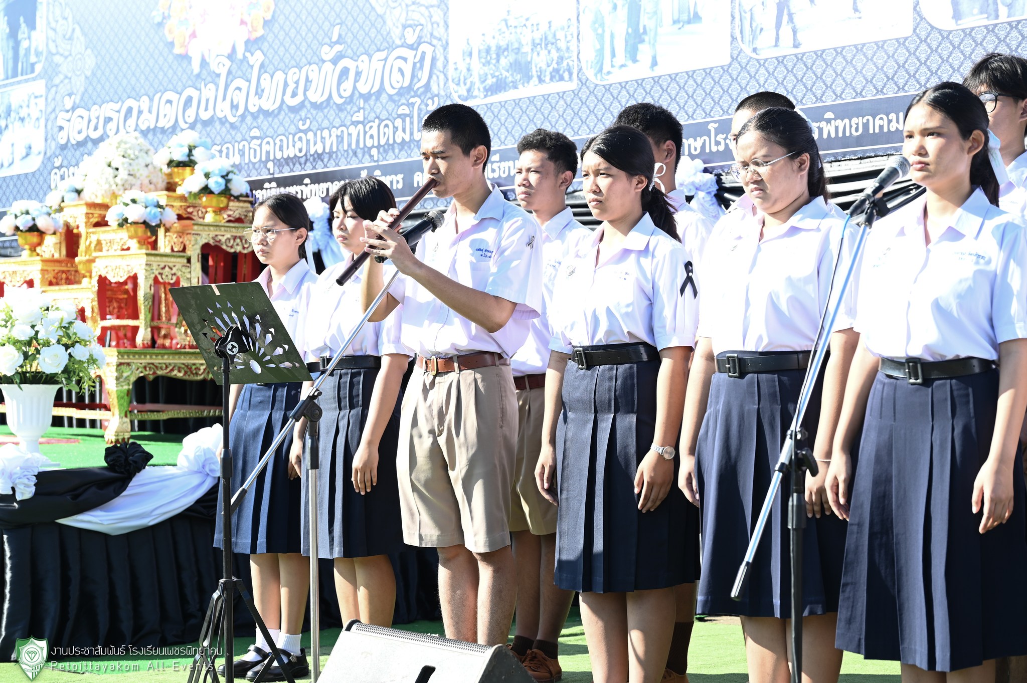 ในการนี้ ดร.พีระวัตร จันทกูล ผู้อำนวยการโรงเรียนเพชรพิทยาคม เป็นประธานในพิธี พร้อมด้วยฝ่ายบริหาร คณะครู บุคลากรทางการศึกษา จำนวน 144 คน และนักเรียน จำนวน 2,749 คน รวมผู้เข้าร่วมพิธีทั้งสิ้น 2,893 คน ร่วมกันน้อมจิตอธิษฐานสำนึกในพระมหากรุณาธิคุณ ณ สนามโรงเรียนเพชรพิทยาคม จังหวัดเพชรบูรณ์