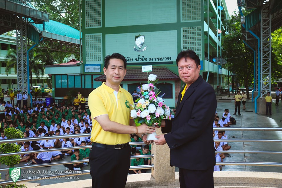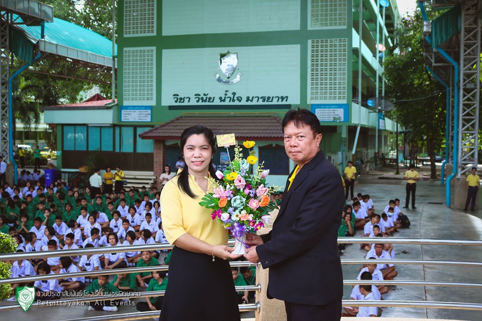 วันอังคารที่ 18 มิถุนายน 2562 นายชัยชาญ ปัญญาพวก ผู้อำนวยการโรงเรียนเพชรพิทยาคม มอบช่อดอกไม้แสดงความยินดีกับครูธีรพงศ์ จุลสายพันธ์ , ครูเพ็ญศรี บุญทรง และครูพรศิริ ใจชื่น เลื่อนวิทยฐานะชำนาญการพิเศษ