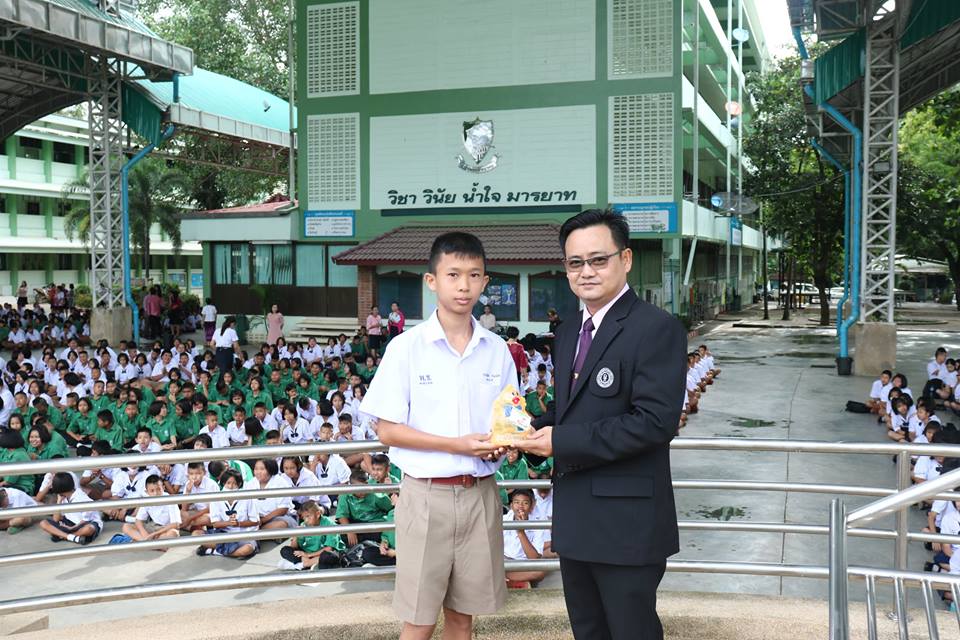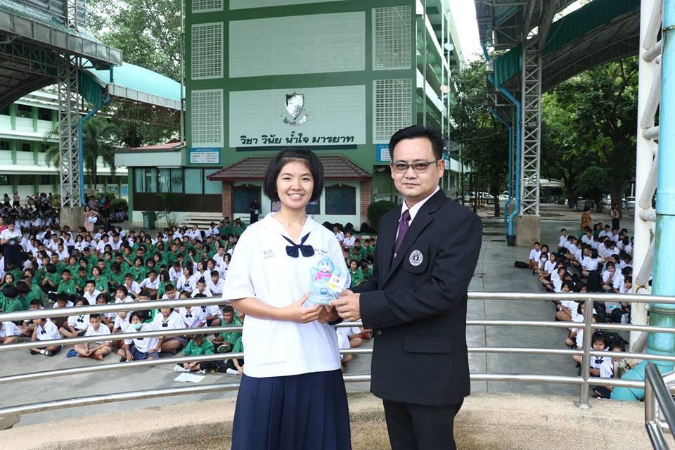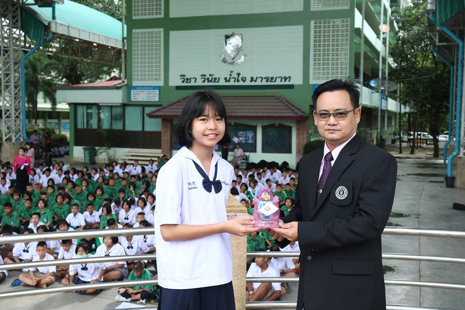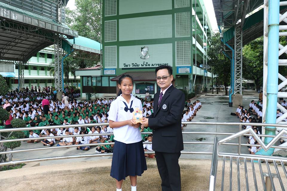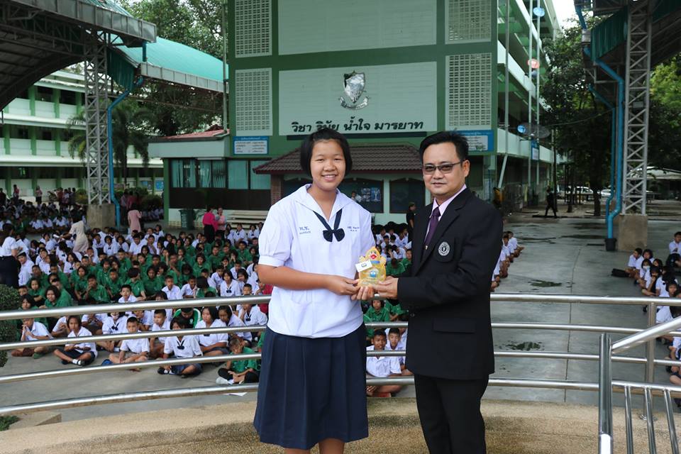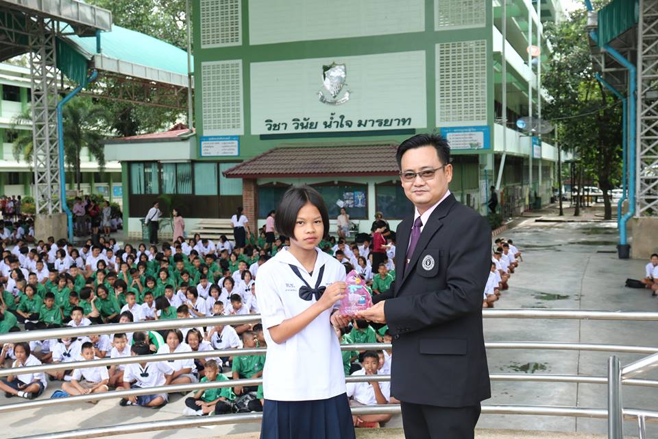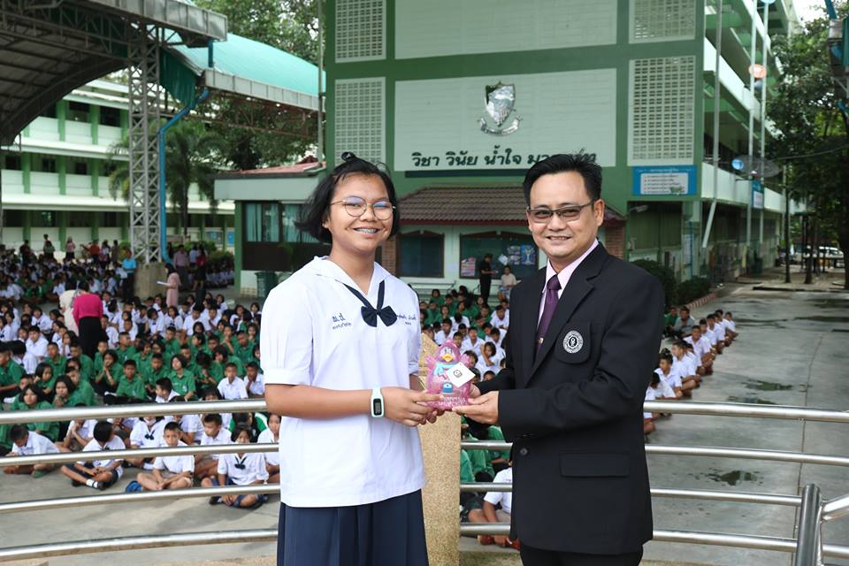 รองผู้อำนวยการ กลุ่มบริหารกิจการนักเรียน โรงเรียนเพชรพิทยาคม มอบรางวัลยอดนักออม ให้แก่นักเรียนโรงเรียนเพชรพิทยาคม ณ บริเวณอาคารพระราชปริญัติบัณฑิต โรงเรียนเพชรพิทยาคม
