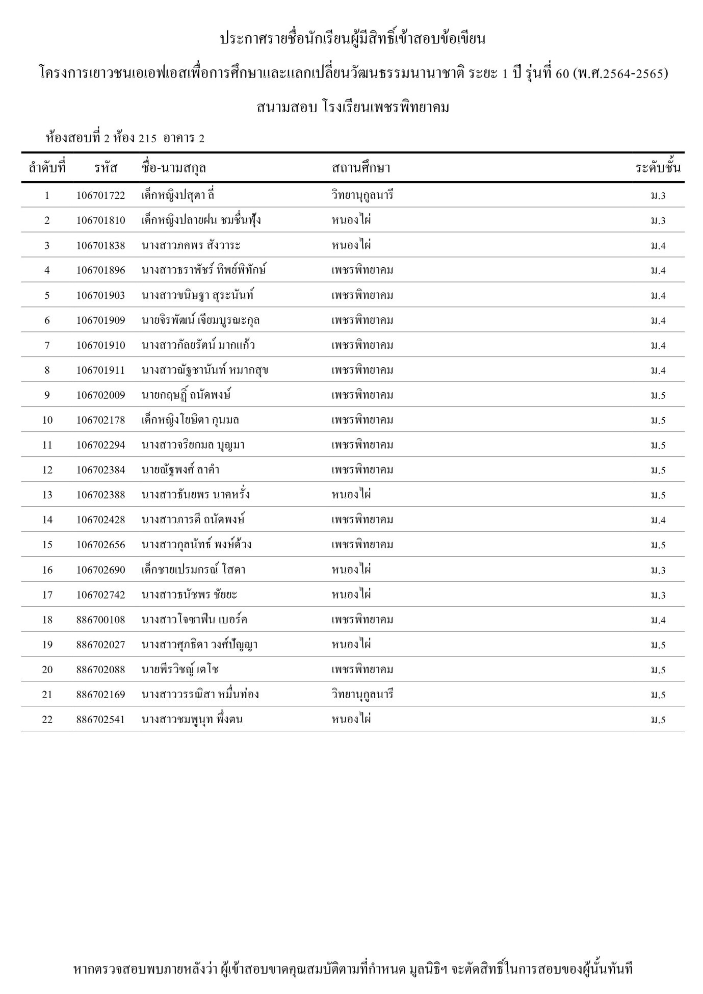 ณ สนามสอบ อาคาร 2 โรงเรียนเพชรพิทยาคม
