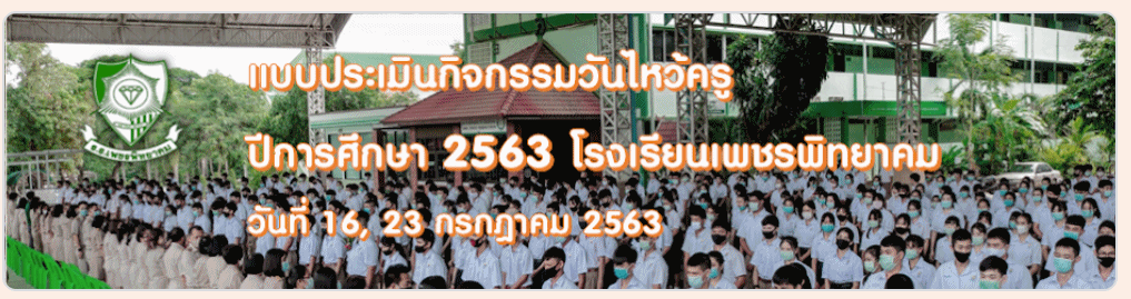 คำชี้แจง : แบบสอบถามนี้ใช้ในการประเมินความพึงพอใจต่อกิจกรรมวันไหว้ครู ปีการศึกษา 2563 โรเรียนเพชรพิทยาคม วันที่ 16, 23 มิถุนายน 2563