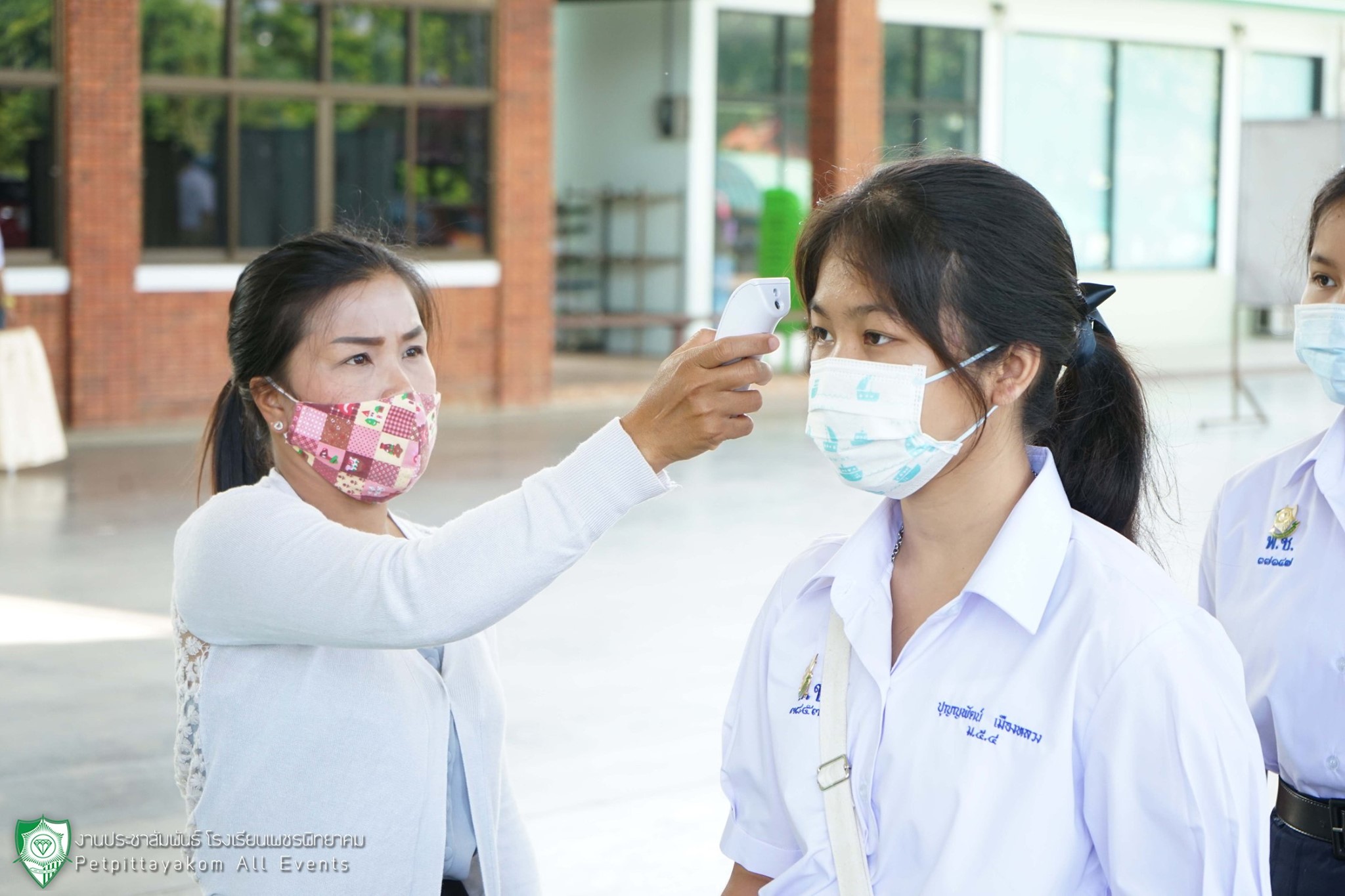 วันที่ 24 มิถุนายน 2563 เวลา 08.30 น. โรงเรียนเพชรพิทยาคม ดำเนินการมอบเอกสารการจัดการเรียนการสอนและค่าเครื่องแบบนักเรียน ภาคเรียนที่ 1 ปีการศึกษา 2563 ในสถานการณ์พิเศษการแพร่ระบาดของโรคติดเชื้อไวรัสโคโรนา ๒๐๑๙ (COVID-19) ให้กับนักเรียนชั้นมัธยมศึกษาปีที่ 5 โดยมีนายวิเศษ ปิ่นพิทักษ์ ผู้อำนวยการโรงเรียนเพชรพิทยาคม พร้อมด้วยรองผู้อำนวยการ ทั้ง 4 กลุ่ม ได้พบปะพูดคุยกับนักเรียน เพื่อชี้แจงวิธีการจัดการเรียนการสอนแบบ “New Normal” ในยุค “COVID-19” และชี้แจงถึงมาตรการป้องกันการแพร่ระบาดของเชื้อไวรัสโคโรนา ๒๐๑๙ (COVID-19) ของทางโรงเรียน ในการนี้โรงเรียนได้ปฏิบัติตามมาตรการป้องกันการแพร่ระบาดอย่างเคร่งครัด ทั้งการคัดกรองโดยการลงชื่อ หรือสแกน QR Code ไทยชนะ ตรวจวัดอุณหภูมิร่างกาย บริการเจลแอลกอฮอล์ล้างมือ ดูแลการเว้นระยะห่างทางสังคม รวมไปถึงตรวจสอบคณะครู ผู้ปกครองและนักเรียนให้สวมหน้ากากอนามัยหรือหน้ากากผ้าทุกคน