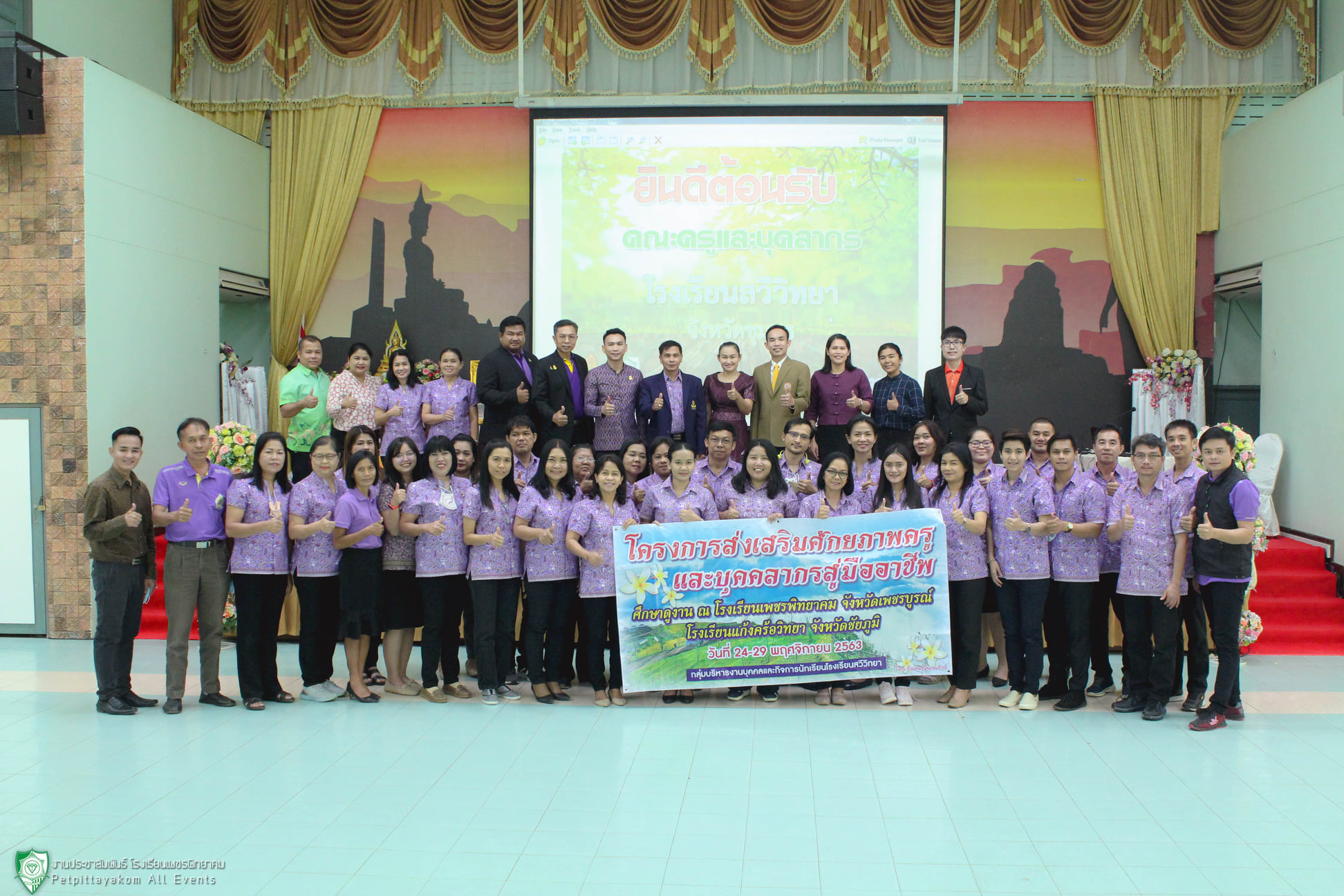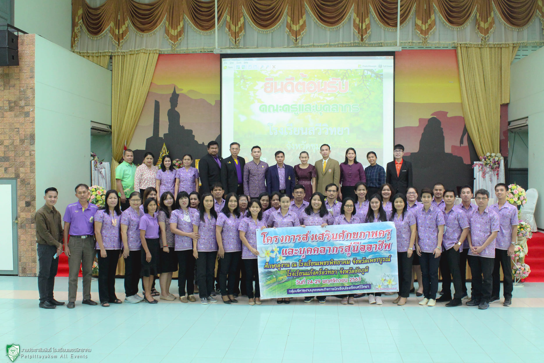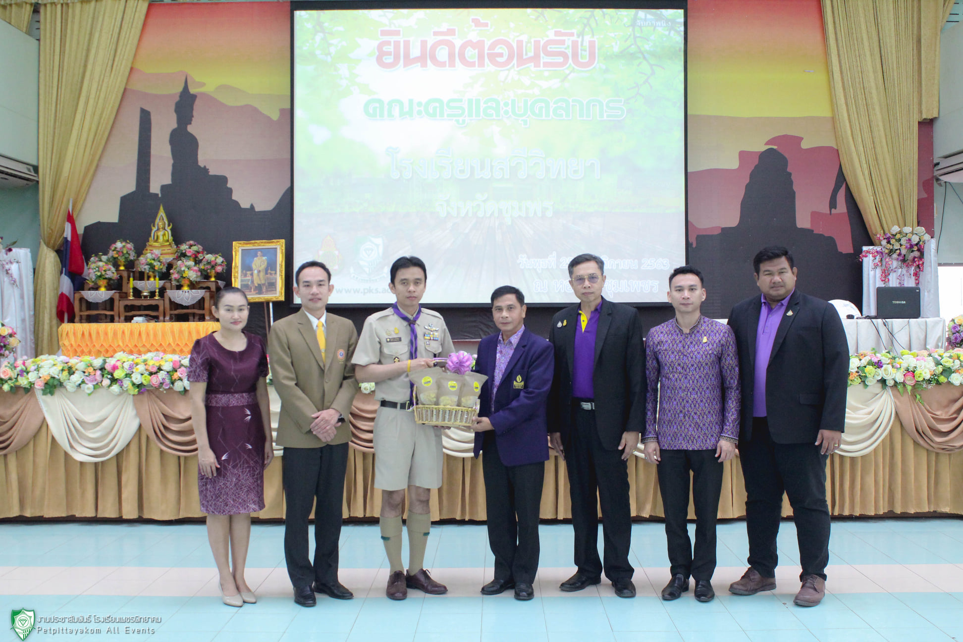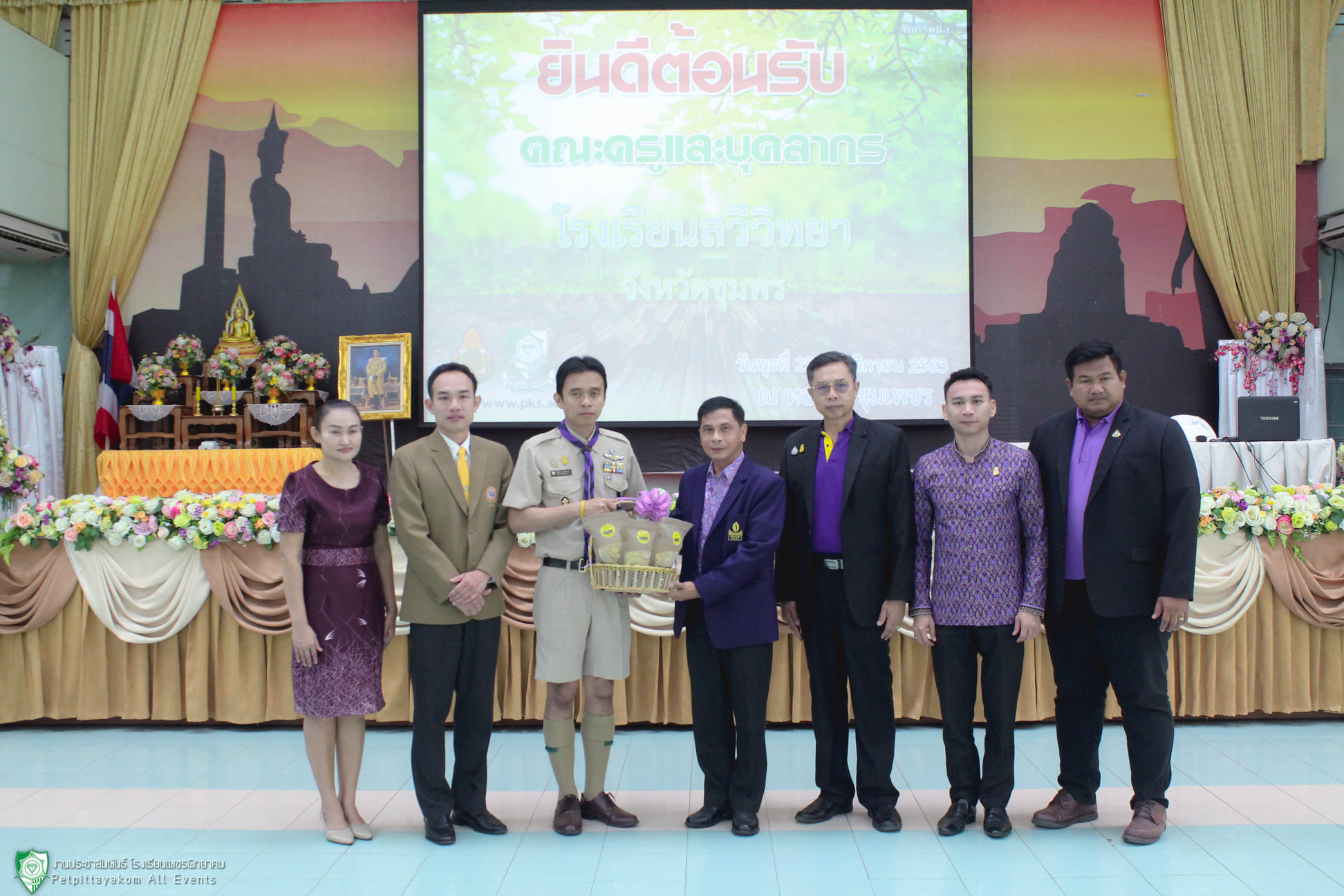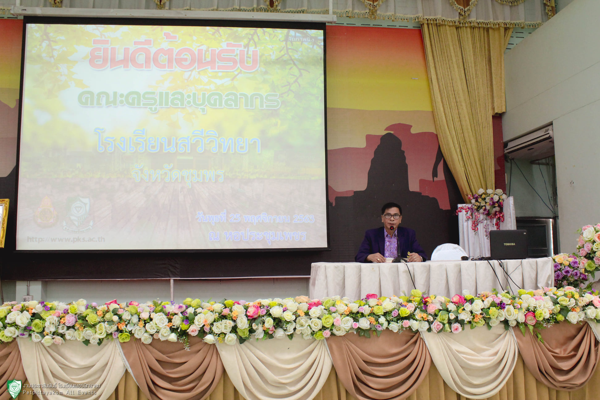 25 พฤศจิกายน 2563 นายสมัตพงษ์ ใหม่น้อย รองผู้อำนวยการโรงเรียนเพชรพิทยาคม ให้เกียรติต้อนรับผู้บริหารและคณะครูจากโรงเรียนสวีวิทยา จังหวัดชุมพร ที่มาศึกษาดูงานการจัดการเรียนการสอนภายในโรงเรียน โอกาสนี้หัวหน้ากลุ่มงาน และคณะครูร่วมให้การต้อนรับ ณ หอประชุมเพชร โรงเรียนเพชรพิทยาคม