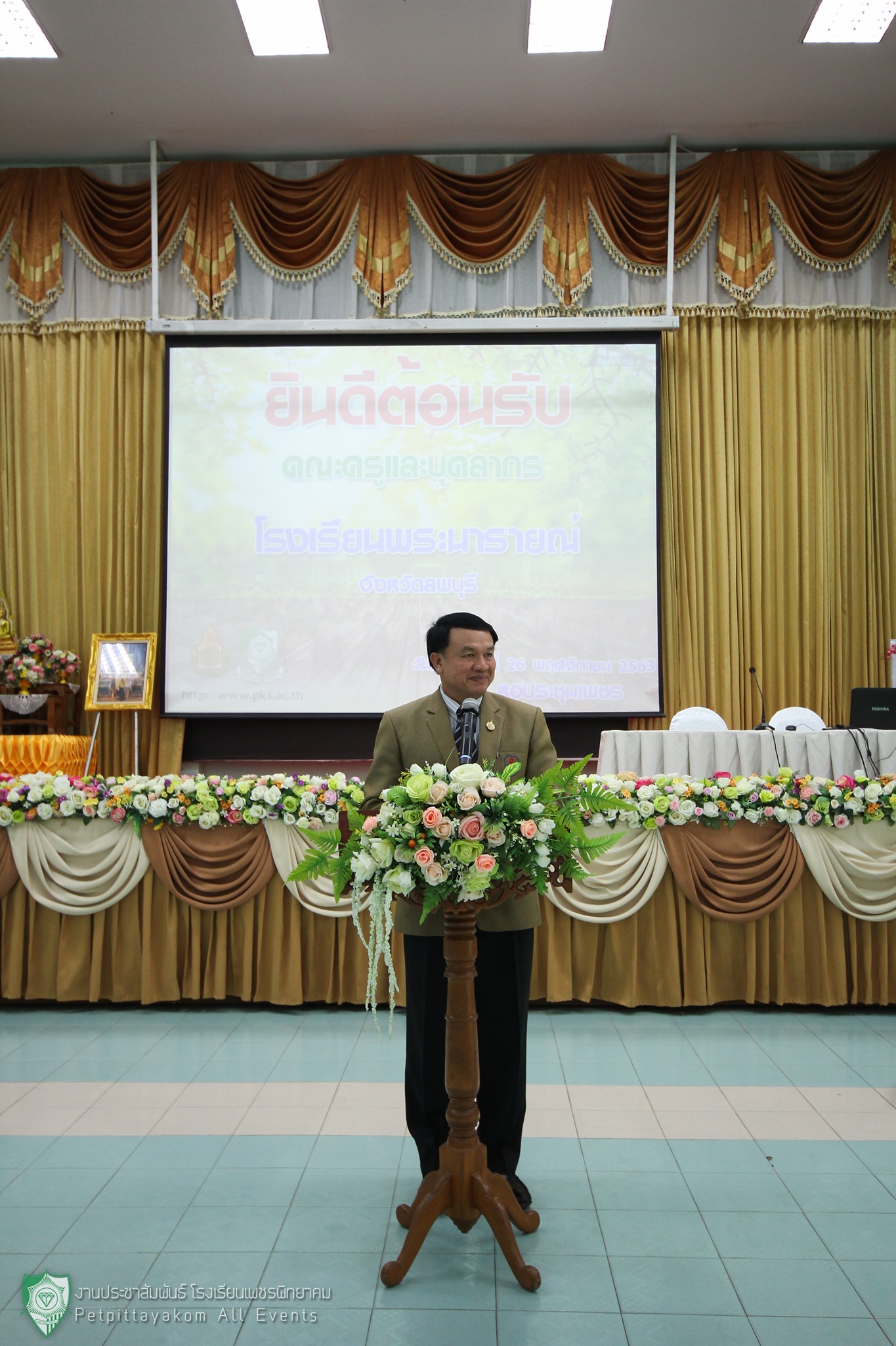 วันที่ 26 พฤศจิกายน 2563 นายวิเศษ ปิ่นพิทักษ์ ผู้อำนวยการโรงเรียนเพชรพิทยาคมให้เกียรติต้อนรับผู้บริหารและคณะครูจากโรงเรียนพระนารายณ์ จังหวัดลพบุรีที่มาศึกษาดูงานการจัดการเรียนการสอนภายในโรงเรียน ทั้งนี้รองผู้อำนวยการ พร้อมด้วยคณะครูร่วมให้การต้อนรับ ณ หอประชุมเพชร โรงเรียนเพชรพิทยาคม