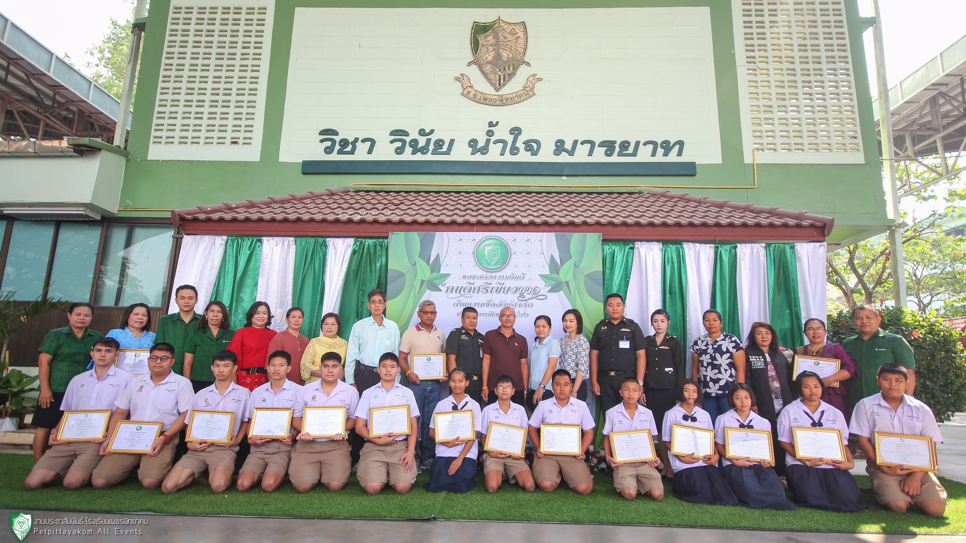 เมื่อวันที่ 27 กุมภาพันธ์ 2563 กลุ่มบริหารกิจการนักเรียน โรงเรียนเพชรพิทยาคมดำเนินการจัดพิธีมอบรางวัลคนดีศรีเขียวขาว ประจำปีการศึกษา 2562 โดยมีนายวิเศษ ปิ่นพิทักษ์ ผู้อำนวยการโรงเรียนเพชรพิทยาคม ให้เกียรติเป็นประธานมอบรางวัลให้กับคณะครู บุคลากรและนักเรียน ณ อาคารพระราชปริยัติบัณฑิต 112 ปี เพชรพิทยาคม (โดม) โรงเรียนเพชรพิทยาคม จังหวัดเพชรบูรณ์