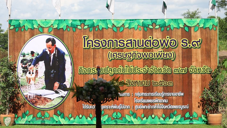 กลุ่มสาระการเรียนรู้การงานอาชีพ โรงเรียนเพชรพิทยาคม จัดกิจกรรมปลูกต้นไม้ประจำจังหวัด 77 จังหวัดตามโครงการสานต่อ พ่อ ร.9