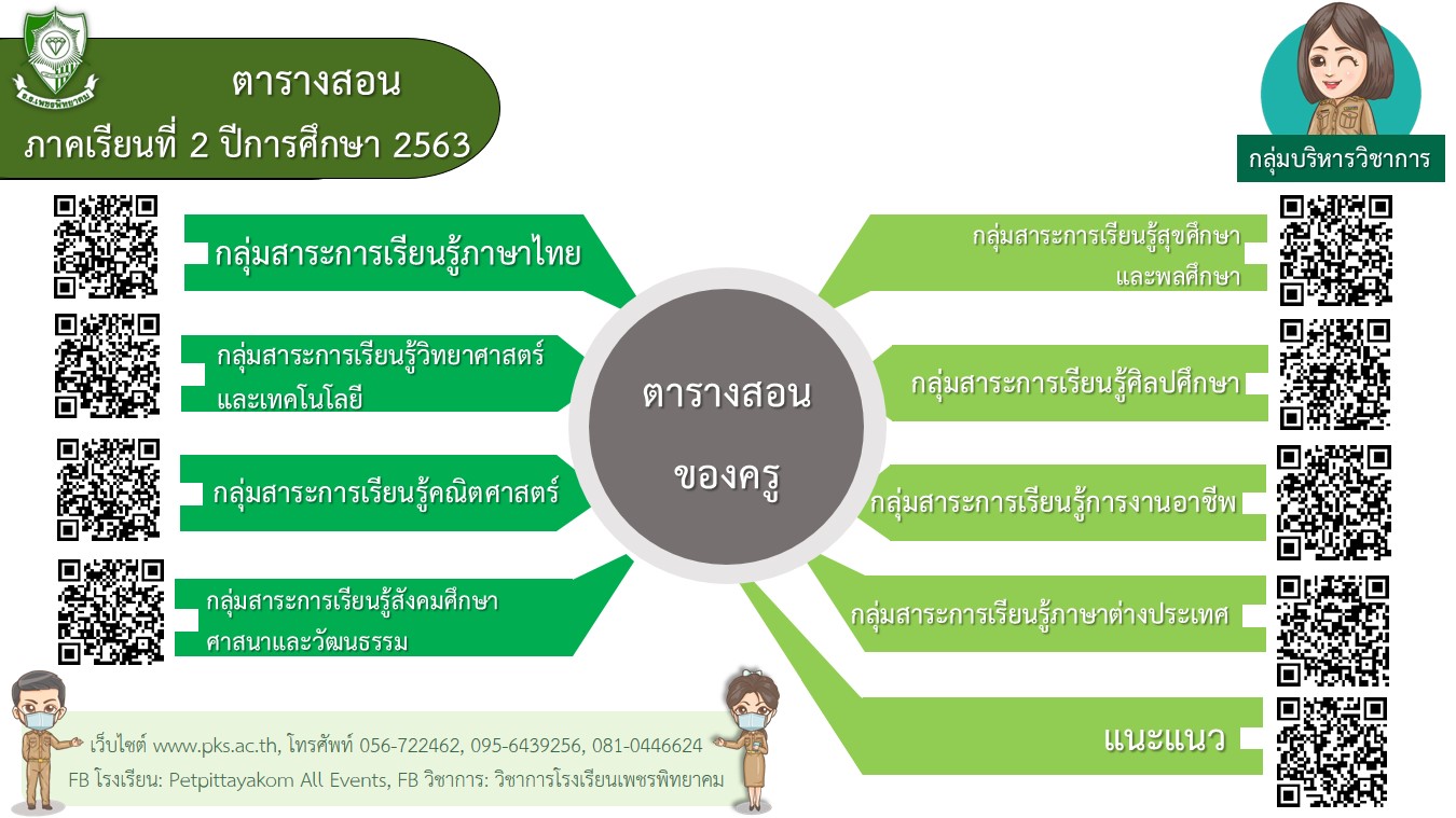 ตารางสอน ภาคเรียนที่ 2 ปีการศึกษา 2563 โรงเรียนเพชรพิทยาคม