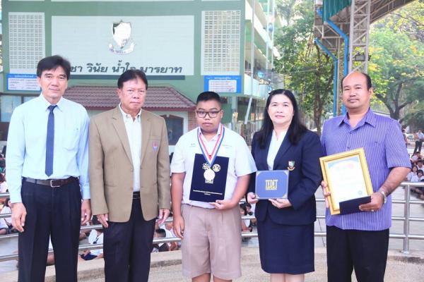 นายชัยชาย ปัญญาพวก ผู้อำนวยการโรงเรียนเพชรพิทยาคม มองรับรางวัลระดับเหรียญทองแดง ระดับประเทศ วิชาคณิตศาสตร์ (สสวท.) ชั้นมัยมศึกษาปีที่ 3 (คนเดียวของจังหวัดเพชรบูรณ์) โครงการประเมินและพัฒนาสู่ความเป็นเลิศทางคณิตศาสตร์และวิทยาศาสตร์ (สสวท.) ให้กับเด็กชายอดุลยคุปต์ บัวบุตร ชั้นมัธยมศึกษาปีที่ 3.1 โรงเรียนเพชรพิทยาคม
