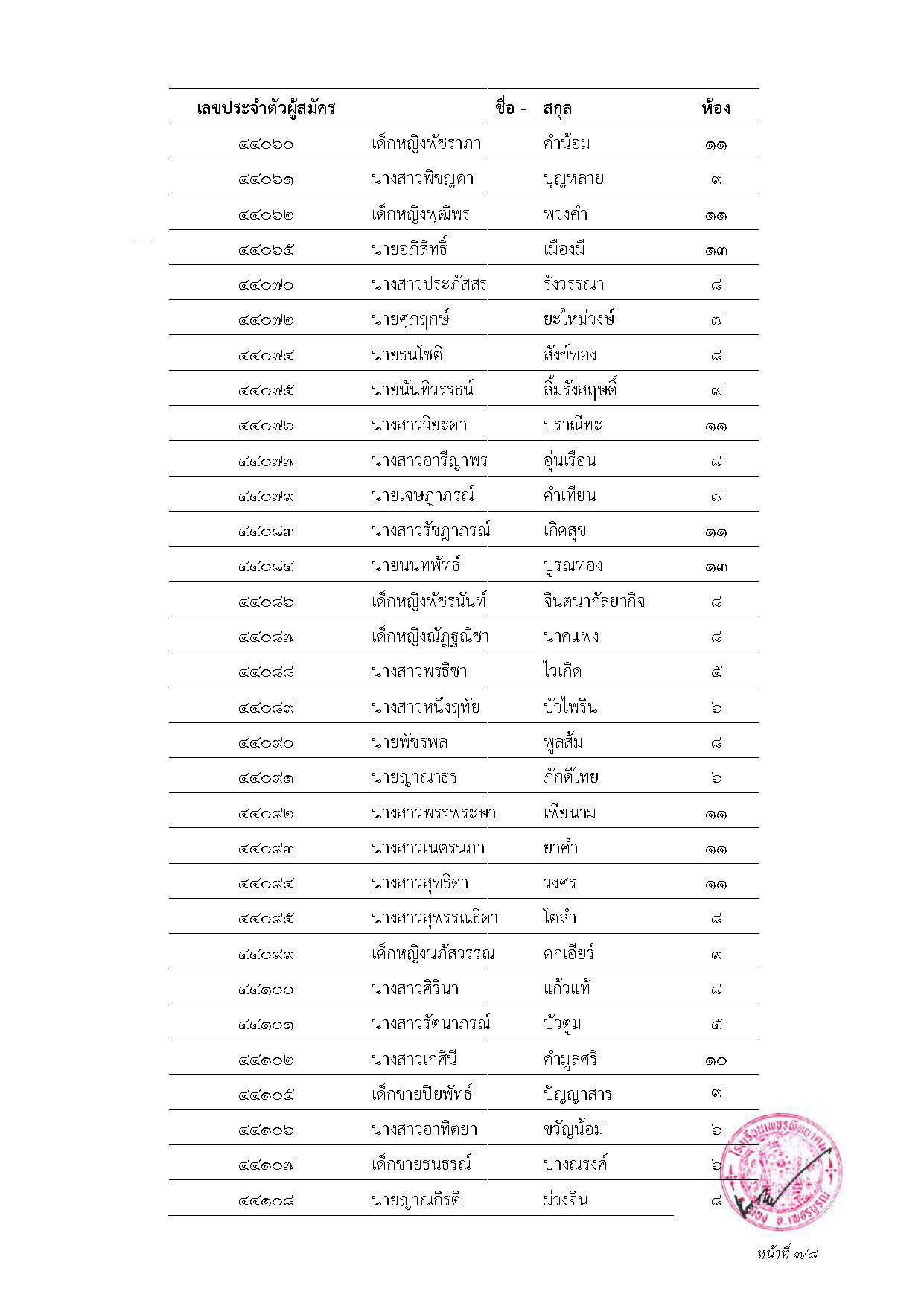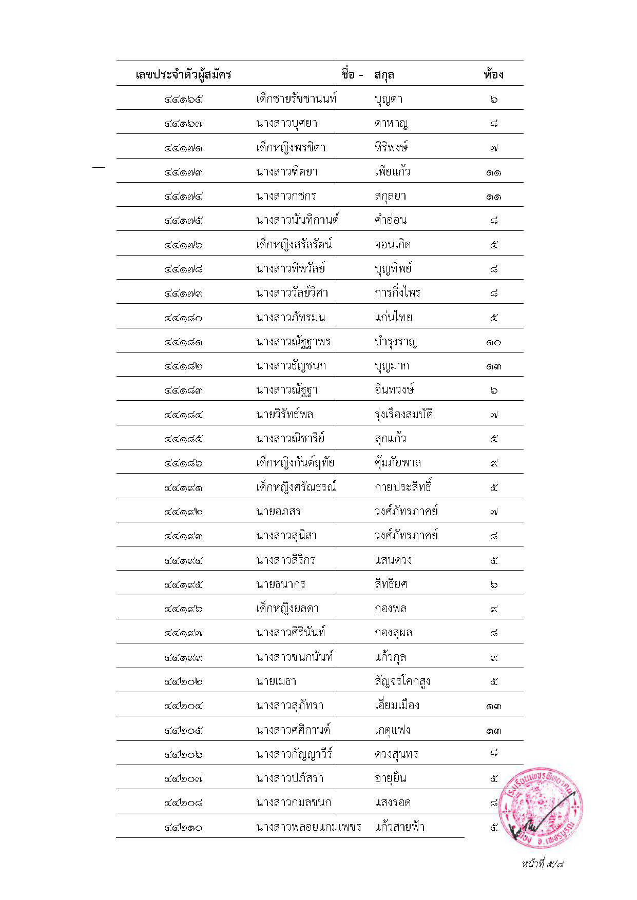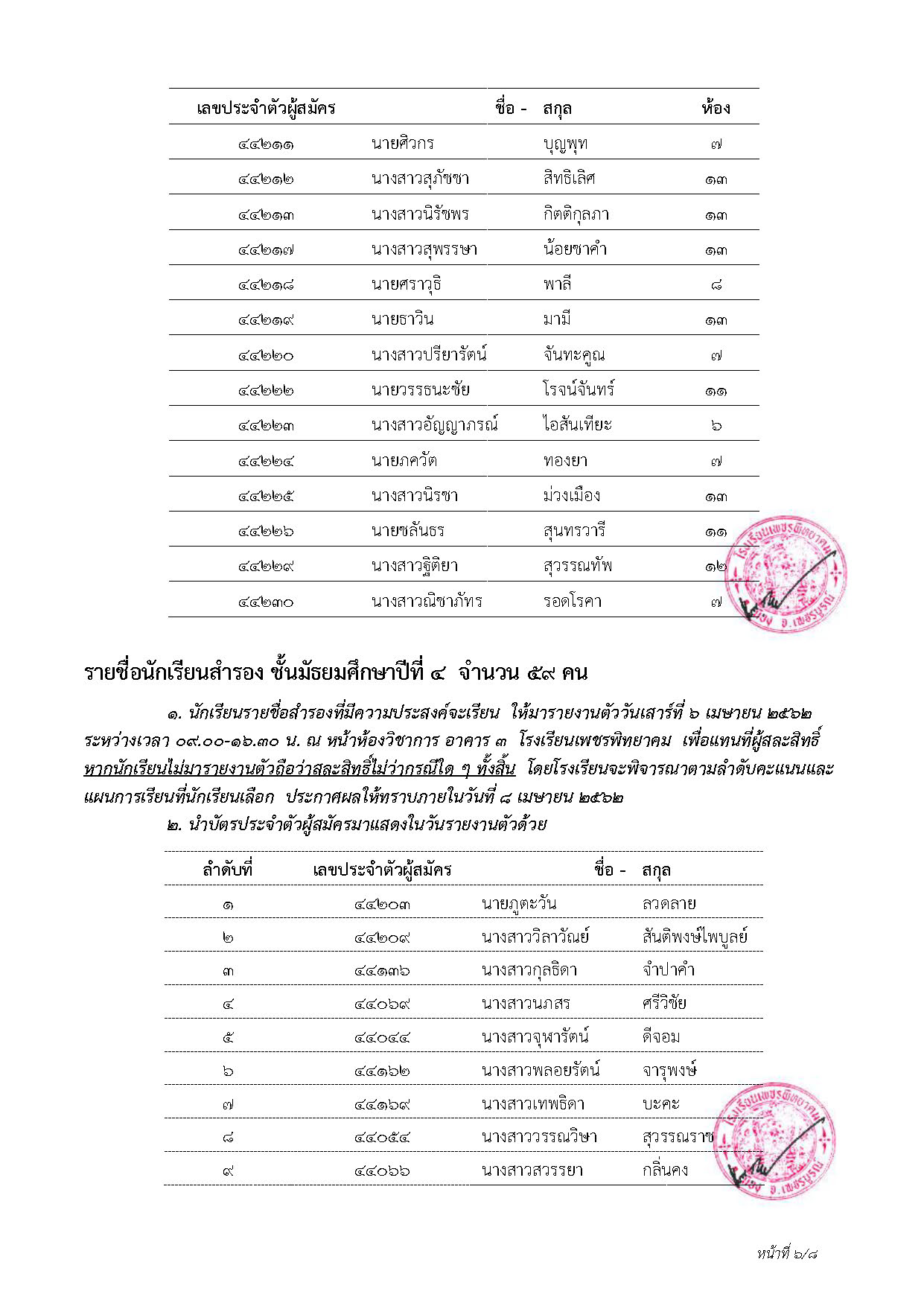 เรื่อง ผลการสอบคัดเลือกนักเรียนเข้าเรียนชั้นมัธยมศึกษาปีที่ 4 ปีการศึกษา 2562