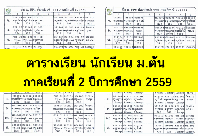 ตารางเรียน นักเรียนระดับ ม.ต้น ภาคเรียนที่ 2 ปีการศึกษา 2559
