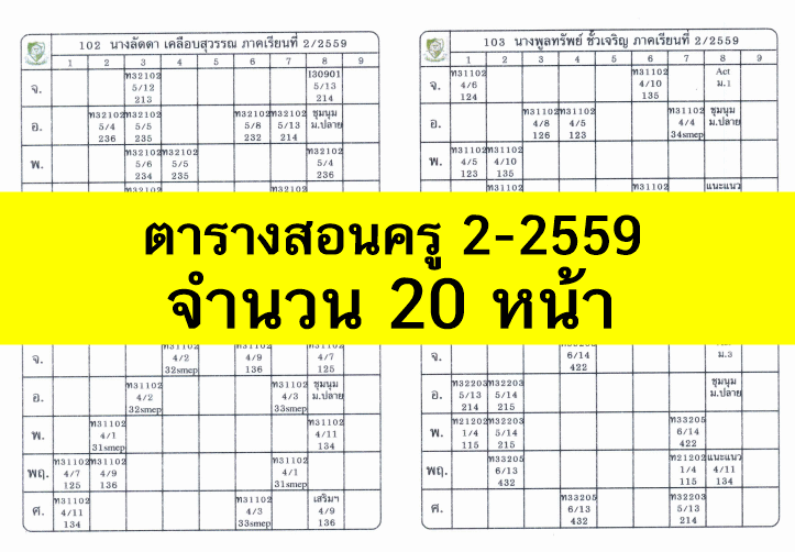 ตารางสอนครู ภาคเรียนที่ 2 ปีการศึกษา 2559 ดาวน์โหลดได้แล้วที่นี่