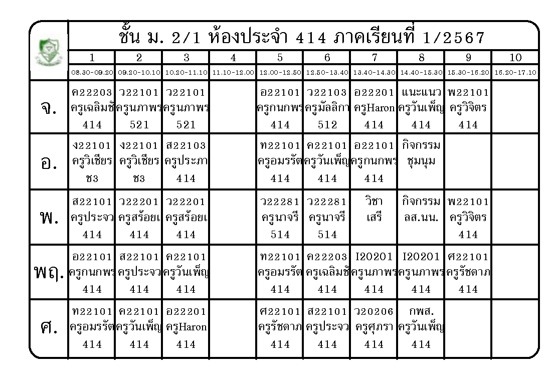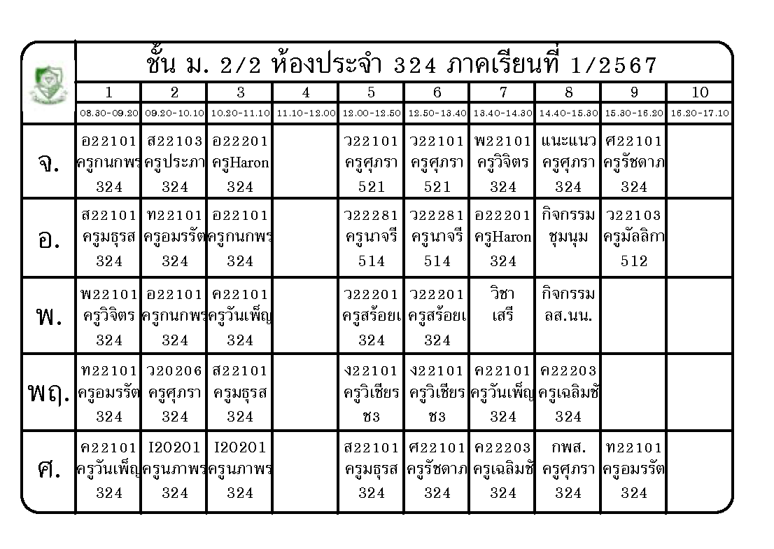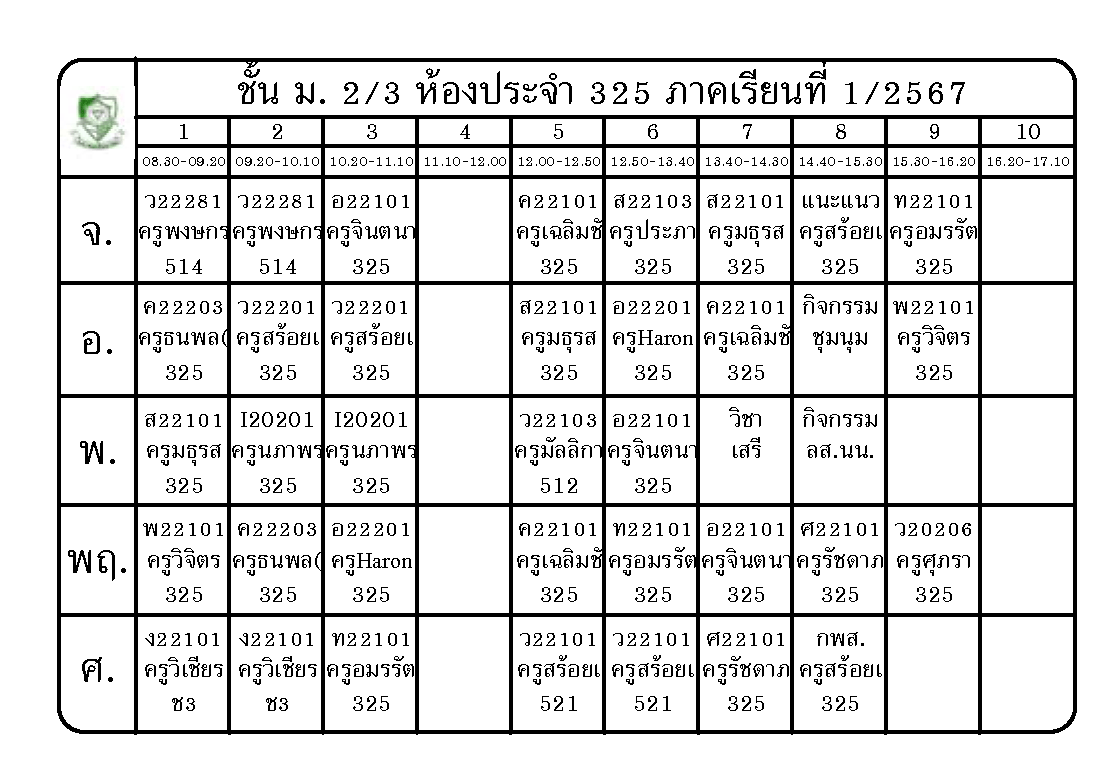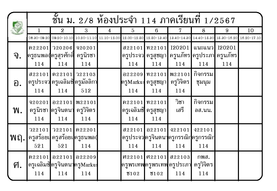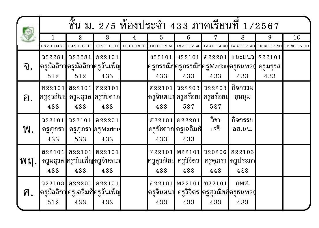 ตารางเรียน นักเรียนชั้นมัธยมศึกษาปีที่ 2 ภาคเรียนที่ 1 ปีการศึกษา 2567