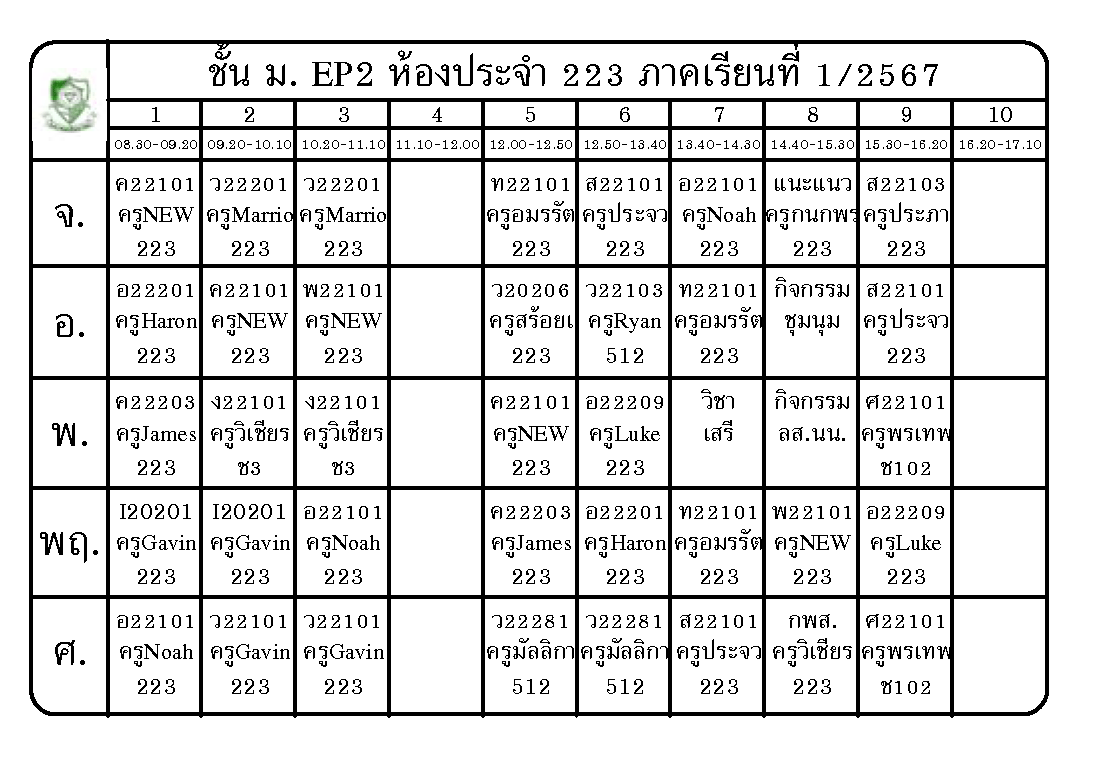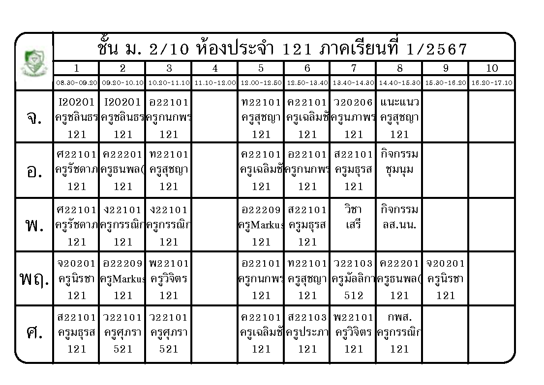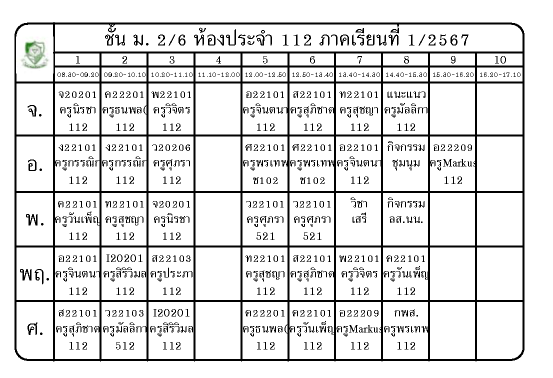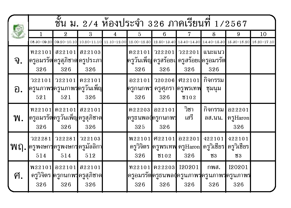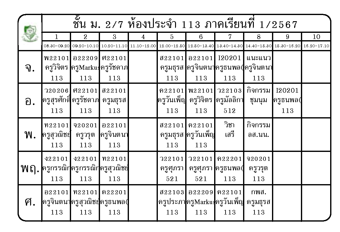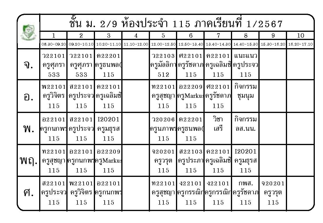 ตารางเรียน นักเรียนชั้นมัธยมศึกษาปีที่ 2 ภาคเรียนที่ 1 ปีการศึกษา 2567