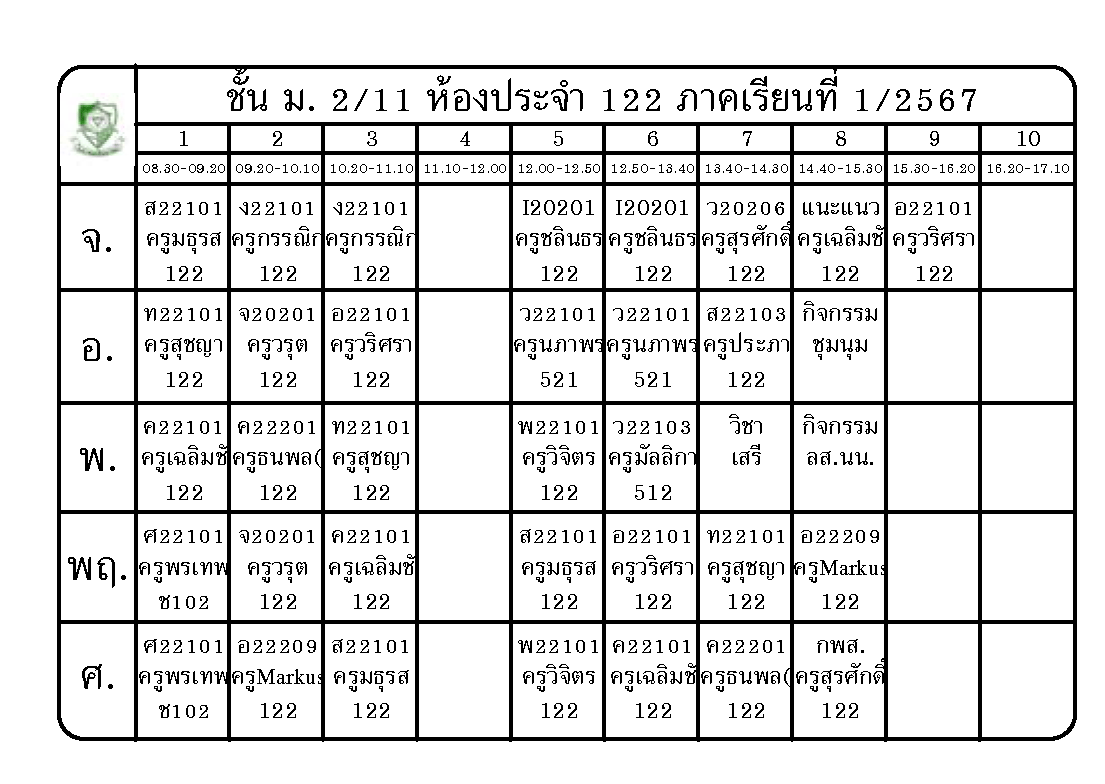 ตารางเรียน นักเรียนชั้นมัธยมศึกษาปีที่ 2