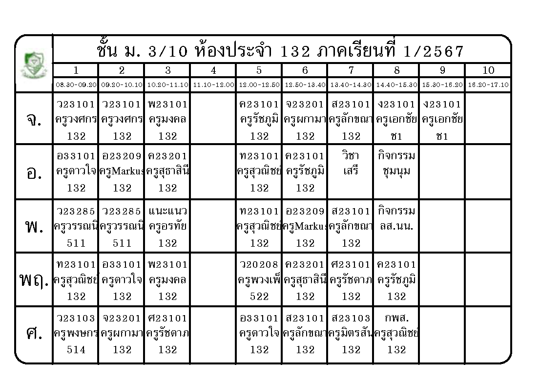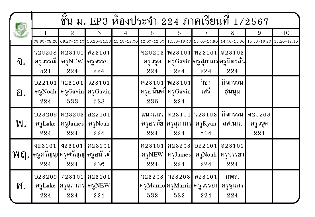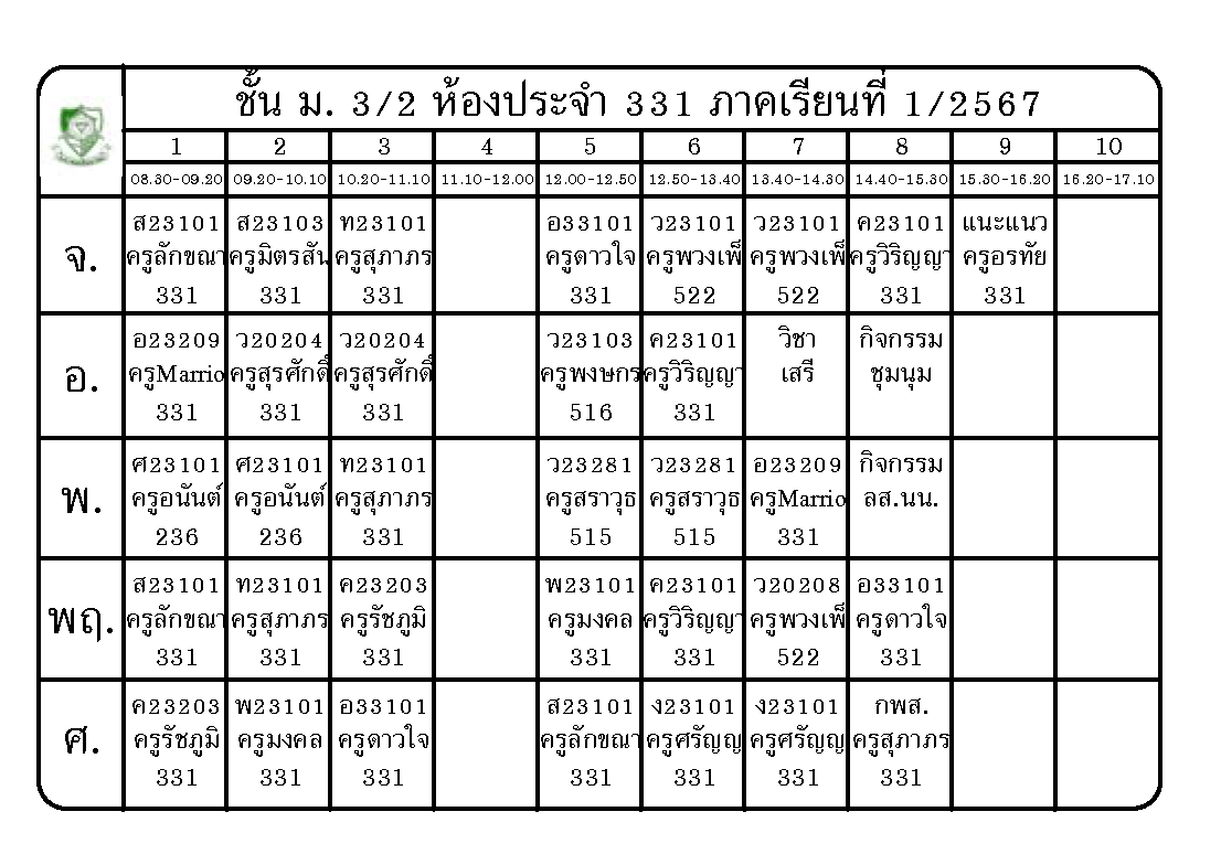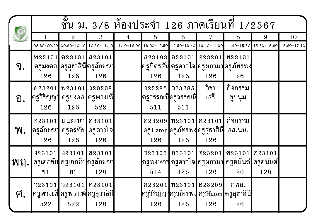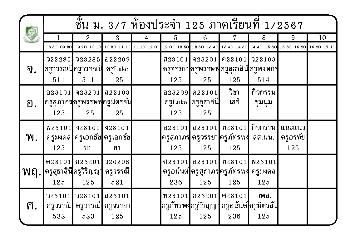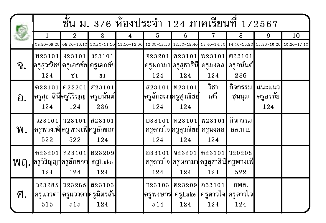 ตารางเรียน นักเรียนชั้นมัธยมศึกษาปีที่ 3 ภาคเรียนที่ 1 ปีการศึกษา 2567