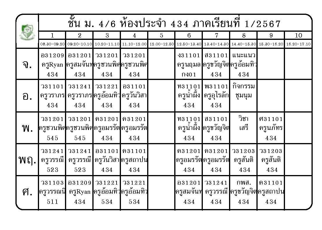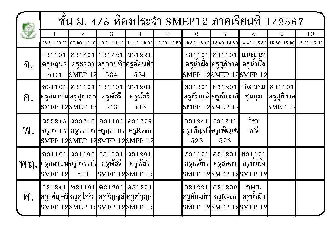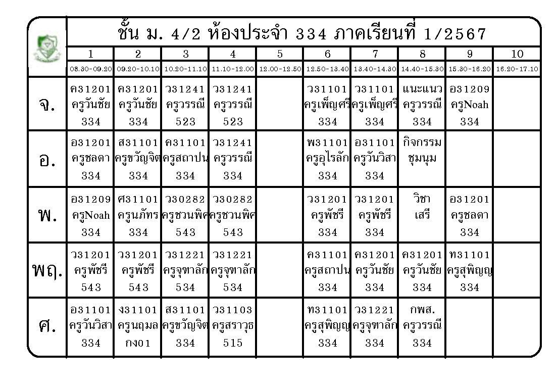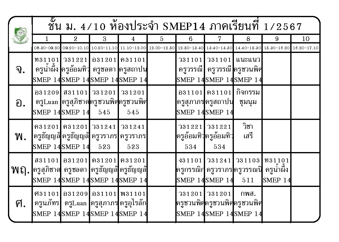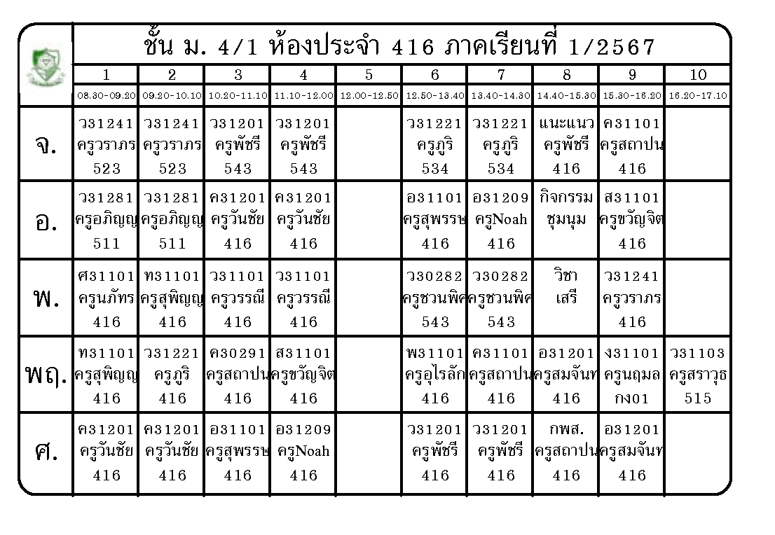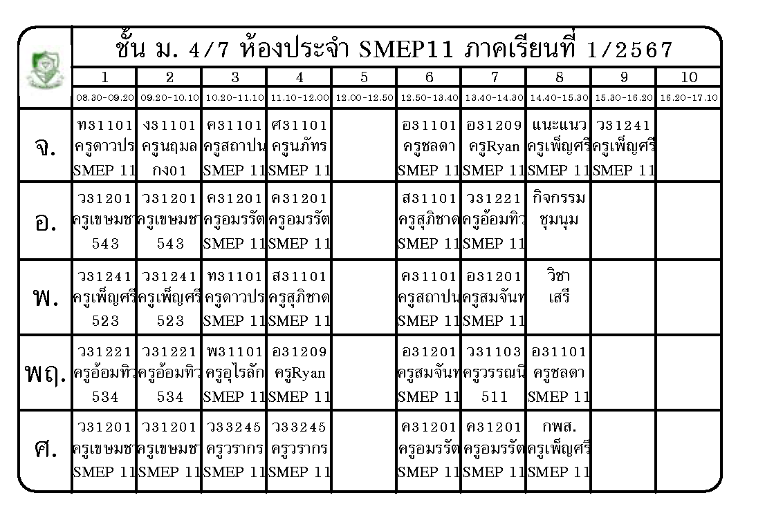 ตารางเรียน นักเรียนชั้นมัธยมศึกษาปีที่ 4 ภาคเรียนที่ 1 ปีการศึกษา 2567