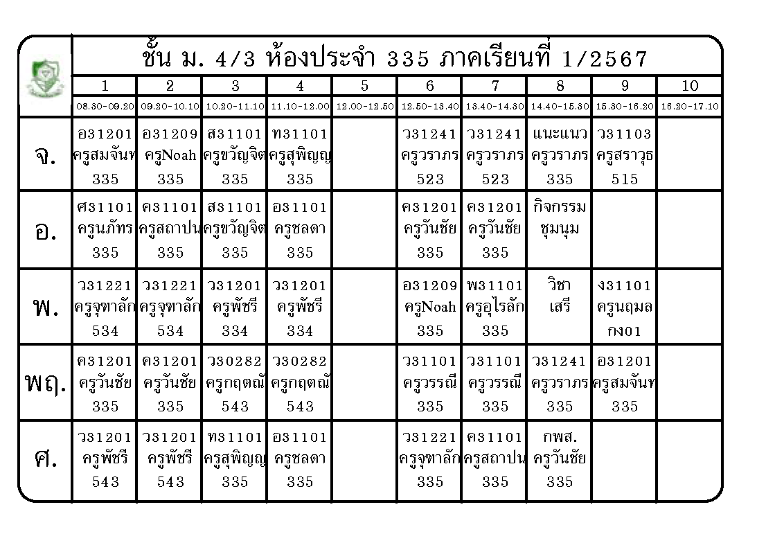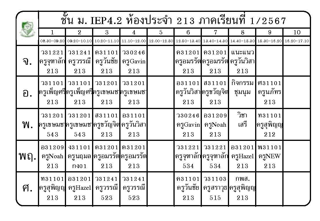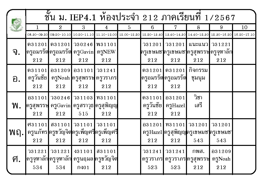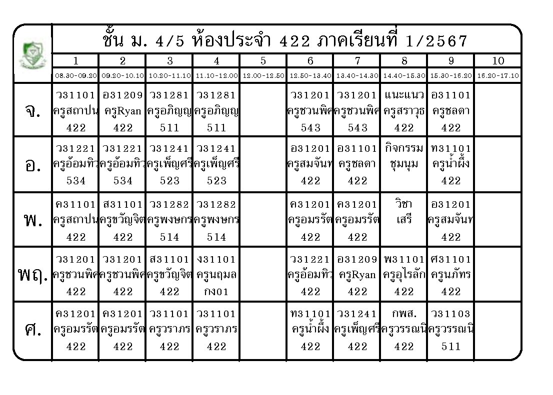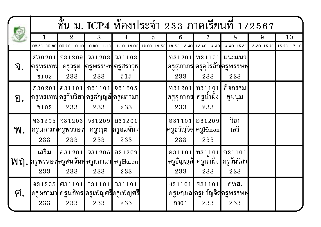 ตารางเรียน นักเรียนชั้นมัธยมศึกษาปีที่ 4 ภาคเรียนที่ 1 ปีการศึกษา 2567