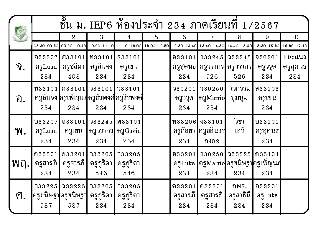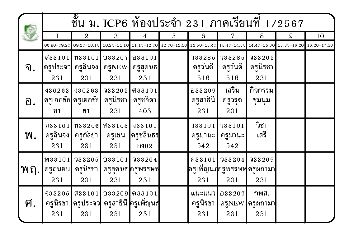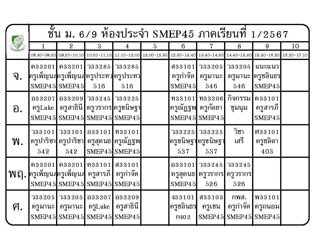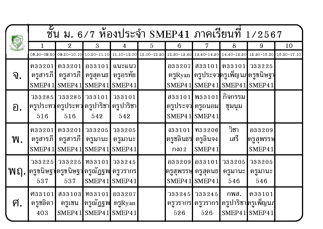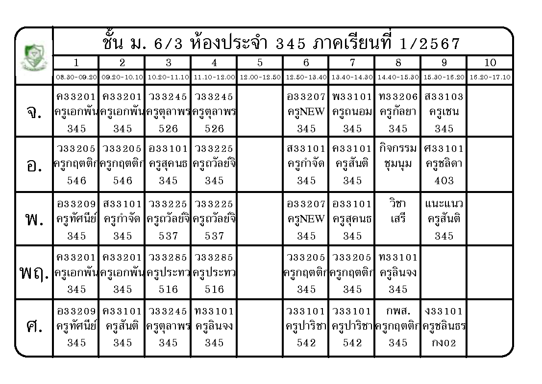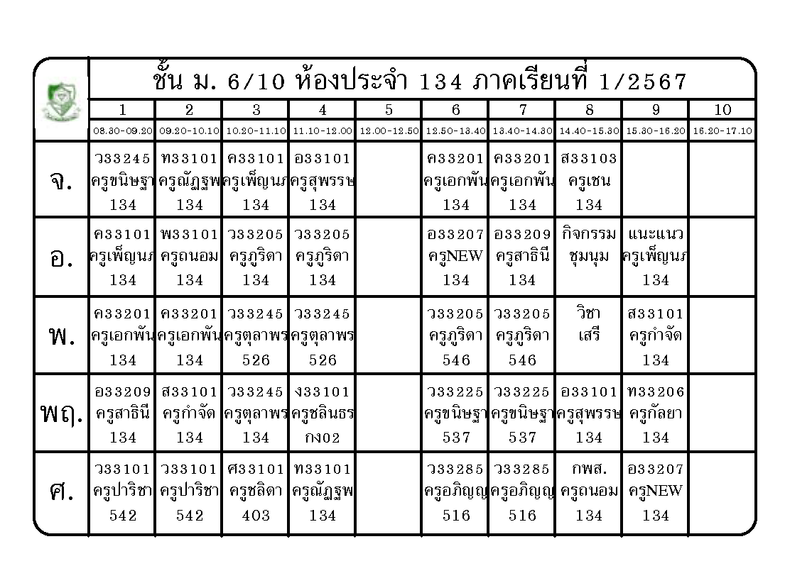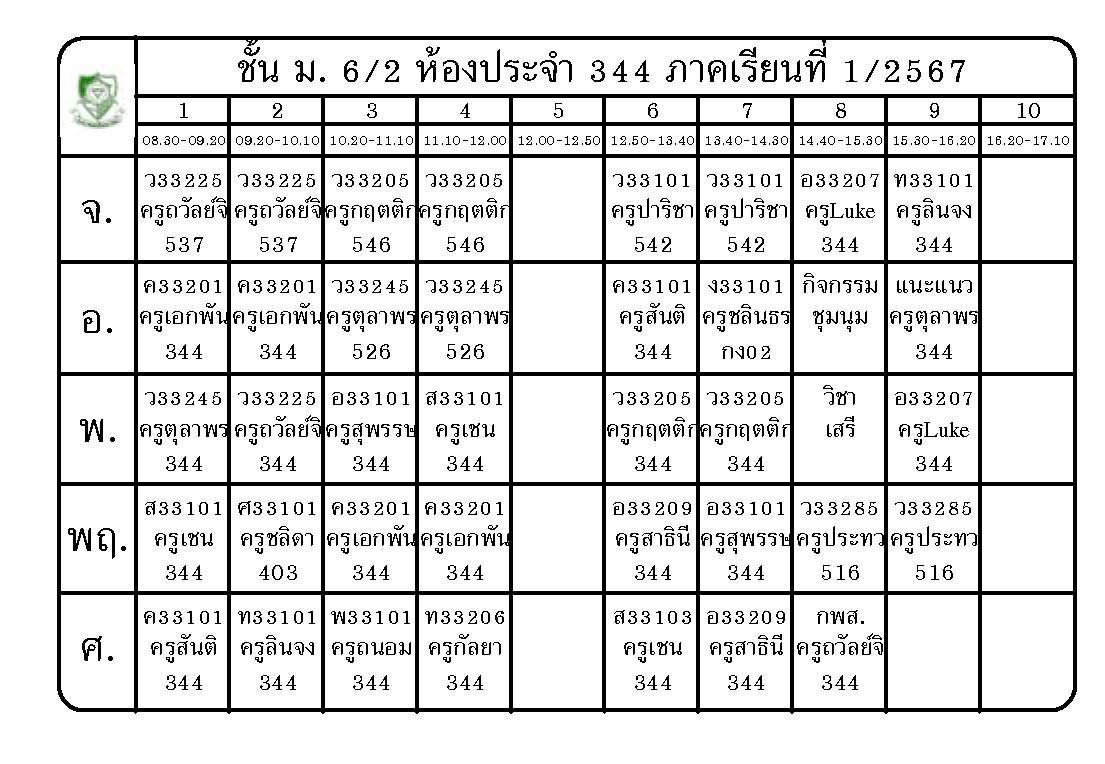 ตารางเรียน นักเรียนชั้นมัธยมศึกษาปีที่ 6 ภาคเรียนที่ 1 ปีการศึกษา 2567