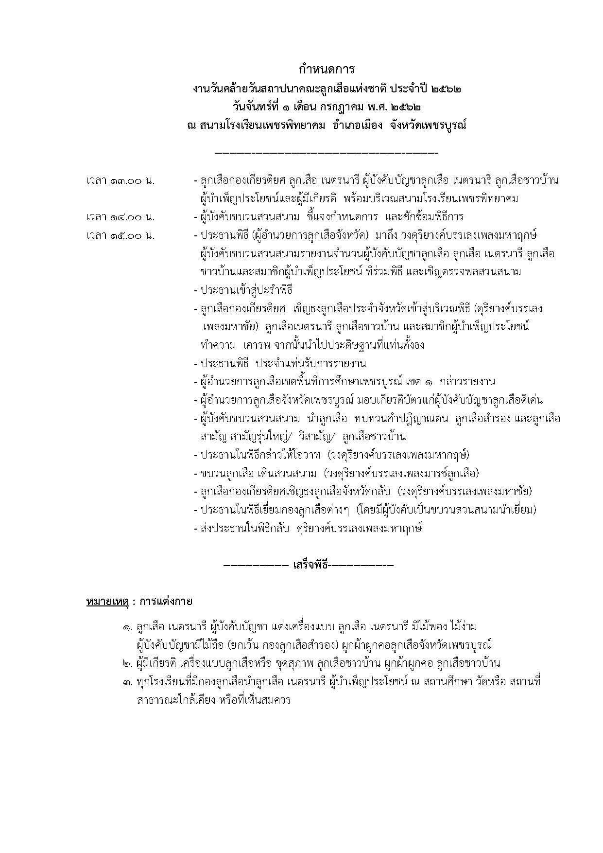 กำหนดการ งานวันคล้ายวันสถาปนาคณะลูกเสือแห่งชาติ ประจำปี ๒๕๖๒