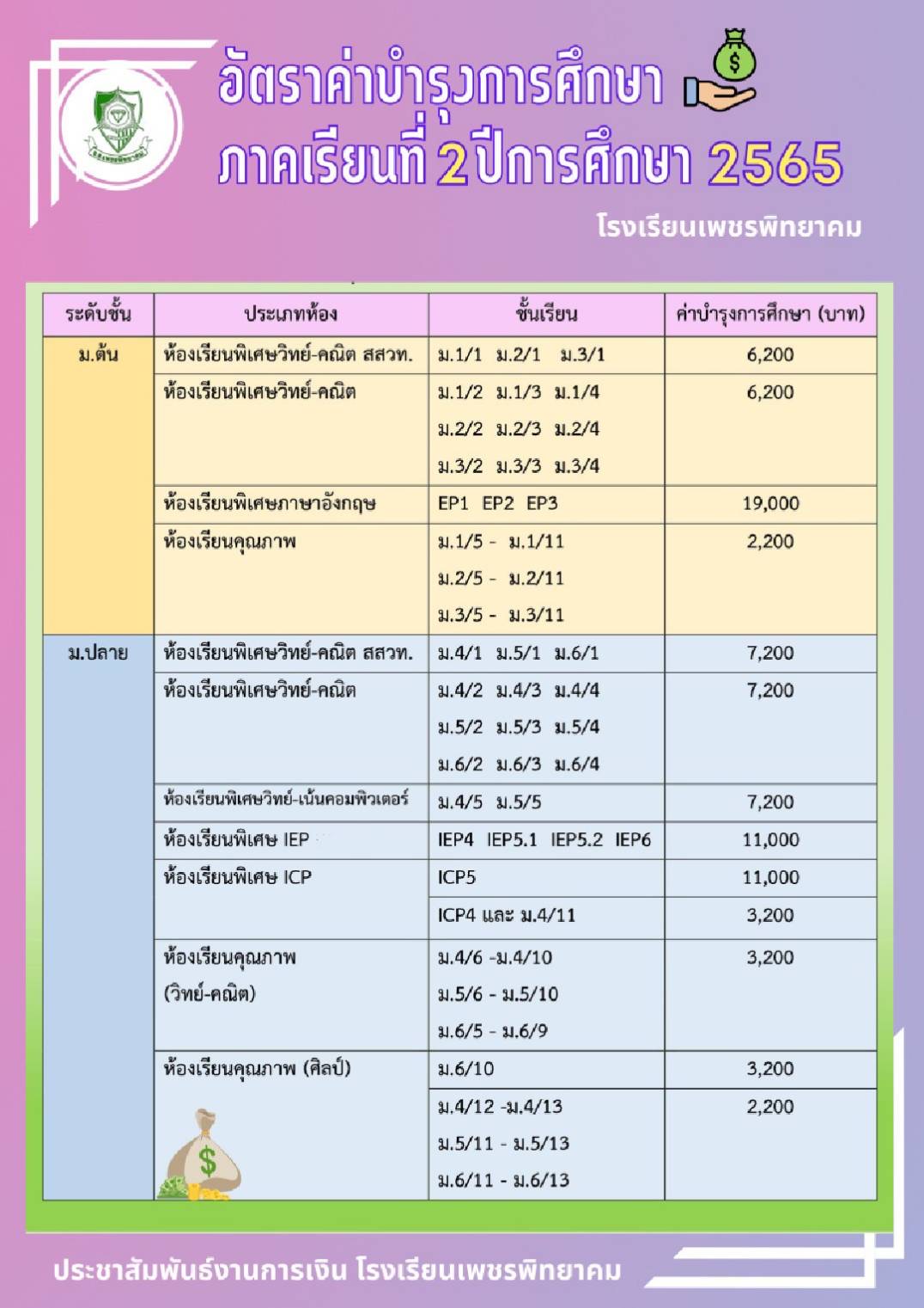 ประชาสัมพันธ์การลงทะเบียนเรียนและการชำระเงินค่าบำรุงการศึกษา ภาคเรียนที่ 2 ปีการศึกษา 2565 กำหนดการวันที่ 10 พฤศจิกายน 2565