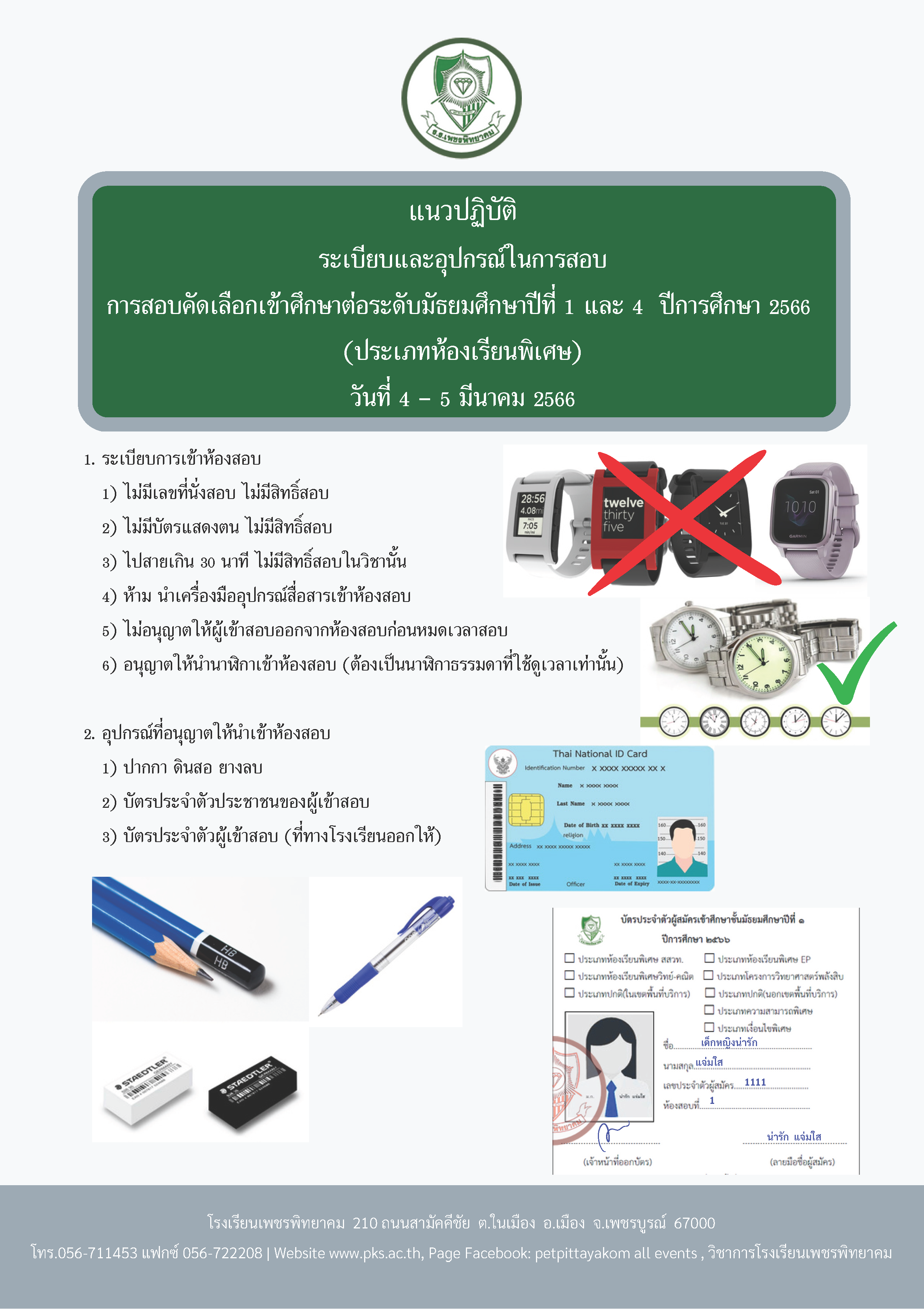 ข้อมูลการติดต่อ โรงเรียนเพชรพิทยาคม 210 ถนนสามัคคีชัย ต.ในเมือง อ.เมือง จ.เพชรบูรณ์ 67000 โทร.056-711453 แฟกซ์ 056-722208 | Website www.pks.ac.th, Page Facebook: petpittayakom all events , วิชาการโรงเรียนเพชรพิทยาคม