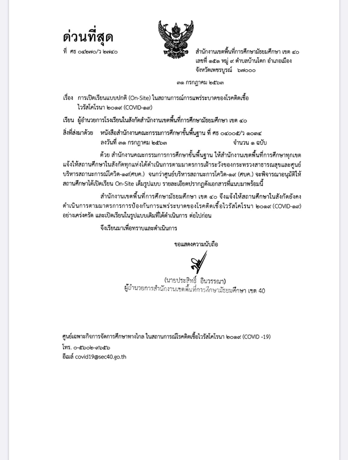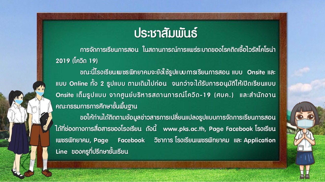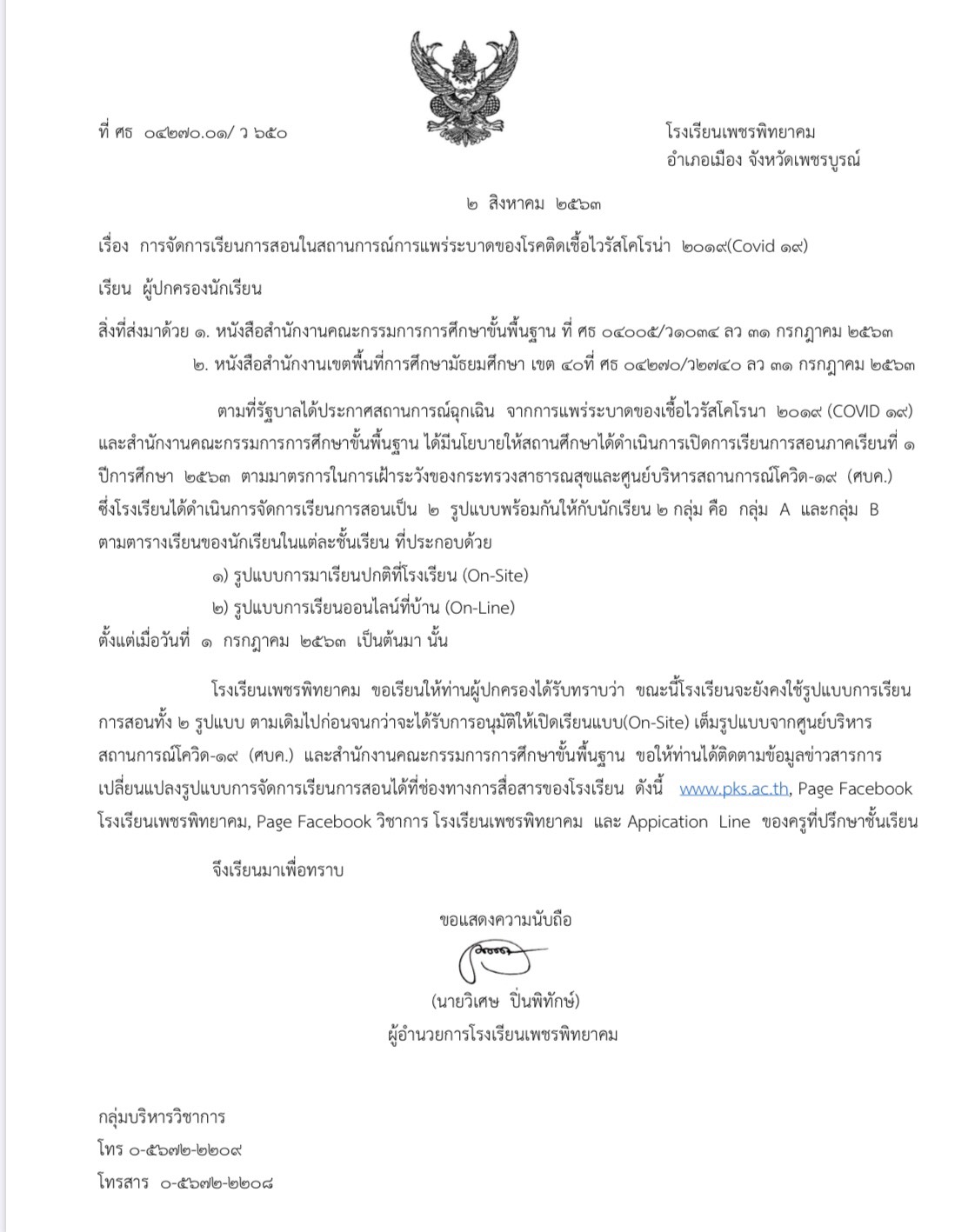 ประกาศโรงเรียนเพชรพิทยาคม เรื่อง การจัดการเรียนการสอนในสถานการณ์การแพร่ระบาดของโรคติดเชื้อไวรัสโคโรน่า 2019 (COVID-19)