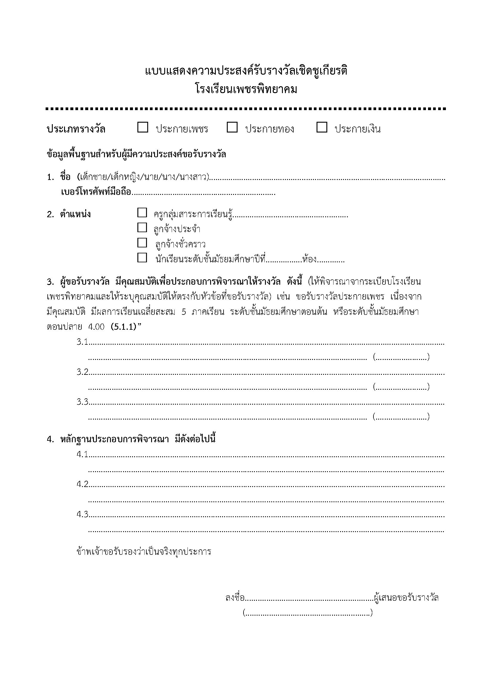 3) แบบแสดงความประสงค์รับรางวัลเชิดชูเกียรติ