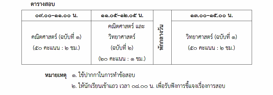 วิชาที่สอบ คือ คณิตศาสตร์ วิทยาศาสตร์