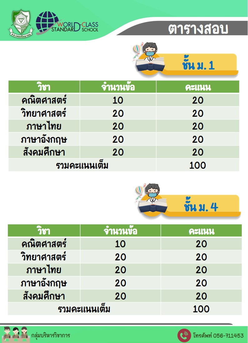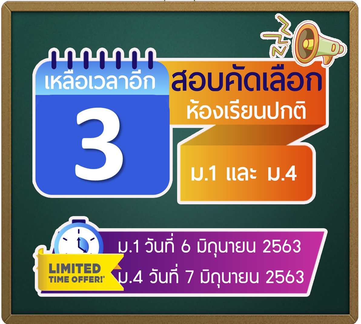 ตารางสอบคัดเลือกนักเรียนเข้าศึกษาต่อ ม.1 และ ม.4 ปีการศึกษา 2563 ห้องเรียนปกติ โรงเรียนเพชรพิทยาคม