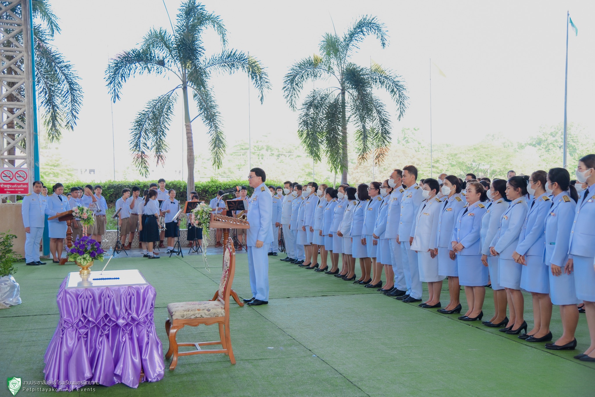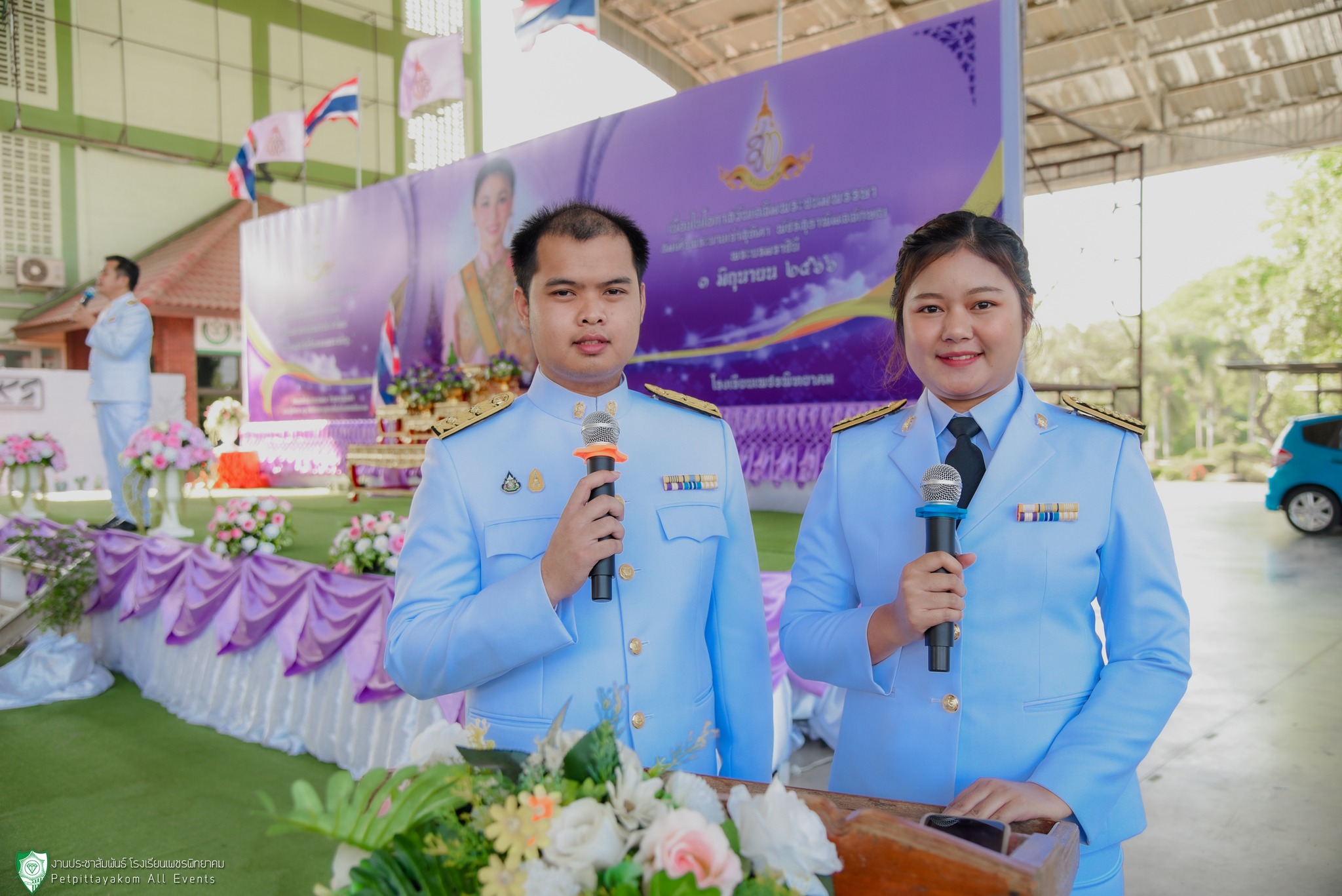 กล่าวคำถวายคำราชสดุดี เฉลิมพระเกียรติถวายพระพรชัยมงคล วงดุริยางค์โรงเรียนเพชรพิทยาคม บรรเลงเพลงสรรเสริญพระบารมี/บรรเลงเพลง เฉลิมพระเกียรติ สดุดีจอมราชา