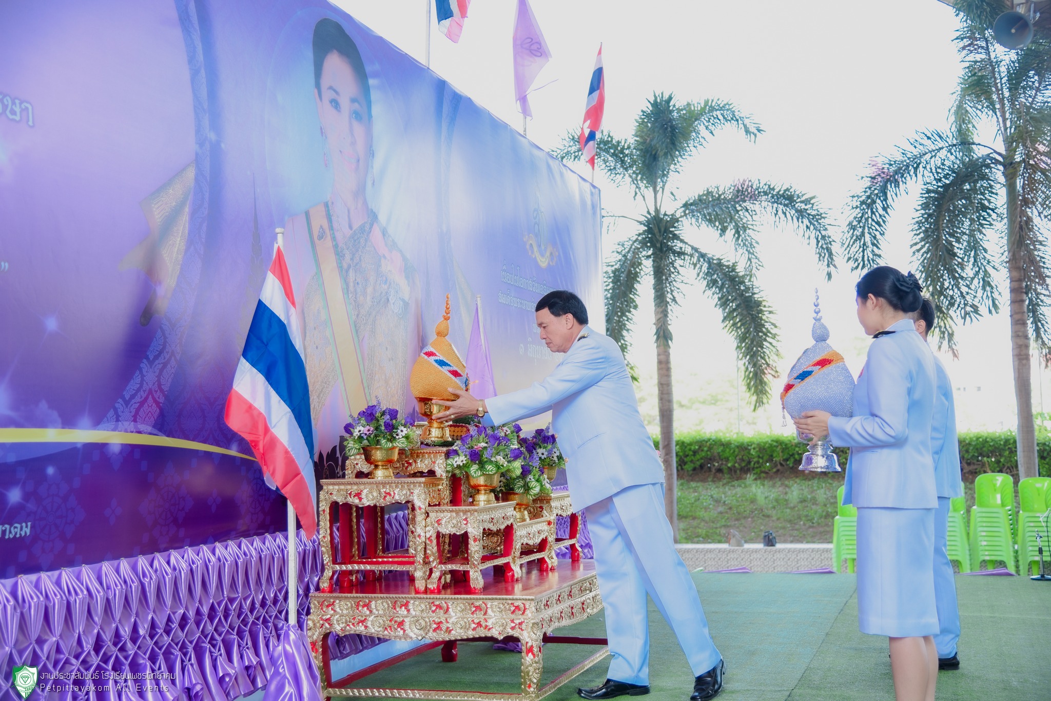 กิจกรรมประกอบด้วย นายวิเศษ ปิ่นพิทักษ์ ผู้อำนวยการโรงเรียนเพชรพิทยาคม ประธานพิธีฯ ถวายพานพุ่มเครื่องราชสักการะ พุ่มทอง พุ่มเงิน เปิดกรวยดอกไม้ และลงนามถวายพระพร