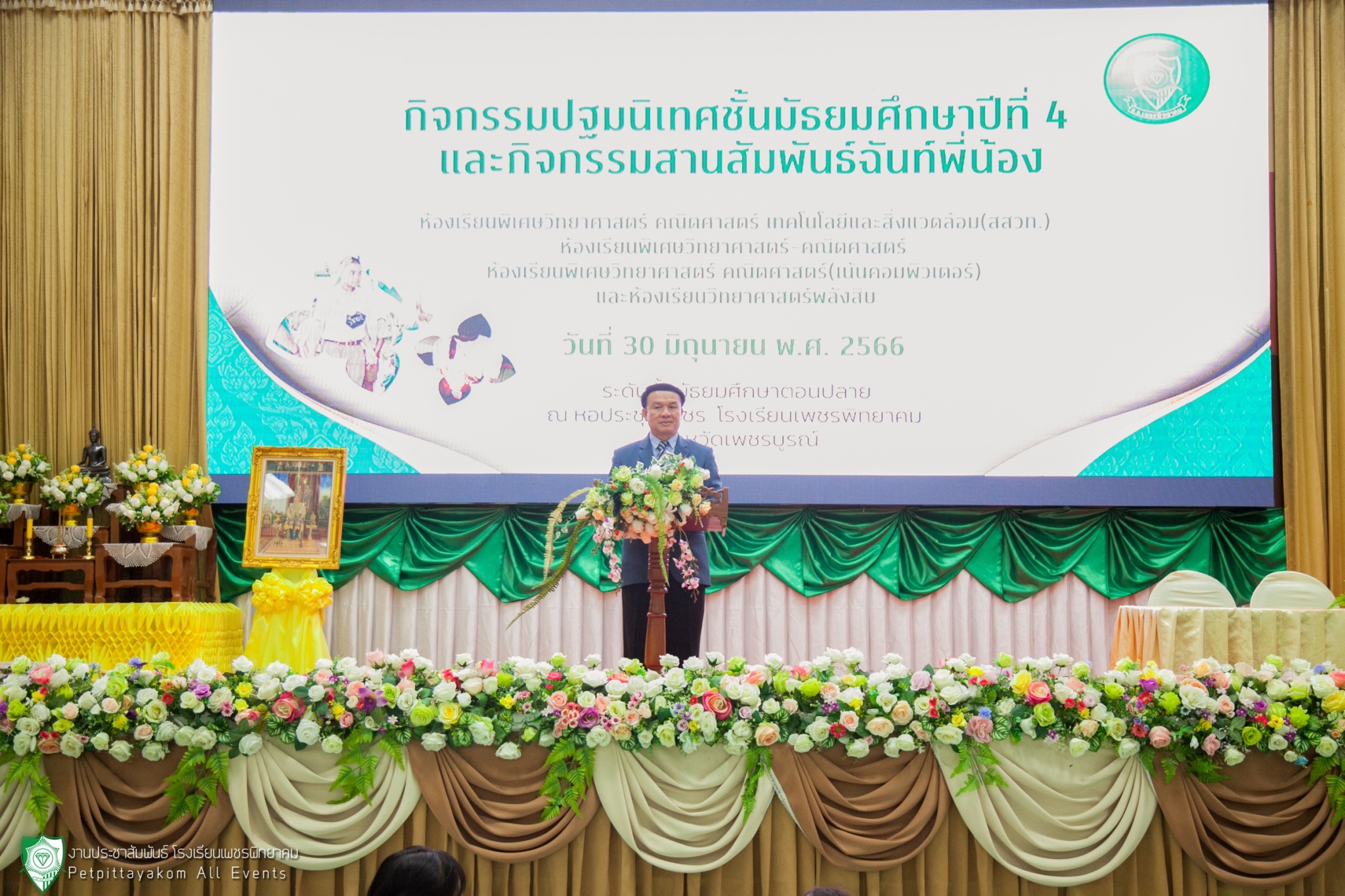 วันที่ 30 มิถุนายน 2566 นายวิเศษ ปิ่นพิทักษ์ ผู้อำนวยการโรงเรียนเพชรพิทยาคม เป็นประธานพิธี กิจกรรมปฐมนิเทศ ชั้นมัธยมศึกษาปีที่ 4 และกิจกรรมสานสัมพันธ์ฉันท์พี่น้อง