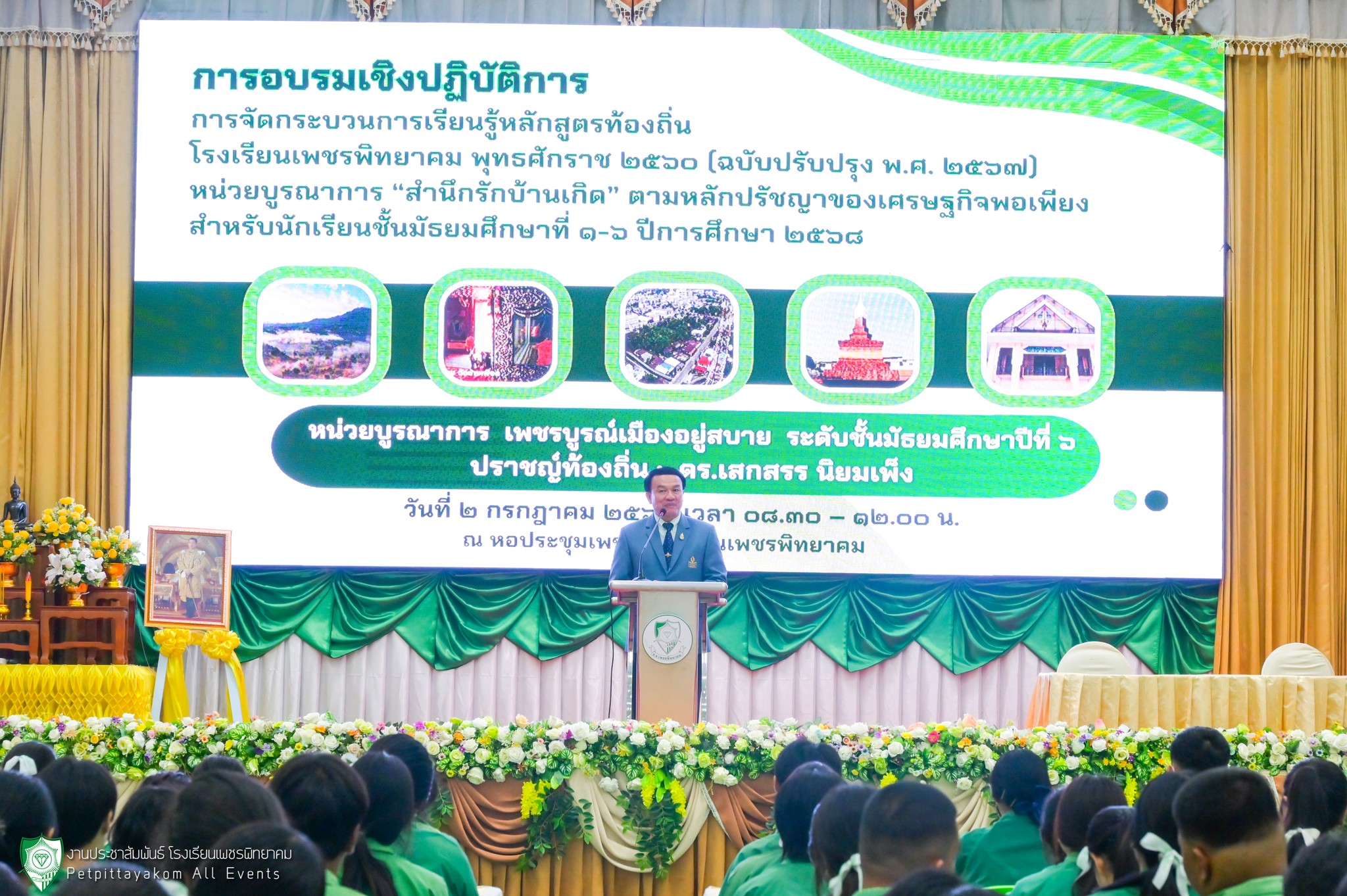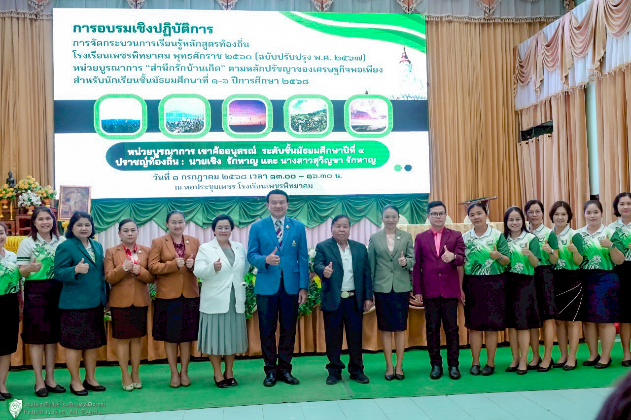 โรงเรียนเพชรพิทยาคม จัดการอบรมเชิงปฏิบัติการการจัดกระบวนการเรียนรู้ หลักสูตรท้องถิ่น หน่วยบูรณาการสำนึกรักบ้านเกิด สำหรับนักเรียนระดับชั้นมัธยมศึกษาปีที่ 1–6 ประจำปีการศึกษา 2568 เพื่อเสริมสร้างความรักและหวงแหนบ้านเกิดตามหลักปรัชญาของเศรษฐกิจพอเพียง