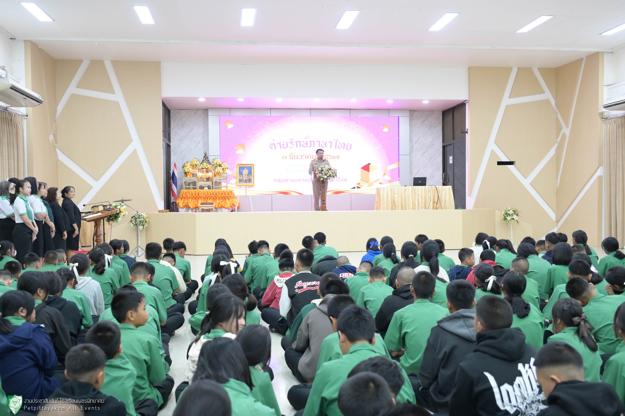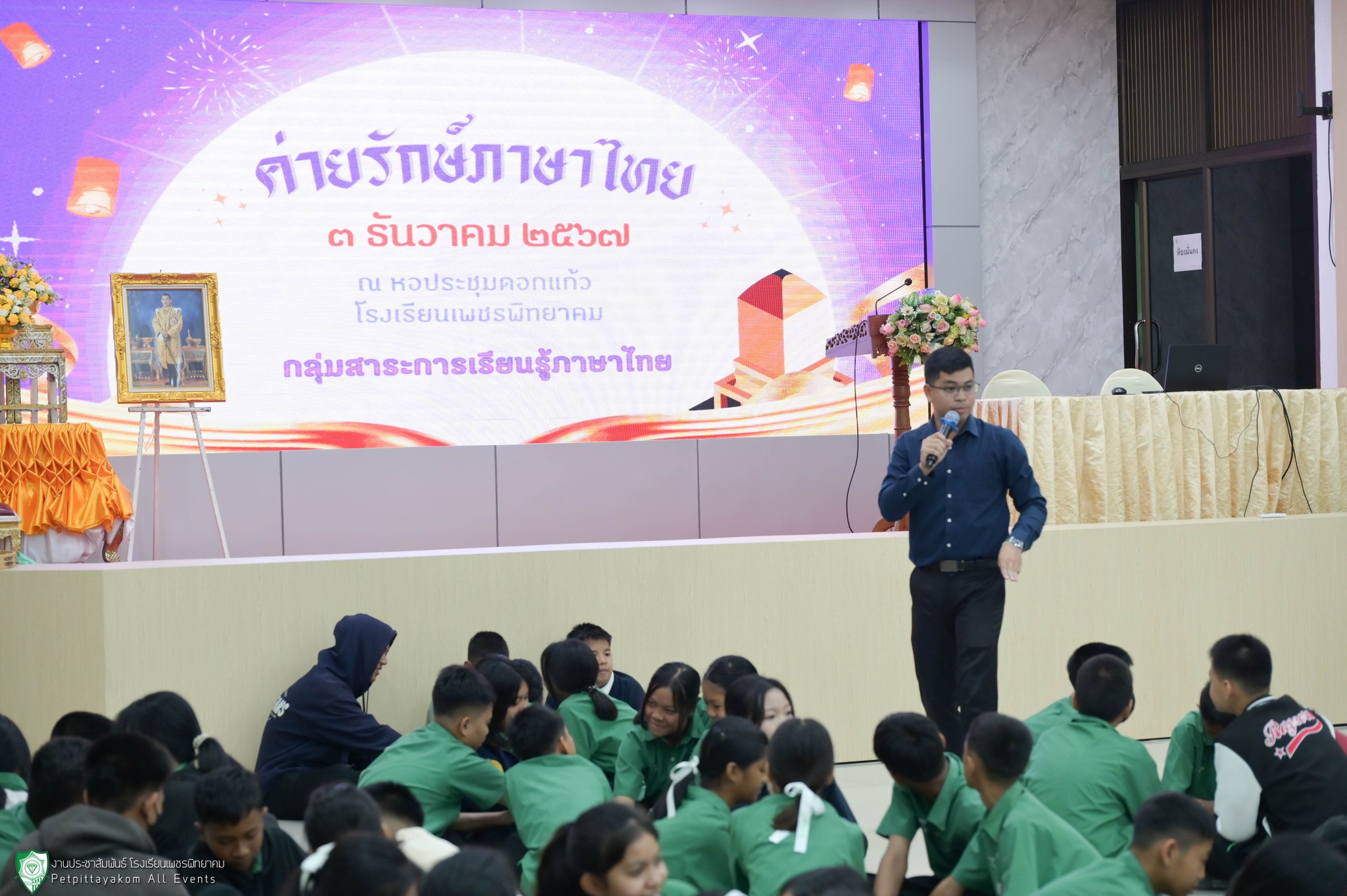 โรงเรียนเพชรพิทยาคมดำเนินการจัดโครงการกิจกรรมค่ายรักษ์ภาษาไทย ประจำปีการศึกษา 2567 ให้กับนักเรียนระดับชั้นมัธยมศึกษาปีที่ 1.6 - 1.11 เพื่อส่งเสริมความสำคัญของการศึกษาและพัฒนาภาษาไทยของเด็กและเยาวชน และพัฒนาทักษะภาษาไทยในการสื่อสารโดยมี นายวิเศษ ปิ่นพิทักษ์ ผู้อำนวยการโรงเรียน เป็นประธานพิธี พร้อมด้วยรองผู้อำนวยการ และคณะครูกลุ่มสาระการเรียนรู้ภาษาไทยเข้าร่วมกิจกรรม เมื่อวันที่ 3 ธันวาคม 2567 ณ หอประชุมดอกแก้ว โรงเรียนเพชรพิทยาคม