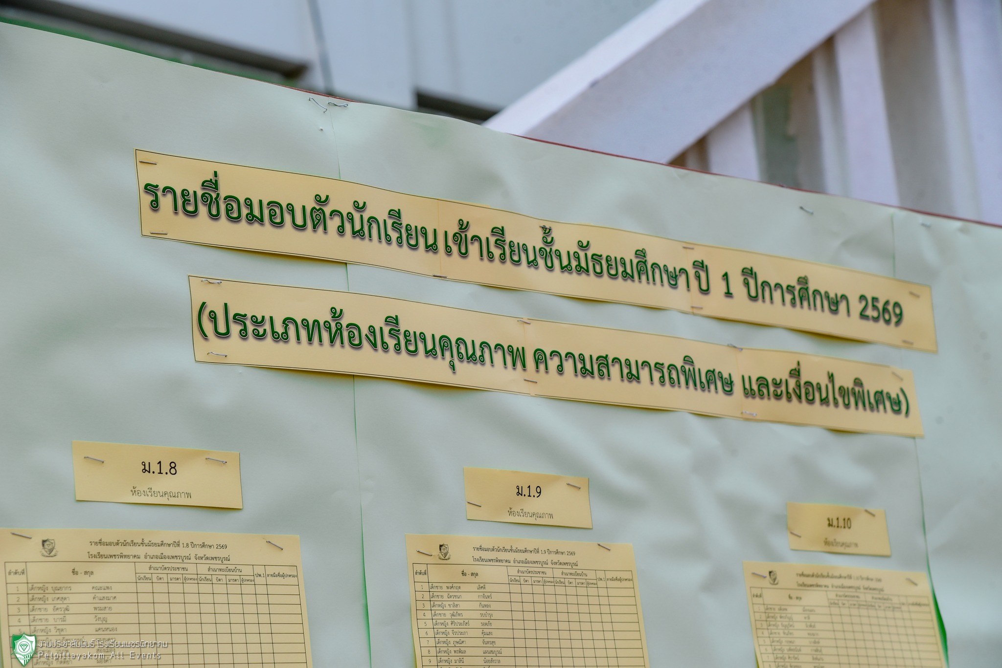 โรงเรียนเพชรพิทยาคม ดำเนินการมอบตัวนักเรียนเข้าศึกษาต่อระดับชั้นมัธยมศึกษาปีที่ 1 ประจำปีการศึกษา 2569 ประเภทห้องเรียนคุณภาพ เมื่อวันที่ 5 เมษายน 2569 ณ หอประชุมเพชร โรงเรียนเพชรพิทยาคม จังหวัดเพชรบูรณ์