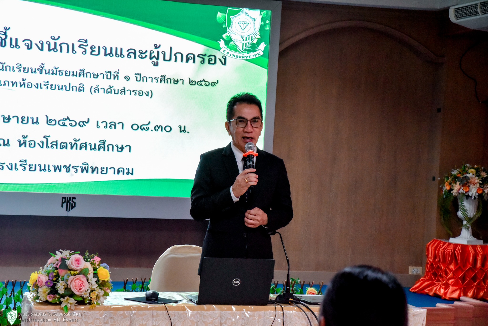 ในการนี้ ได้รับเกียรติจาก ดร.พีระวัตร จันทกูล ผู้อำนวยการโรงเรียนเพชรพิทยาคม เป็นประธานในการประชุมผู้ปกครองนักเรียน เพื่อชี้แจงแนวทางการจัดการศึกษาและระเบียบปฏิบัติต่างๆ ของโรงเรียน พร้อมด้วยคณะผู้บริหาร และคณะครู ร่วมดำเนินการรับเอกสารและตรวจสอบหลักฐานในการมอบตัวเป็นนักเรียนอย่างพร้อมเพรียงกัน