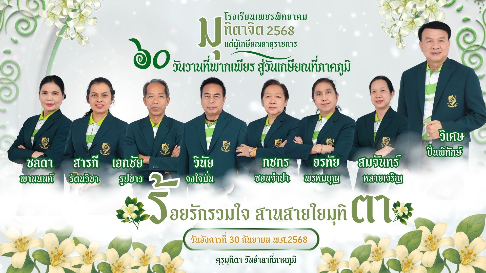 ในนามของโรงเรียน ขอกราบขอบพระคุณบุคลากรทุกท่านที่ได้ปฏิบัติหน้าที่ด้วยความซื่อสัตย์ สุจริต และเต็มเปี่ยมด้วยจิตวิญญาณความเป็นครู และขออวยพรให้การเริ่มต้นเส้นทางชีวิตหลังเกษียณเต็มไปด้วยสุขภาพที่แข็งแรง ความสุข ความสงบ และความสมบูรณ์ในทุก ๆ วัน