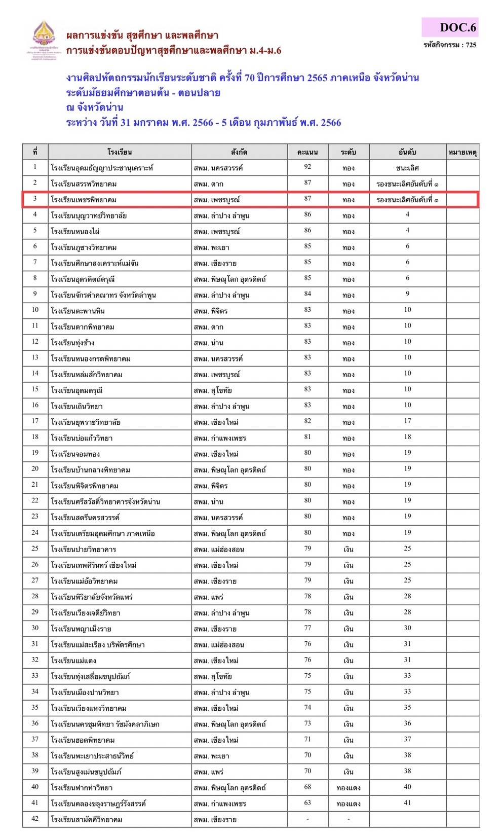 โรงเรียนเพชรพิทยาคม สพม.เพชรบูรณ์ รับรางวัลทอง รองชนะเลิศอันดับที่ 1 จากการแข่งขันตอบปัญหาสุขศึกษาและพลศึกษา ม.4-ม.6 กลุ่มสาระฯ สุขศึกษา และพลศึกษา
