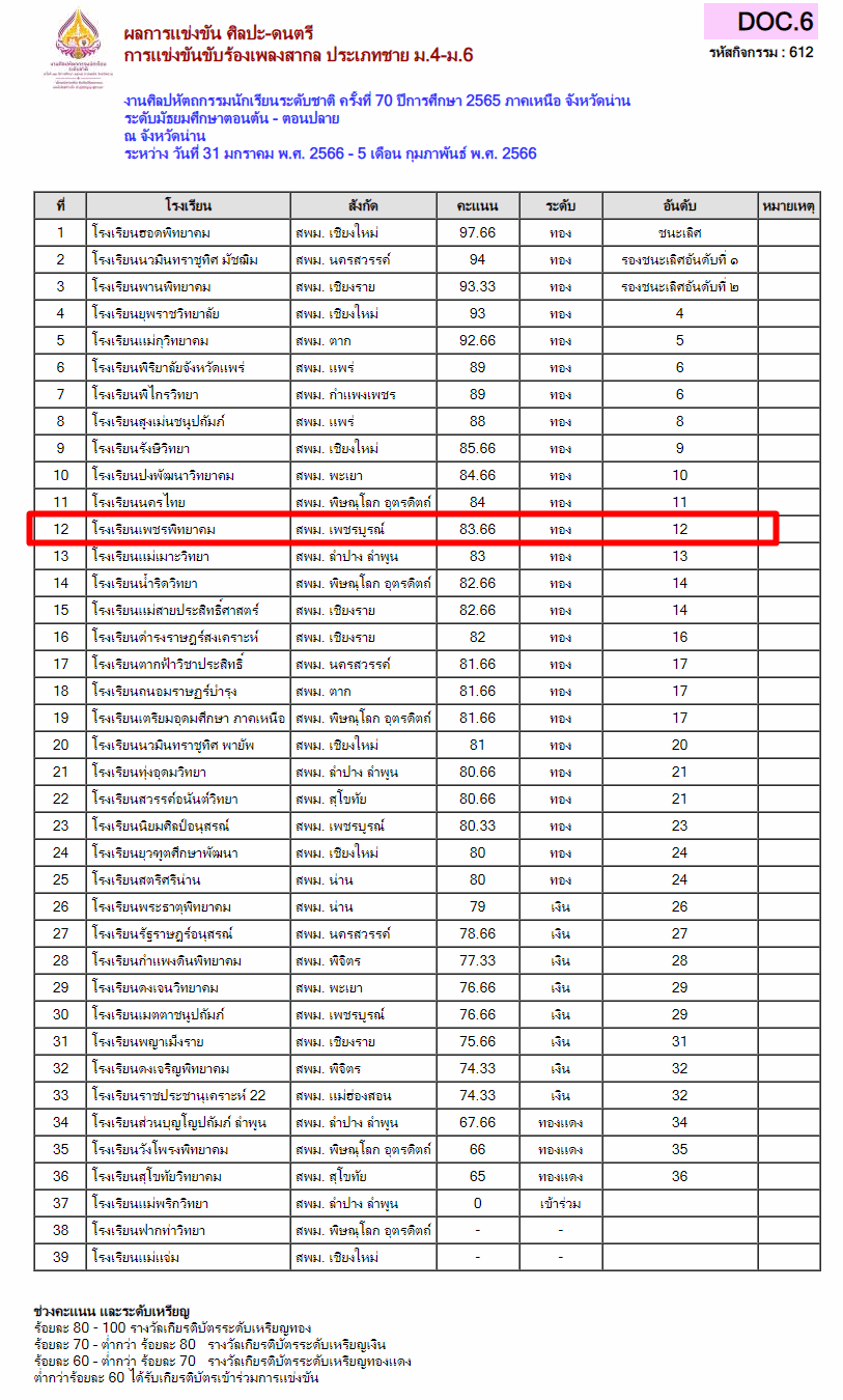 โรงเรียนเพชรพิทยาคม สพม.เพชรบูรณ์ รับรางวัลทอง จากการแข่งขันขับร้องเพลงสากล ประเภทชาย ม.4-ม.6 กลุ่มสาระฯ ศิลปะ-ดนตรี