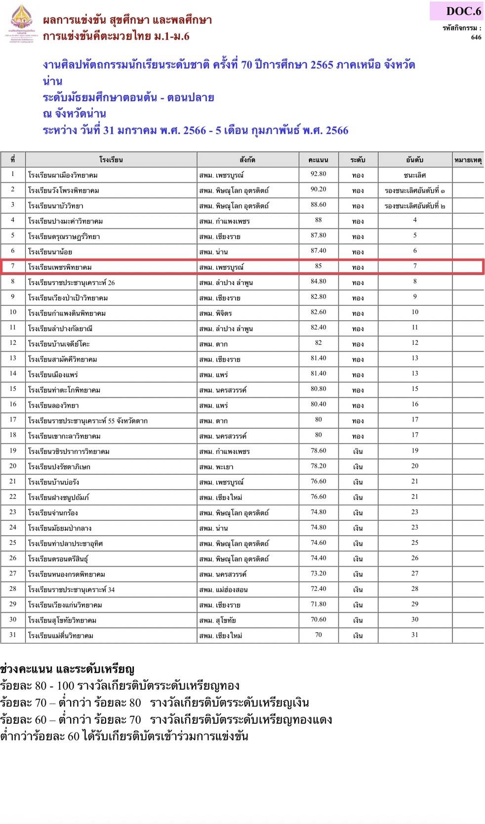 โรงเรียนเพชรพิทยาคม สพม.เพชรบูรณ์ รับรางวัลเหรียญทอง การแข่งขันคีตะมวยไทย ม.1-ม.6 งานศิลปหัตถกรรมนักเรียนระดับชาติ ครั้งที่ 70 ปีการศึกษา 2565