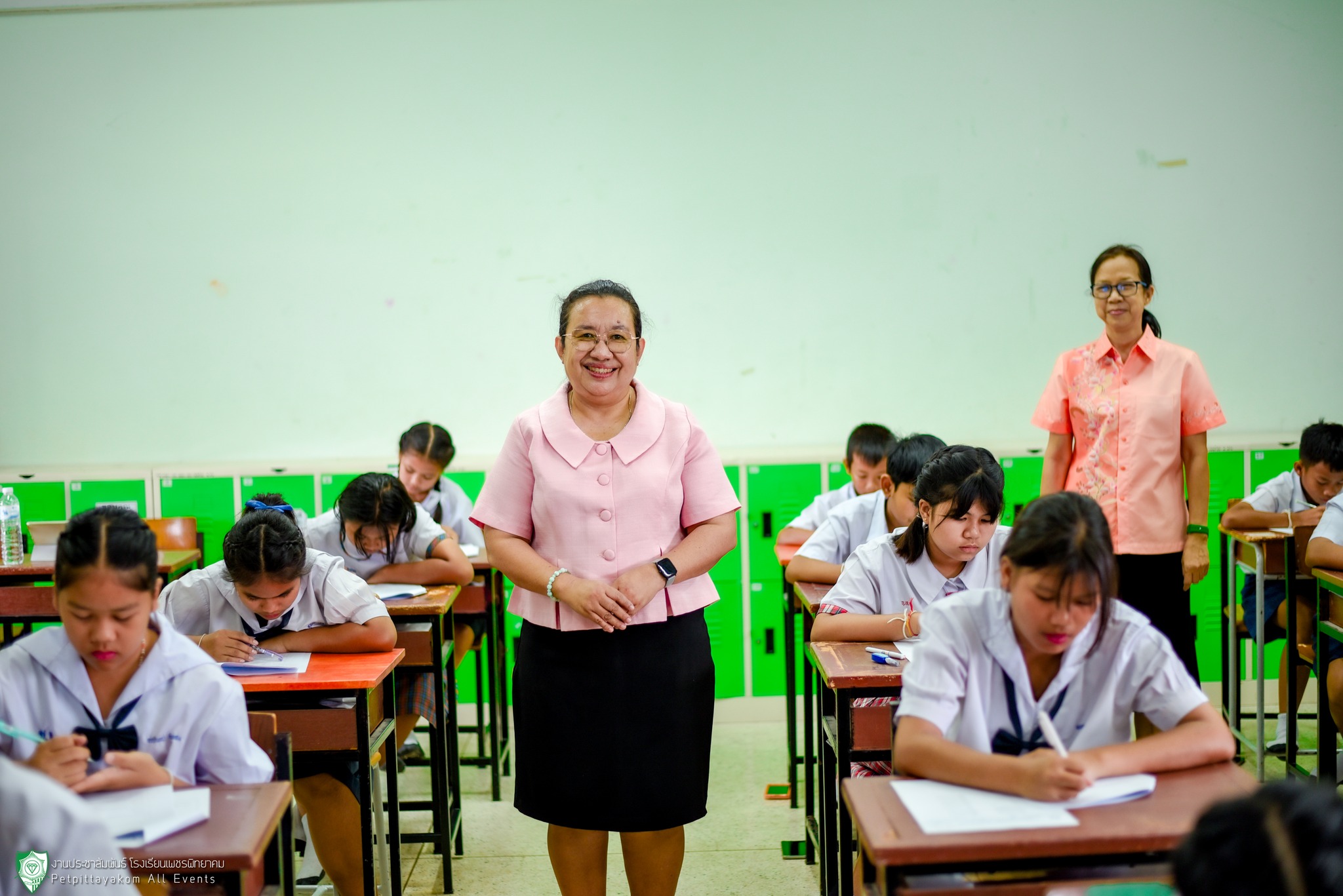 นายวิเศษ ปิ่นพิทักษ์ ผู้อำนวยการโรงเรียนเพชรพิทยาคม พร้อมด้วยรองผู้อำนวยการ และคณะครูดำเนินการจัดการสอบคัดเลือกนักเรียนเข้าศึกษาต่อระดับชั้นมัธยมศึกษาปีที่ 1 ปีการศึกษา 2568 ประเภทห้องเรียนปกติ (นักเรียนในเขตพื้นที่บริการ นักเรียนนอกเขตพื้นที่บริการ นักเรียนความสามารถพิเศษ และนักเรียนเงื่อนไขพิเศษ)โดยมี ดร.กนก ยนต์ชัย ผู้อำนวยการสำนักงานเขตพื้นที่การศึกษามัธยมศึกษาเพชรบูรณ์ พร้อมด้วย นางสาวประกาย บรรลัง ผู้อำนวยการกลุ่มส่งเสริมการจัดการศึกษา และนายกฤษณะพงศ์ มีนุ่น นักวิชาการศึกษาชำนาญการ สพม.เพชรบูรณ์ ในการลงพื้นที่ตรวจเยี่ยมสนามสอบ เมื่อวันที่ 5 เมษายน 2568 ณ โรงเรียนเพชรพิทยาคม จังหวัดเพชรบูรณ์