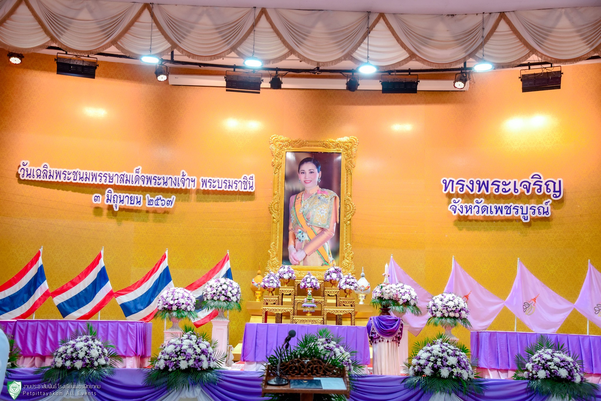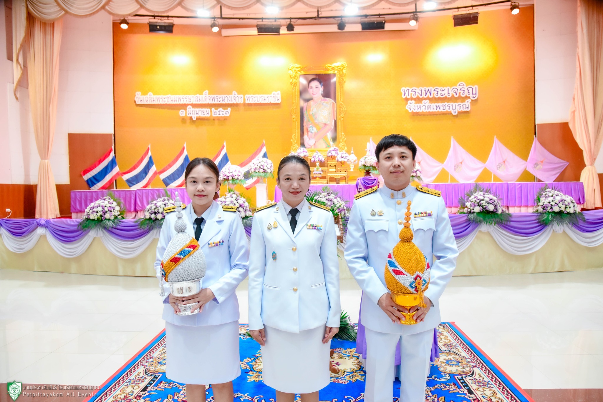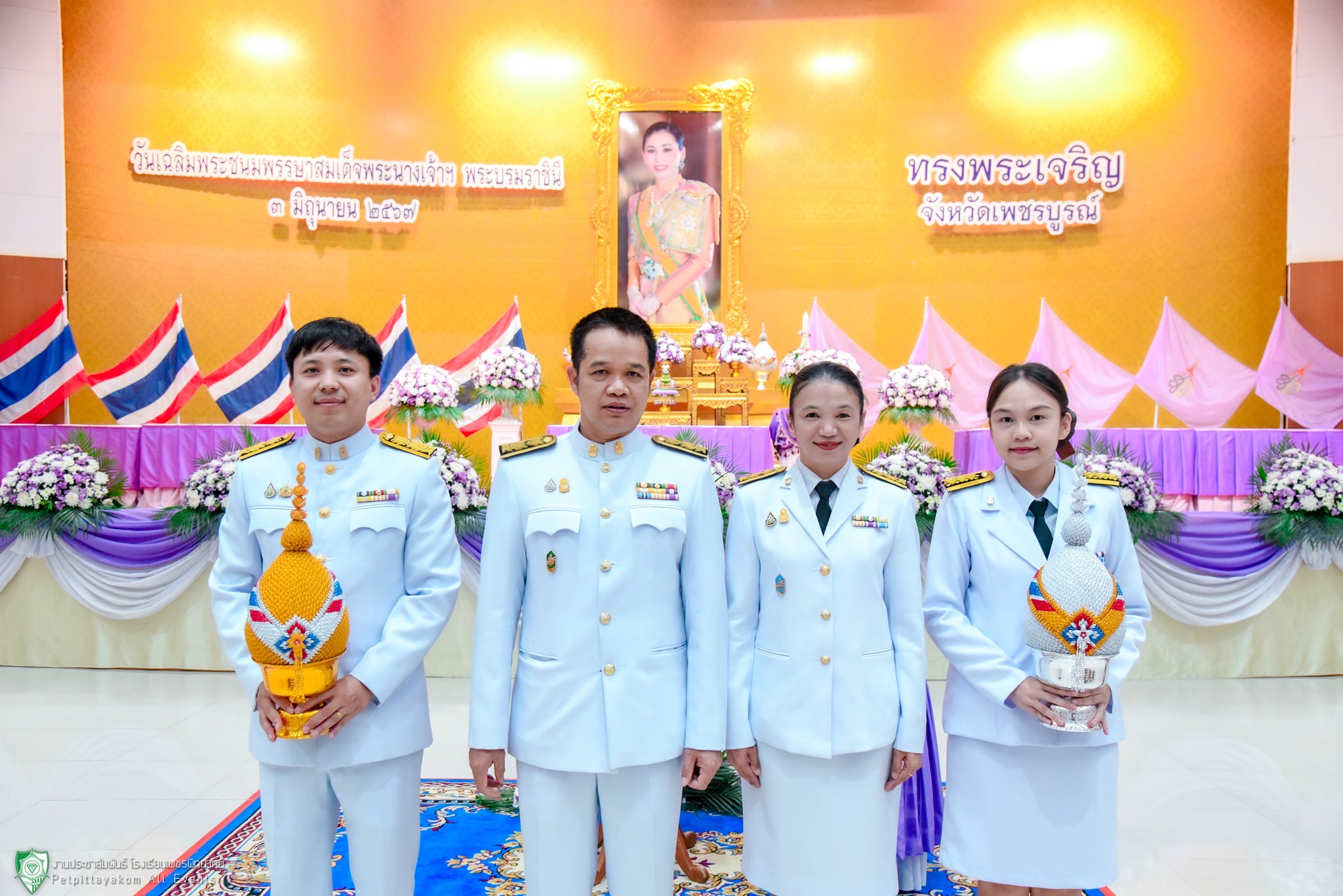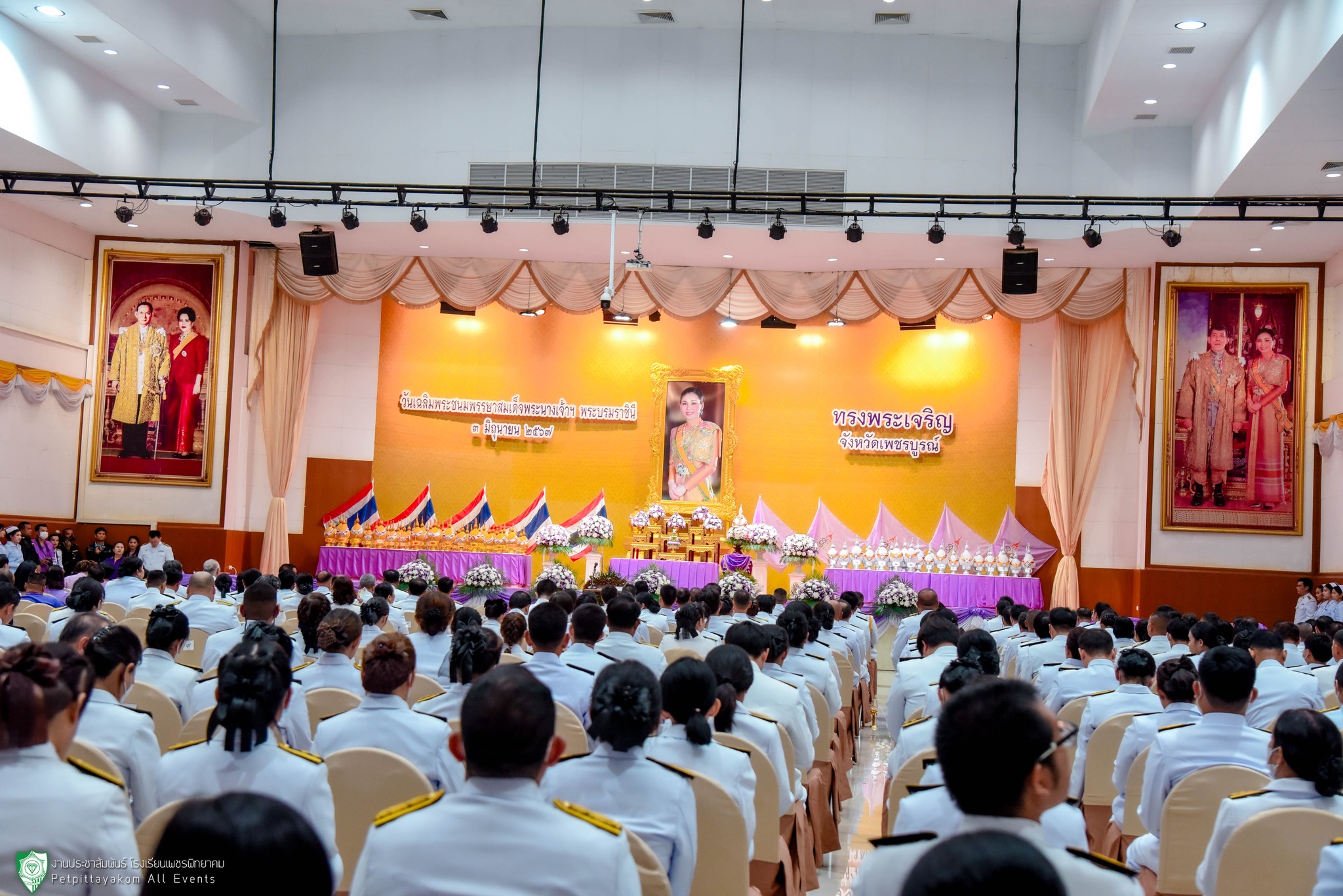 วันที่ 3 มิถุนายน 2567 โรงเรียนเพชรพิทยาคม นำโดยนางดวงตะวัน นามา รองผู้อำนวยการโรงเรียน พร้อมด้วยตัวแทนครู ร่วมพิธีถวายเครื่องราชสักการะ และพิธีจุดเทียนถวายพระพรขัยมงคลเนื่องในโอกาสวันเฉลิมพระชนมพรรษา สมเด็จพระนางเจ้าสุทิดา พัชรสุธาพิมลลักษณ พระบรมราชินี