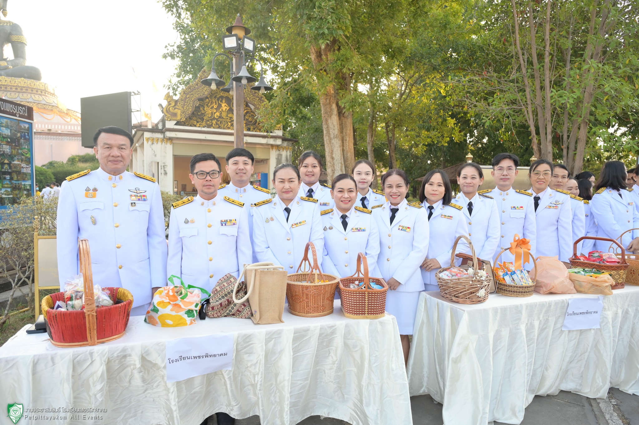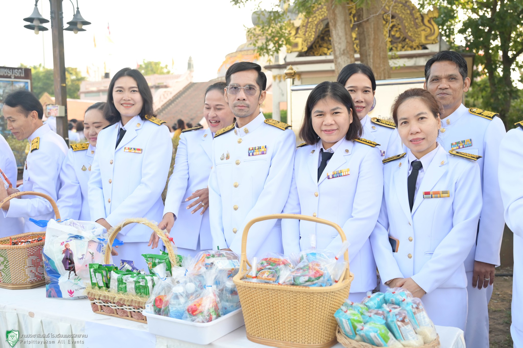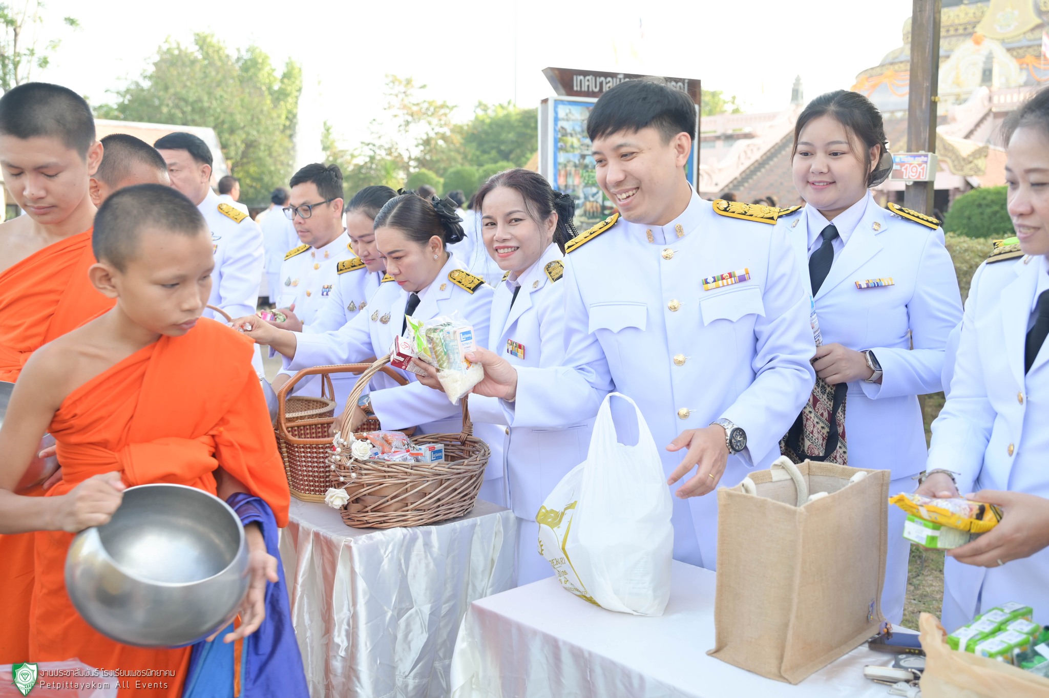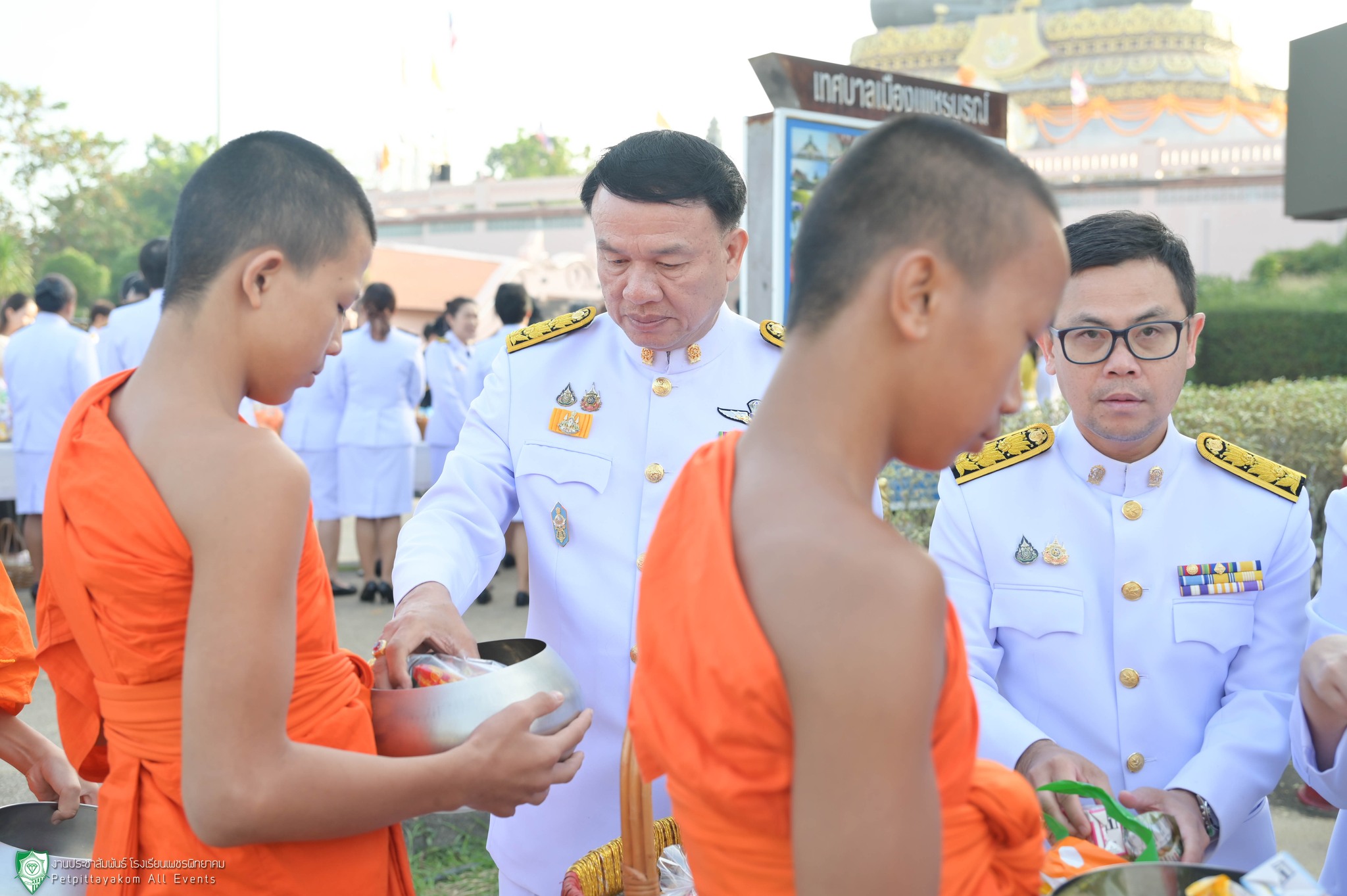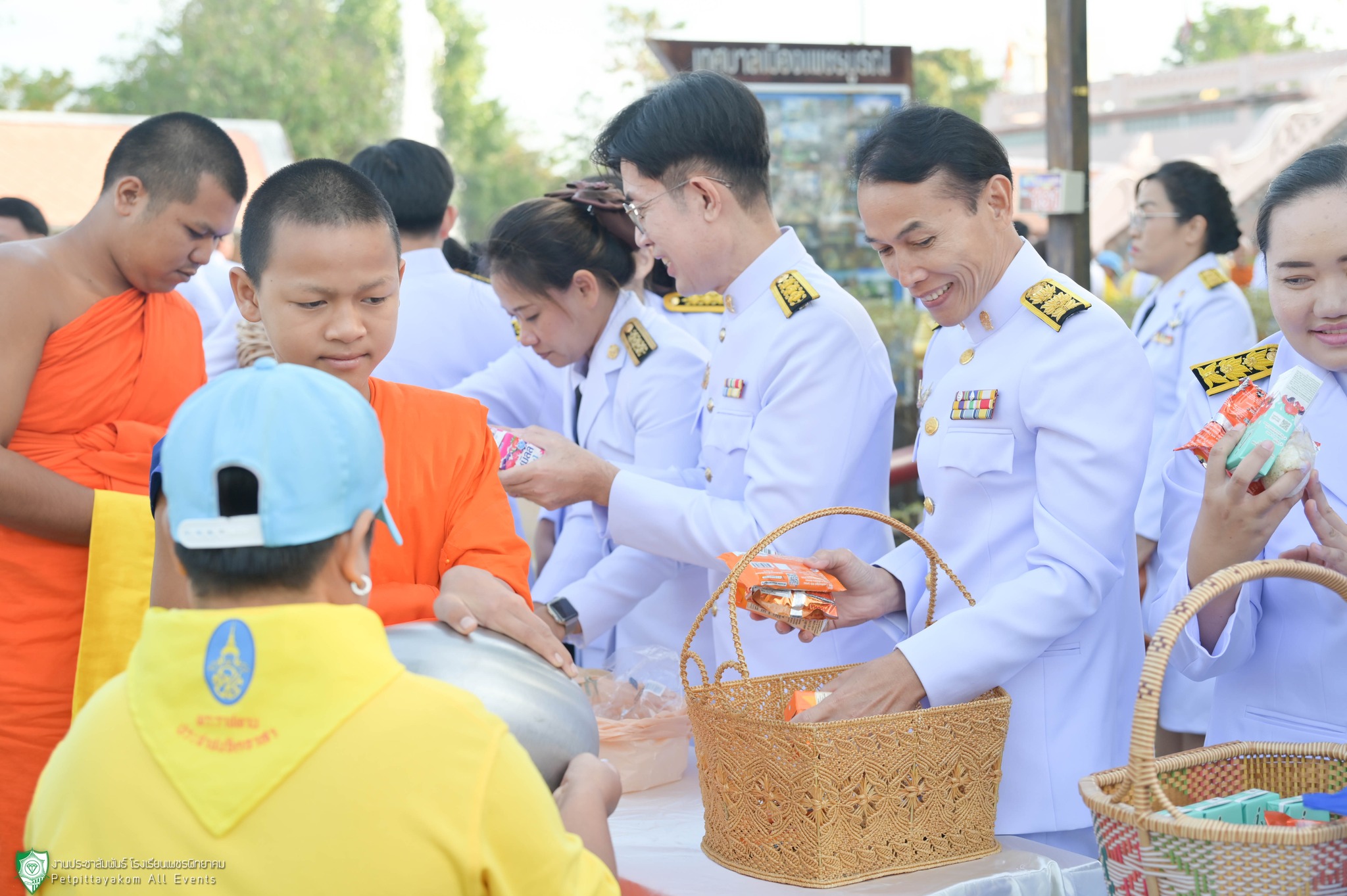 นายวิเศษ ปิ่นพิทักษ์ ผู้อำนวยการโรงเรียนเพชรพิทยาคม พร้อมด้วยรองผู้อำนวยการและคณะครูร่วมพิธีทำบุญตักบาตรถวายพระราชกุศล เนื่องในวันคล้ายวันพระราชสมภพพระบาทสมเด็จพระบรมชนกาธิเบศร มหาภูมิพลอดุลยเดชมหาราช บรมนาถบพิตร วันชาติ และวันพ่อแห่งชาติ ประจำปี 2567