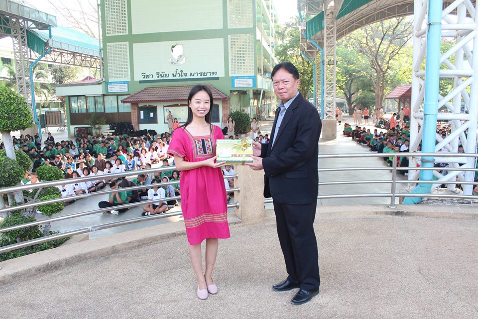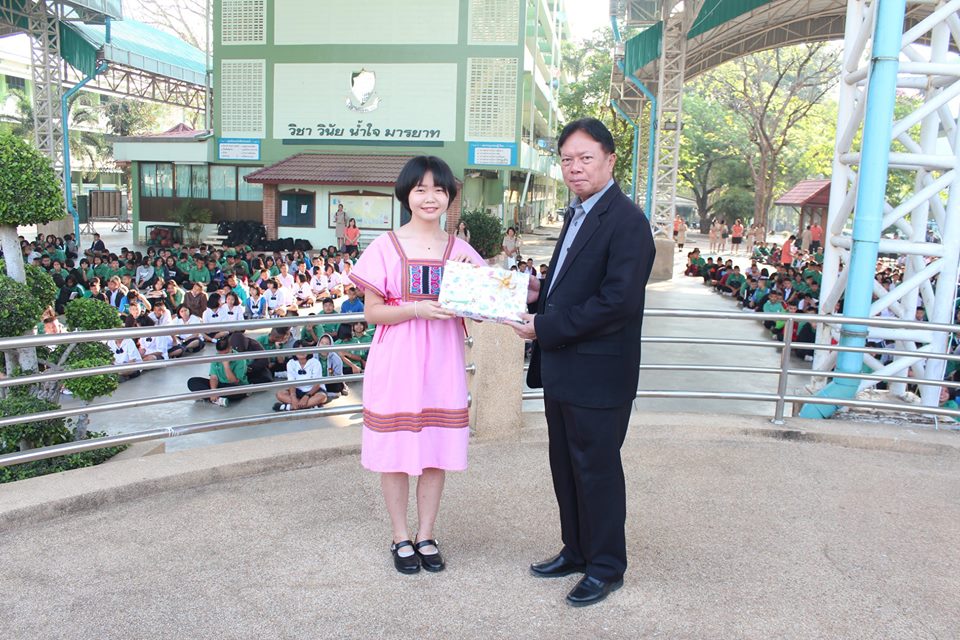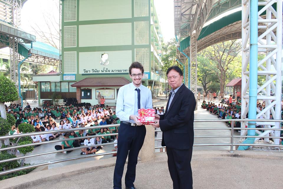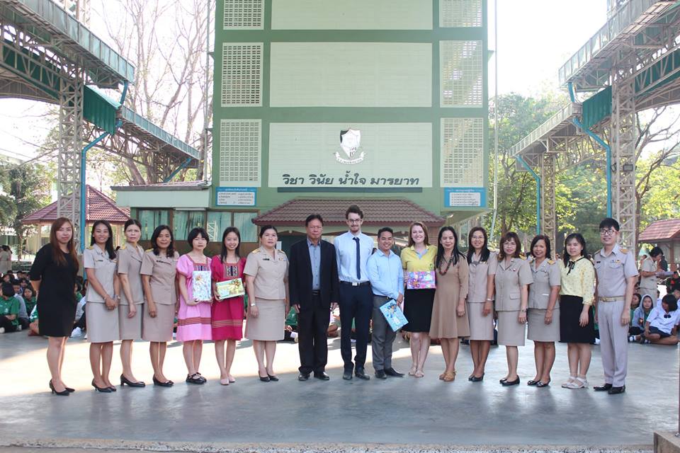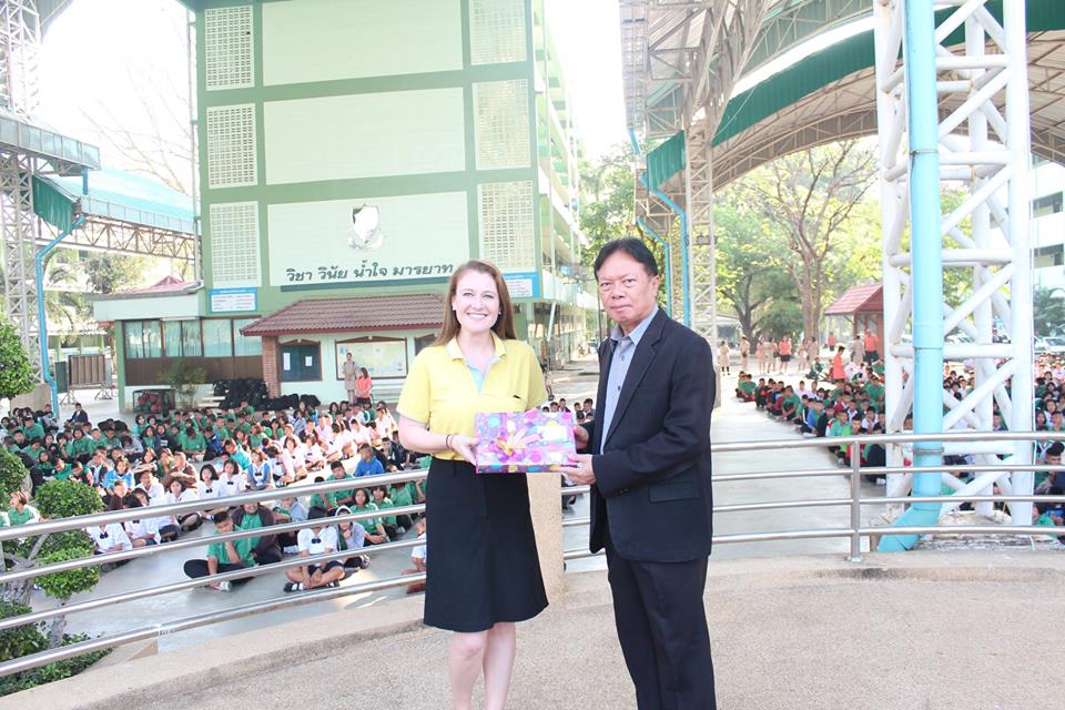 ครูชาวต่างชาติกล่าวคำอำลาแก่ผู้บริหาร คณะครูและนักเรียนโรงเรียนเพชรพิทยาคม ก่อนเดินทางกลับต่างประเทศ