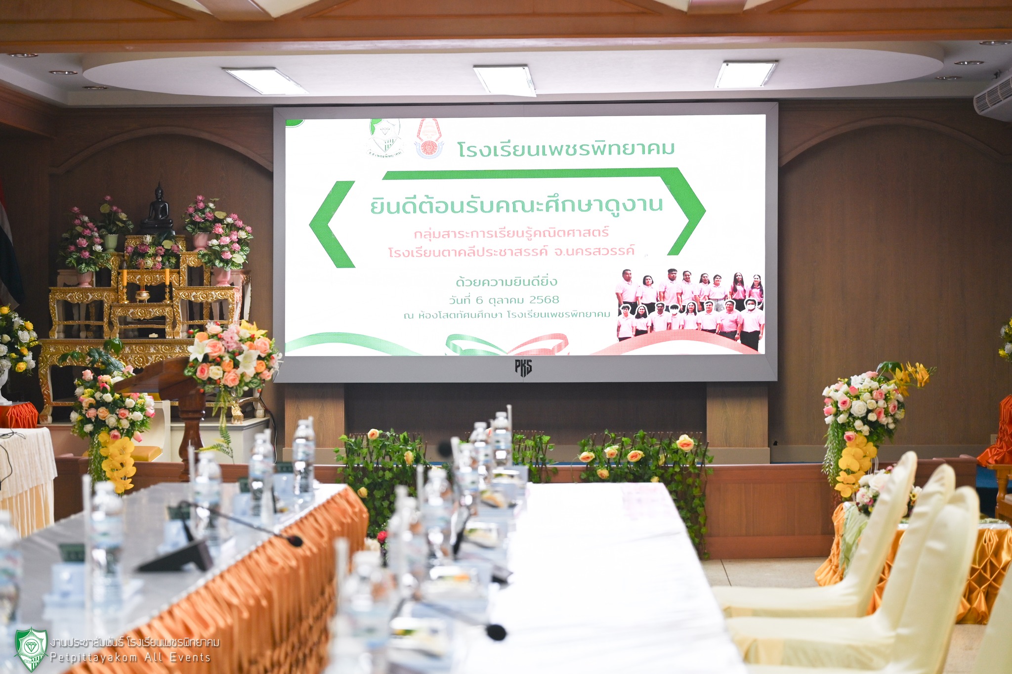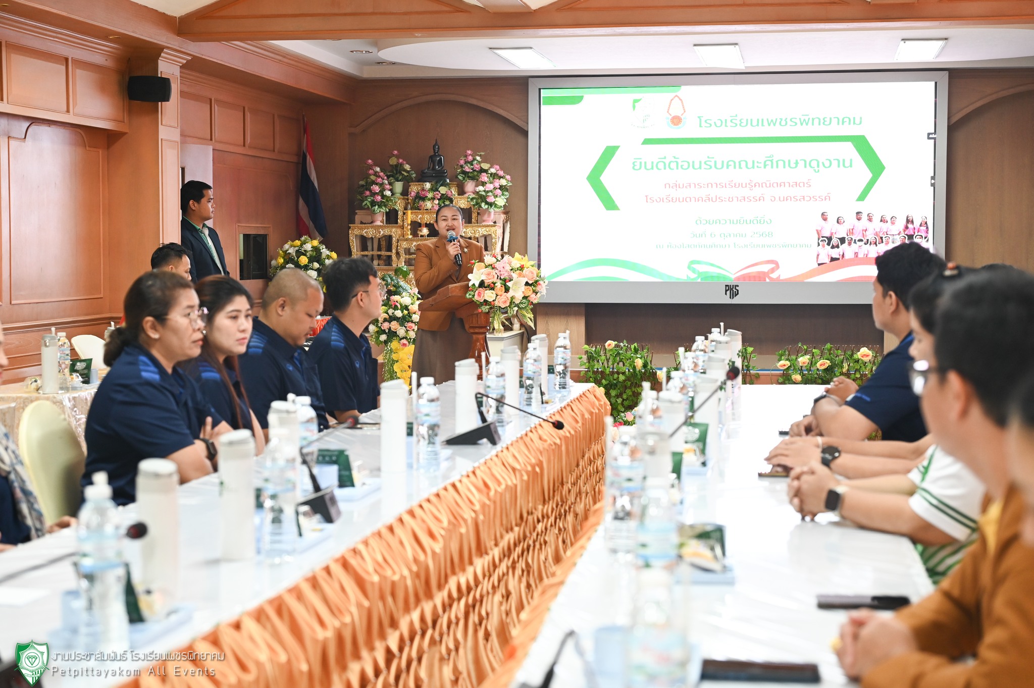 โรงเรียนเพชรพิทยาคม นำโดย นางสาวบุหรัน ขวัญพรม รองผู้อำนวยการโรงเรียน พร้อมด้วยรองผู้อำนวยการ ฝ่ายบริหาร และคณะครูร่วมต้อนรับคณะศึกษาดูงานและแลกเปลี่ยนเรียนรู้กับโรงเรียนตาคลีประชาสรรค์ จังหวัดนครสวรรค์ โดยมี นางวิภารัตน์ บุญวาส หัวหน้ากลุ่มสาระการเรียนรู้คณิตศาสตร์ และคณะครูโรงเรียนตาคลีประชาสรรค์เข้าร่วมกิจกรรม เมื่อวันที่ 6 ตุลาคม 2568 ณ ห้องโสตทัศนศึกษา โรงเรียนเพชรพิทยาคม จังหวัดเพชรบูรณ์