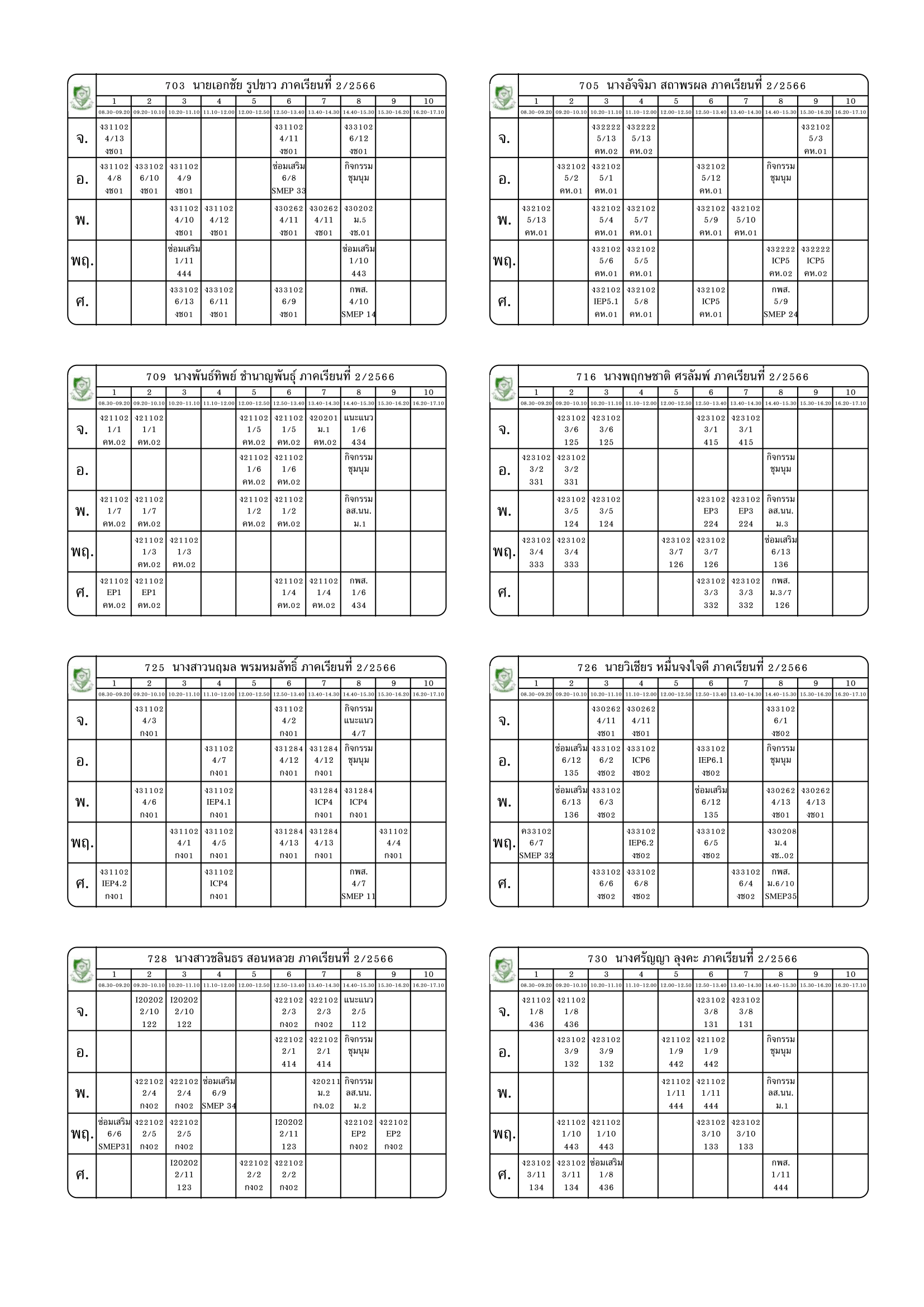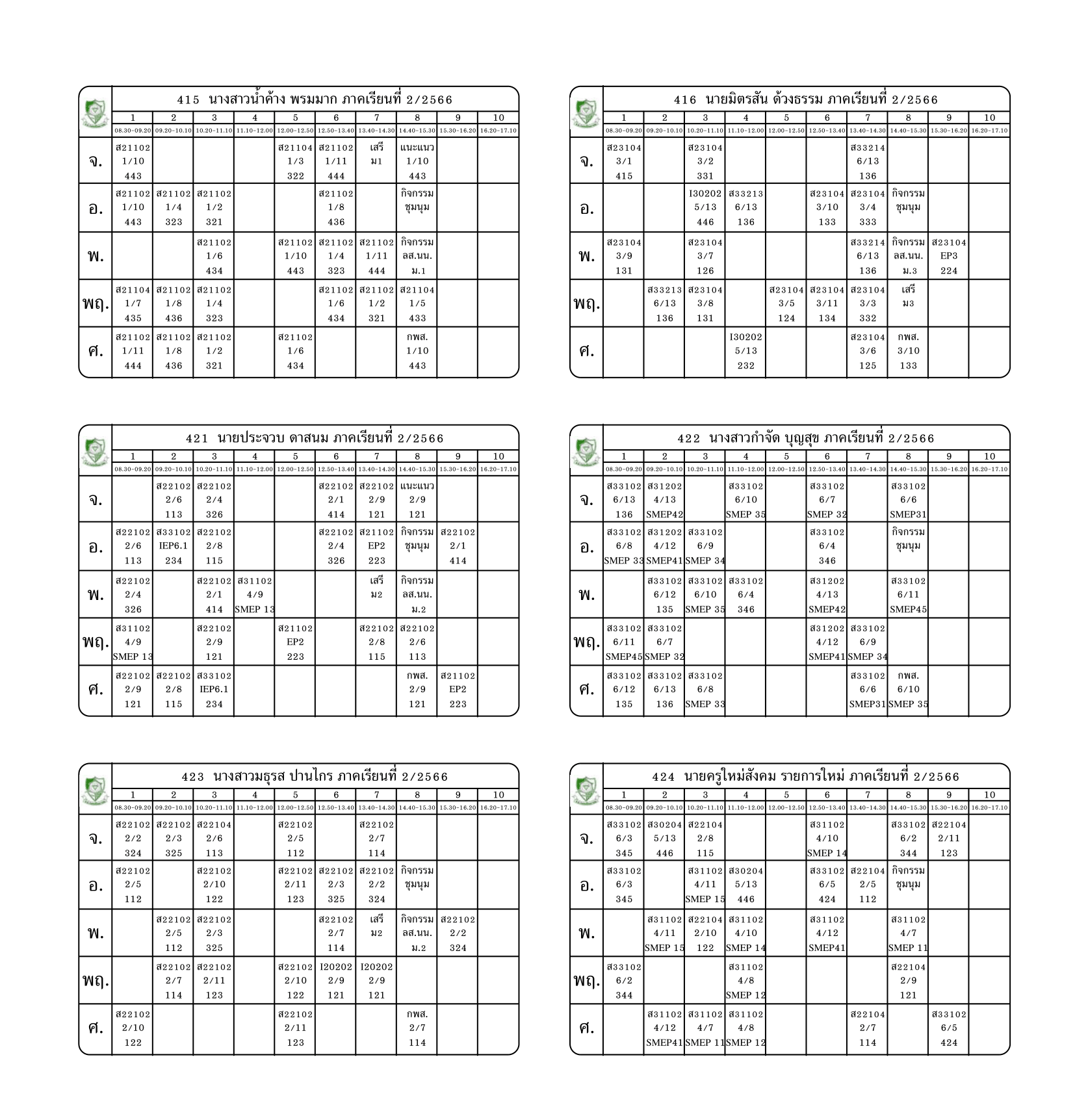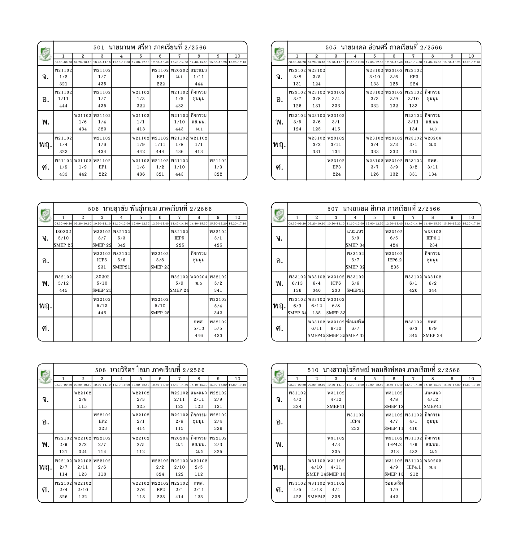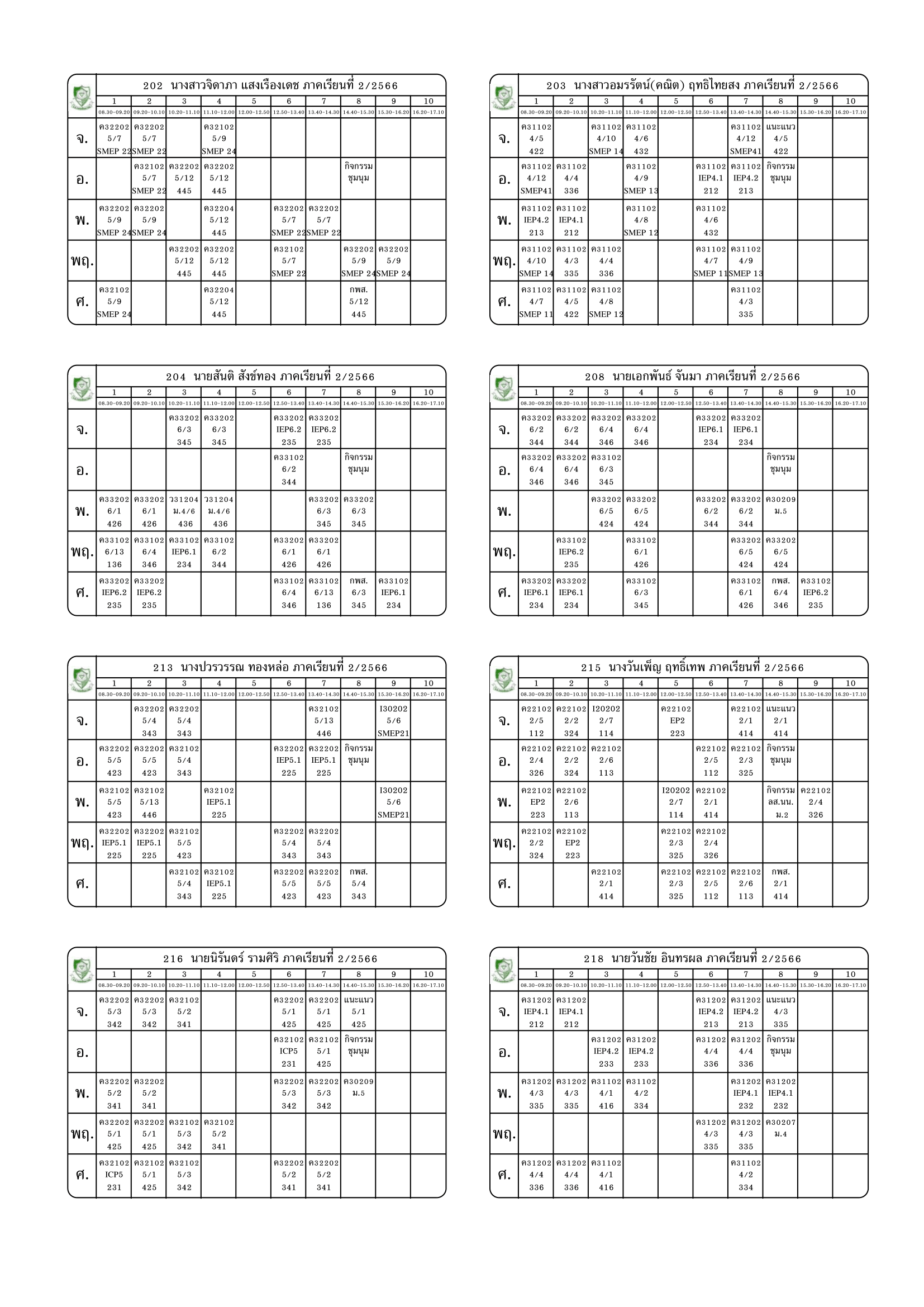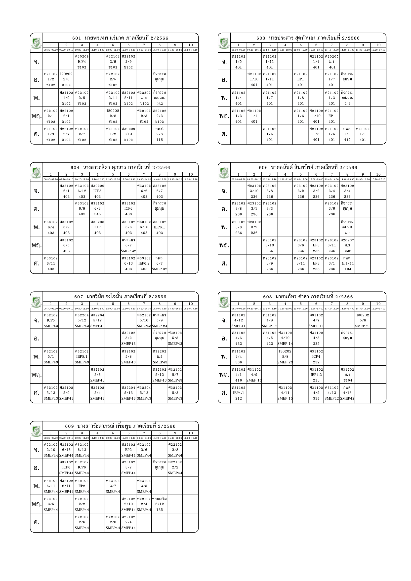 ตารางสอนครู ภาคเรียนที่ 2 ปีการศึกษา 2566 (ปรับใหม่) เริ่มใช้ตั้งแต่ 6 พ.ย.2566