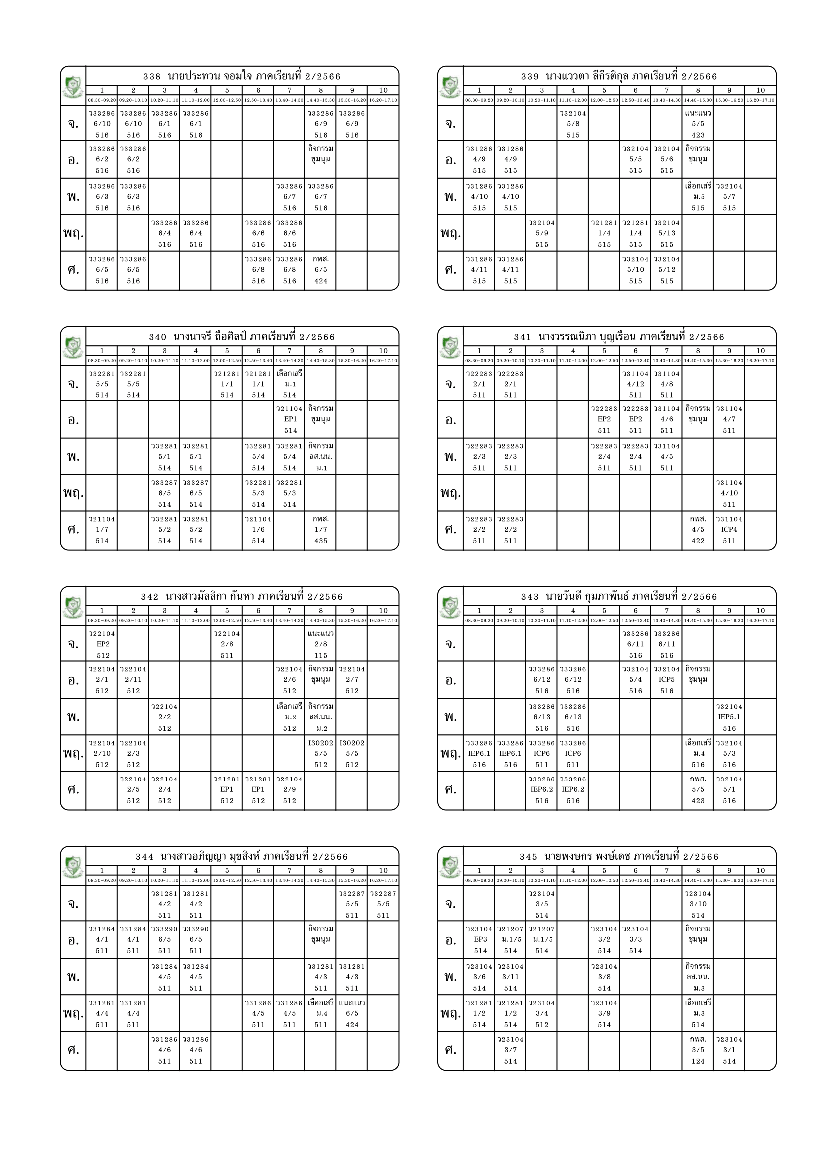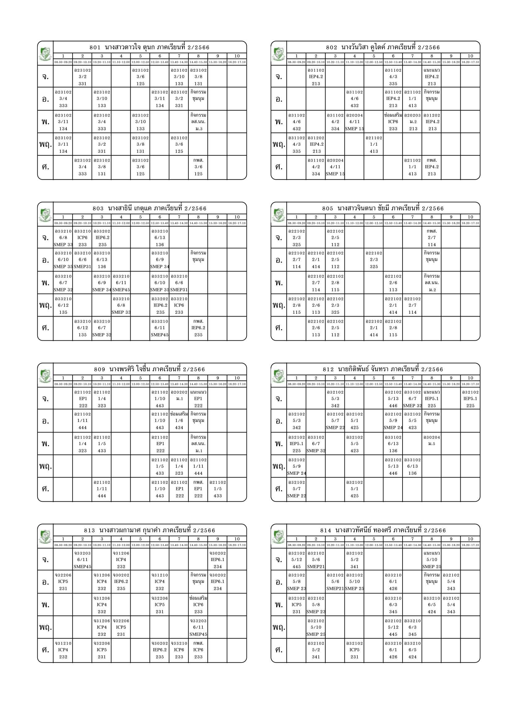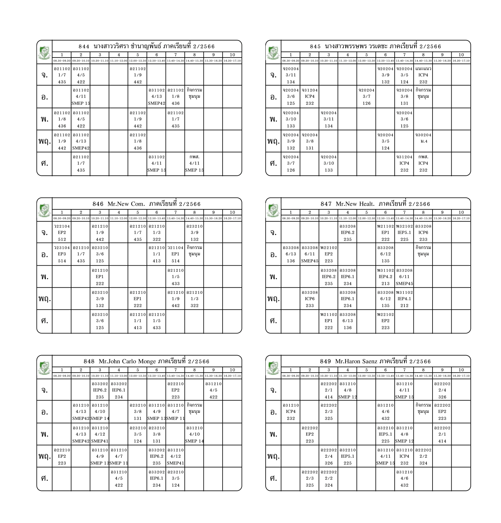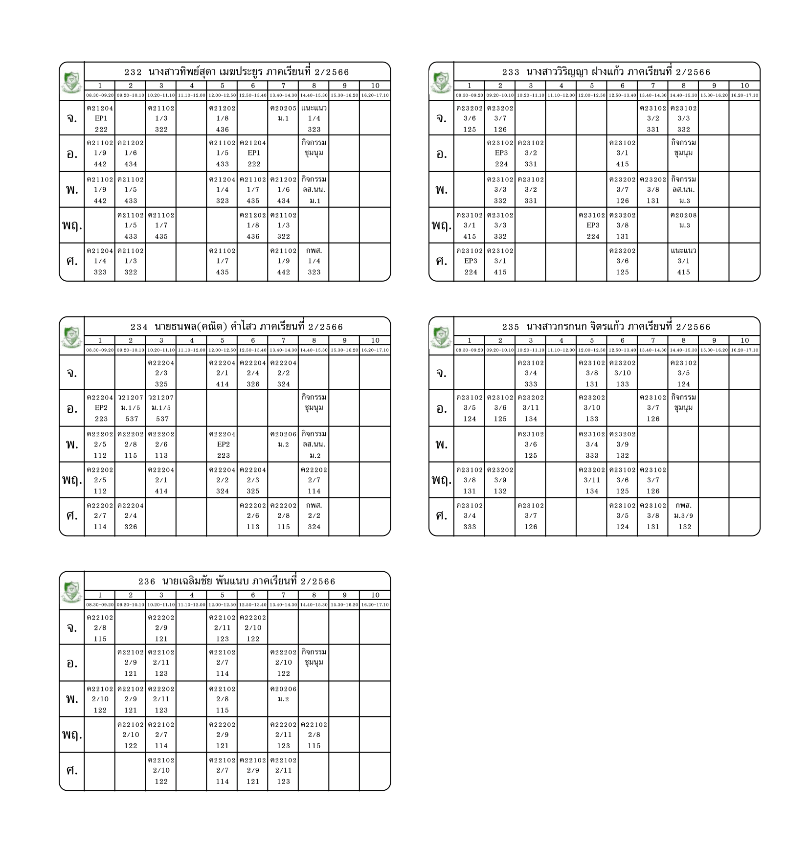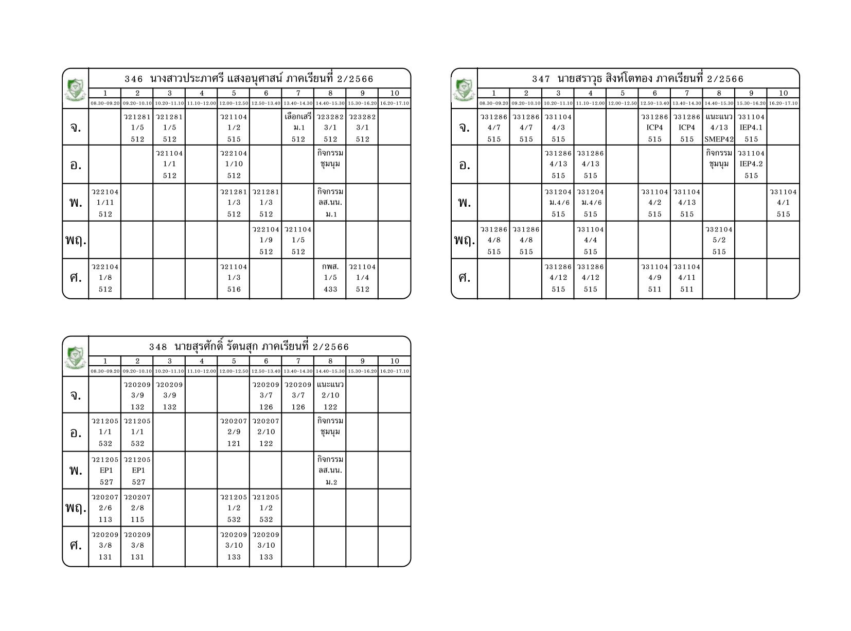 ตารางสอนครู ภาคเรียนที่ 2 ปีการศึกษา 2566 (ปรับใหม่) เริ่มใช้ตั้งแต่ 6 พ.ย.2566