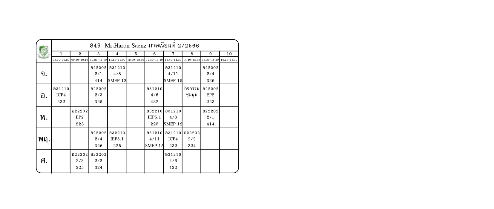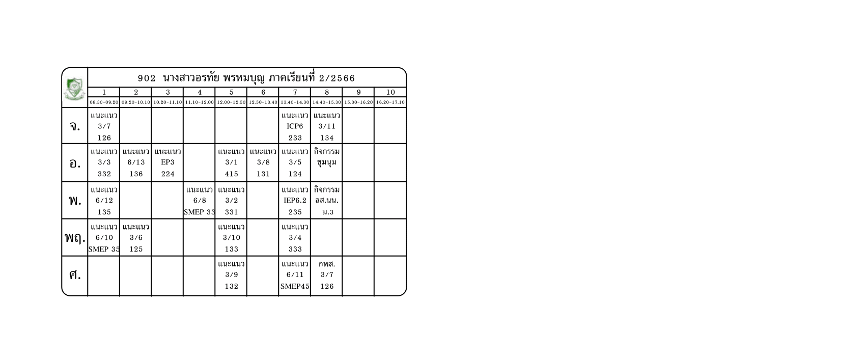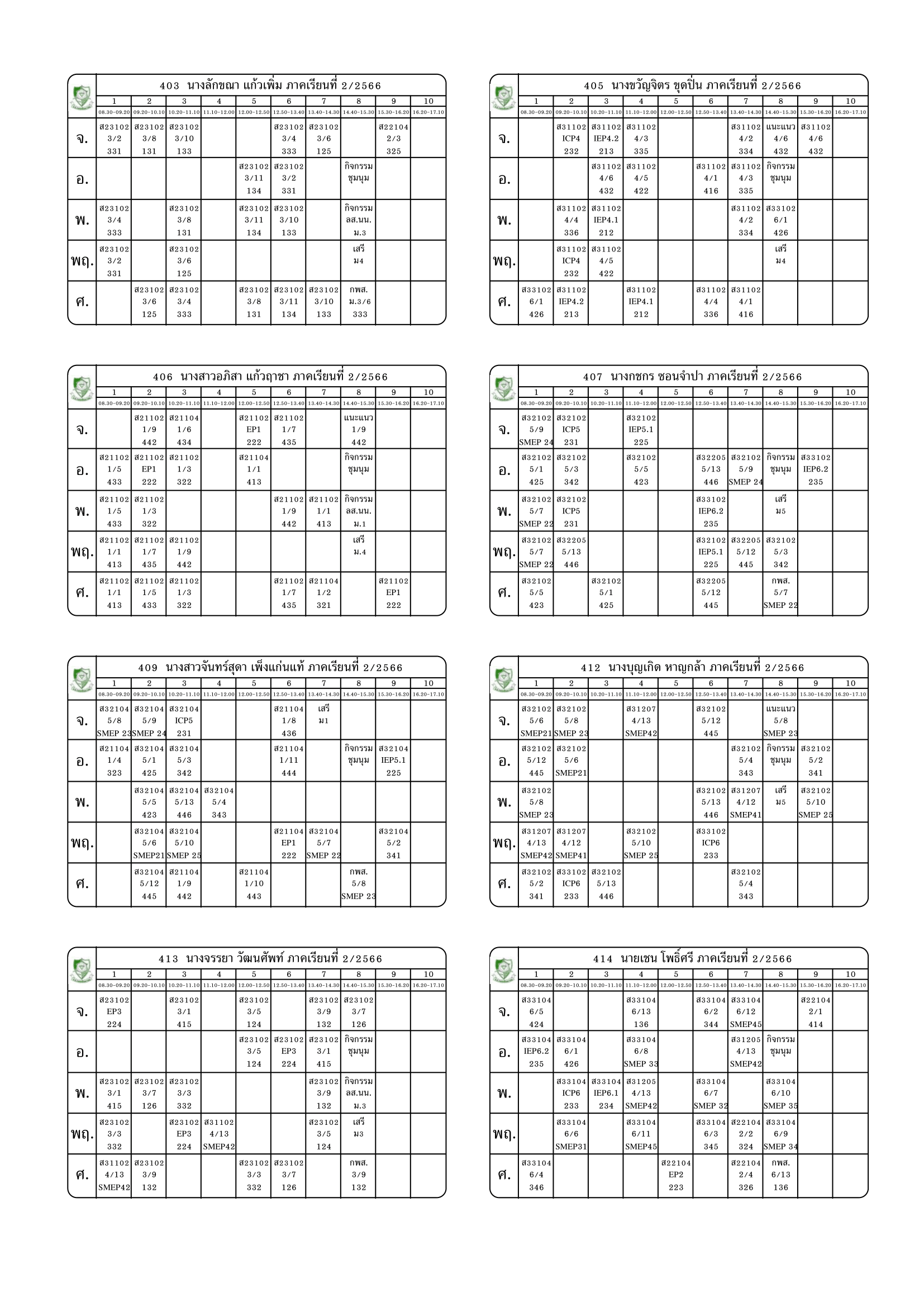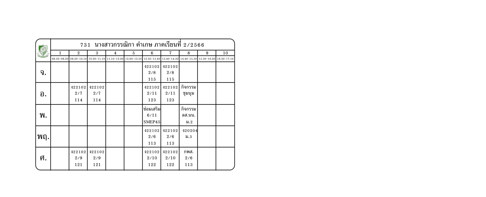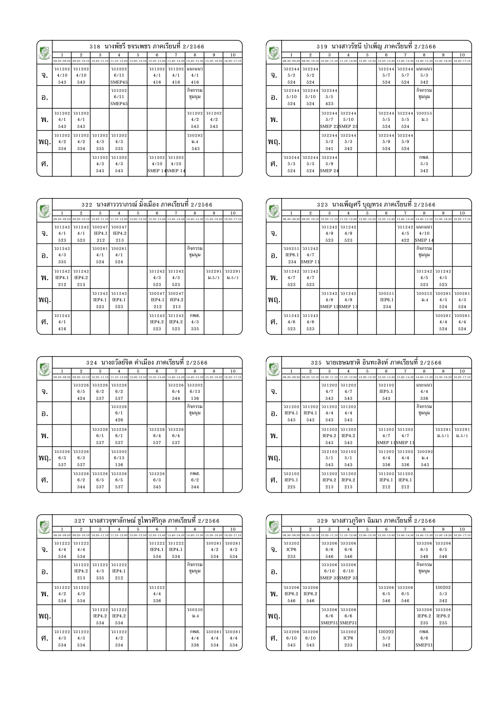 ตารางสอนครู ภาคเรียนที่ 2 ปีการศึกษา 2566 (ปรับใหม่) เริ่มใช้ตั้งแต่ 6 พ.ย.2566