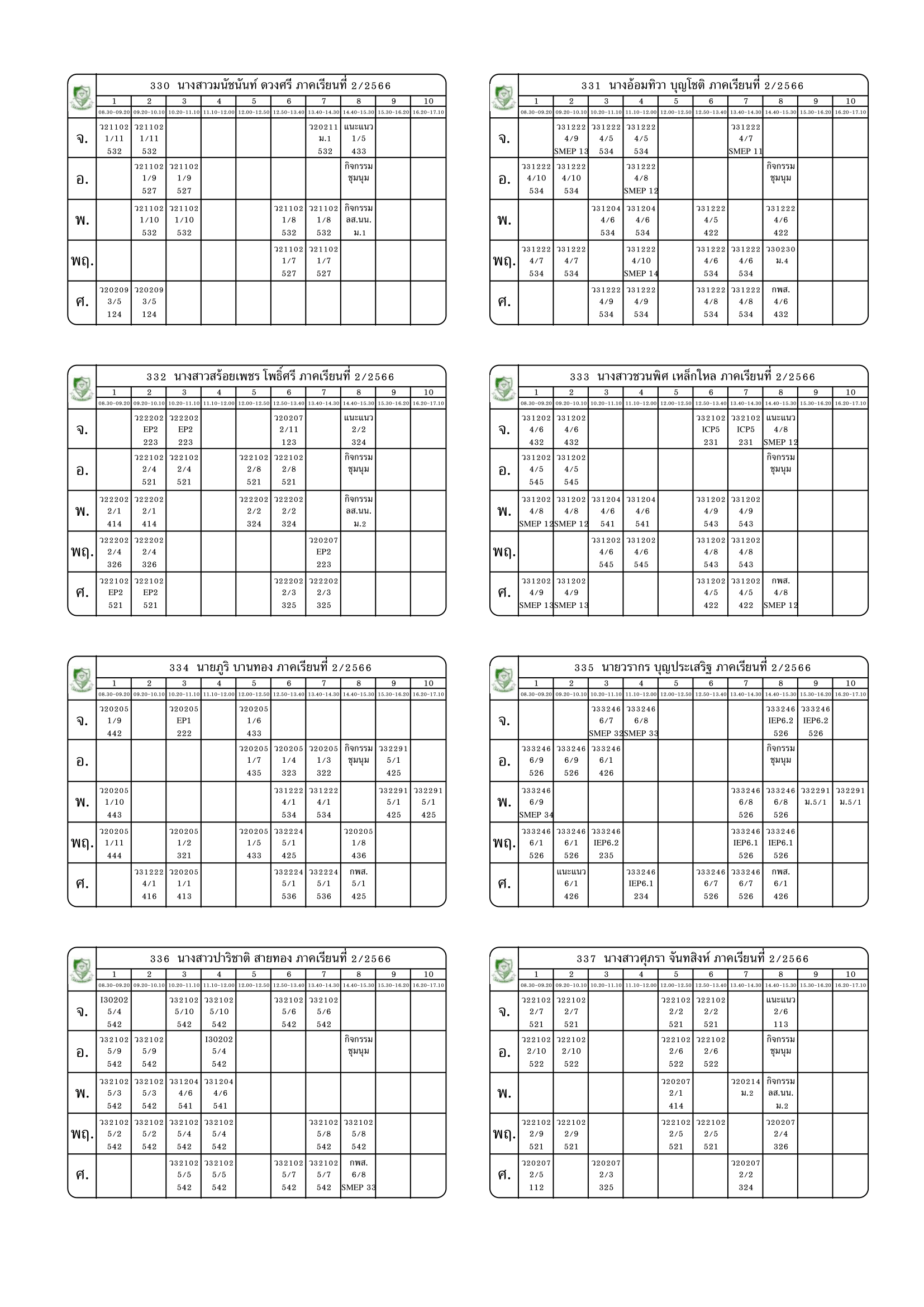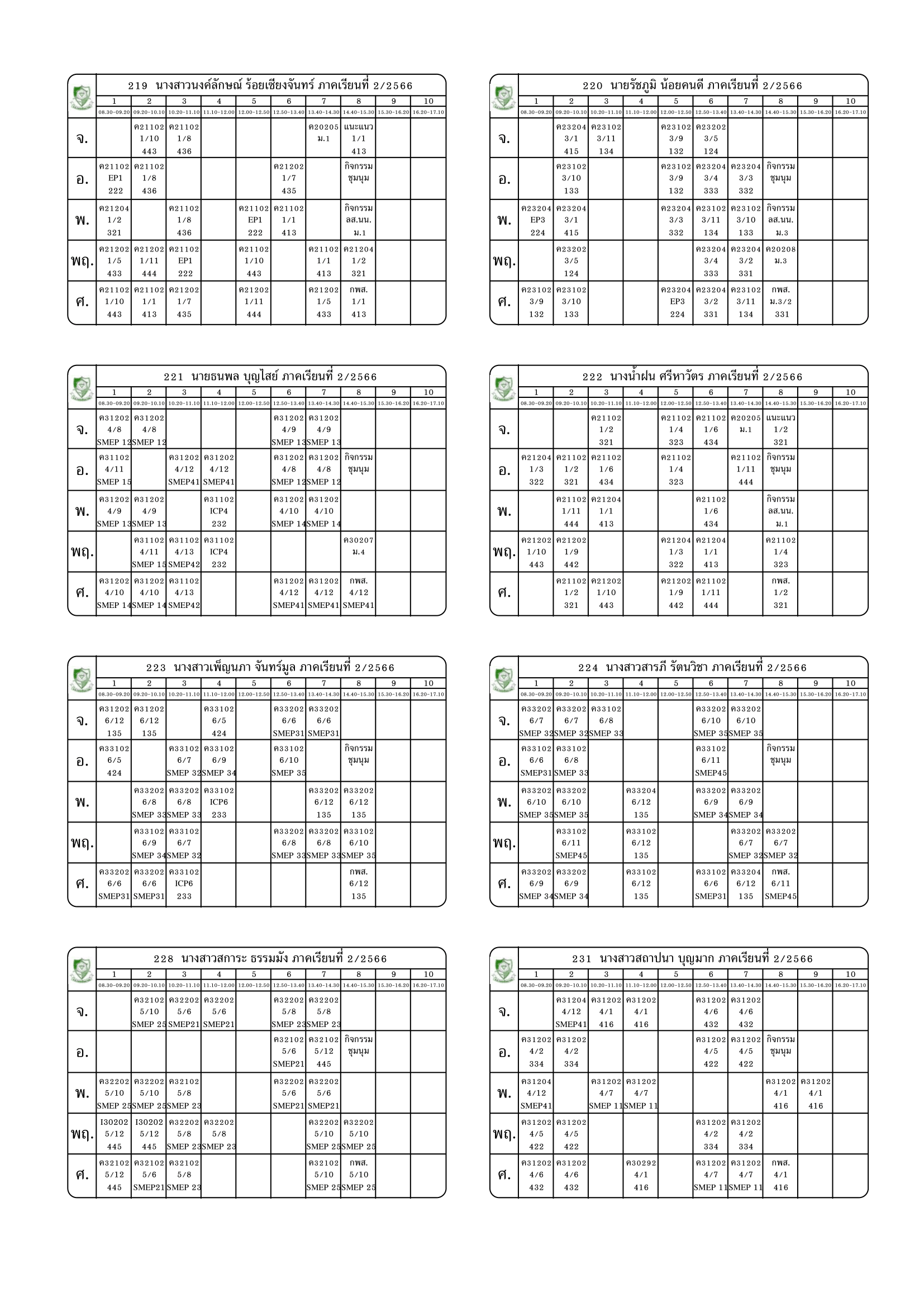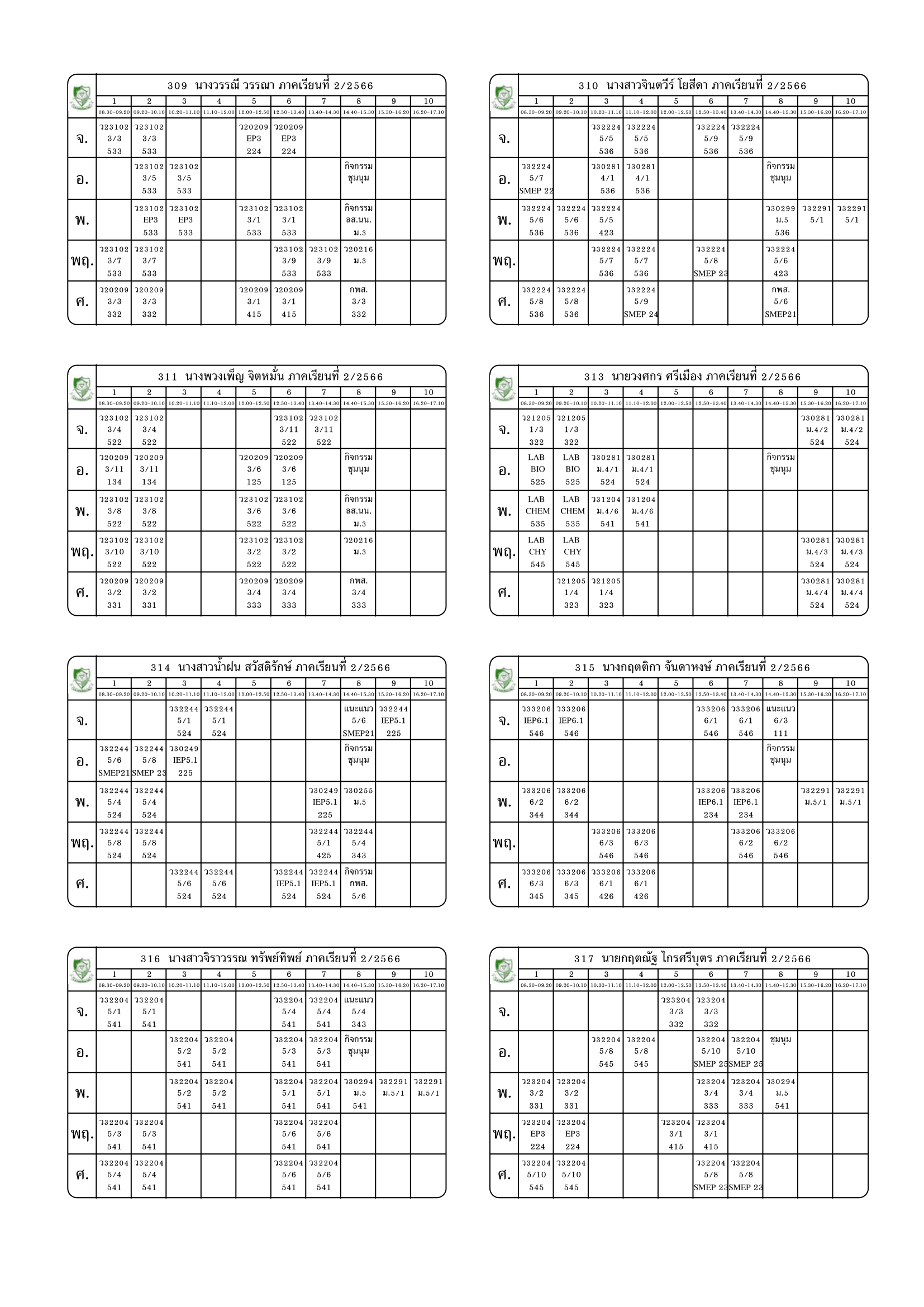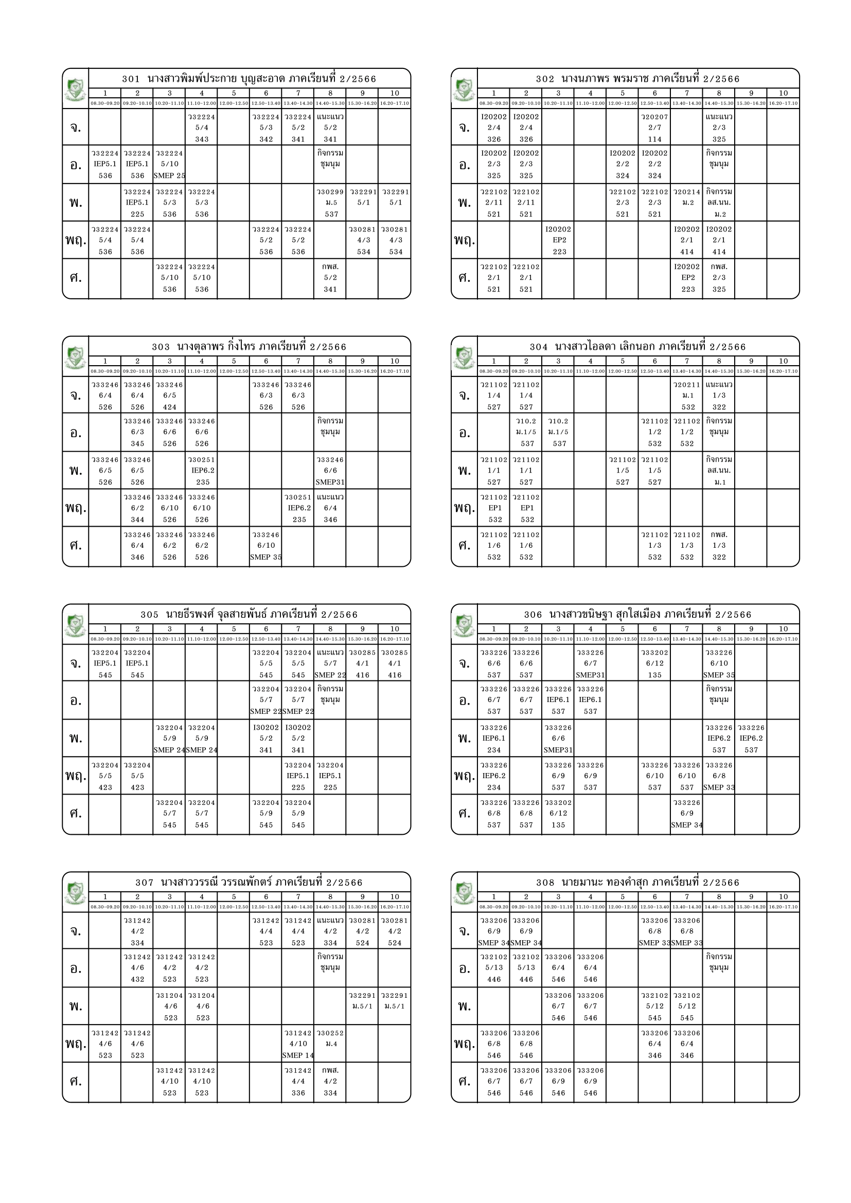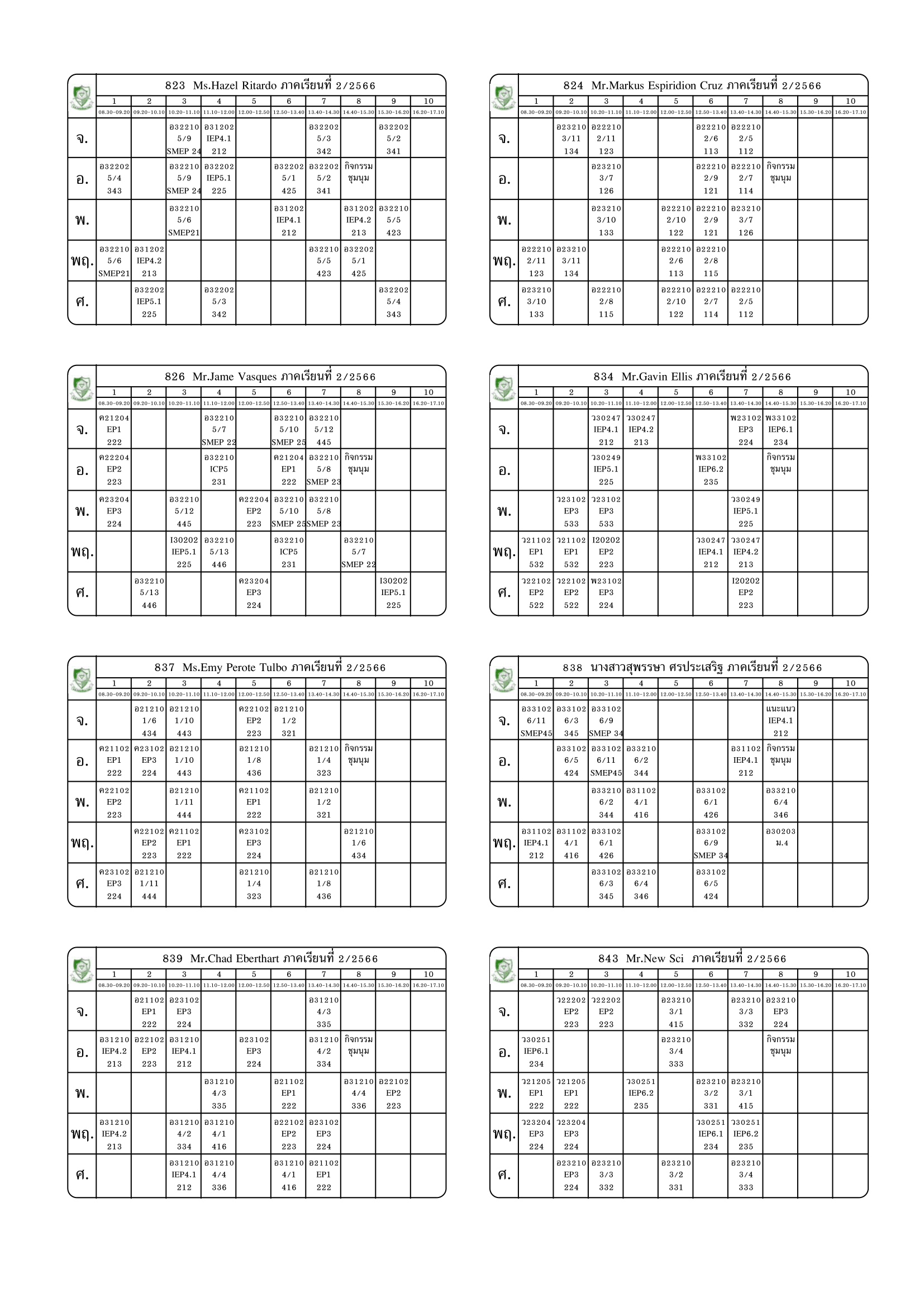 ตารางสอนครู ภาคเรียนที่ 2 ปีการศึกษา 2566 (ปรับใหม่) เริ่มใช้ตั้งแต่ 6 พ.ย.2566