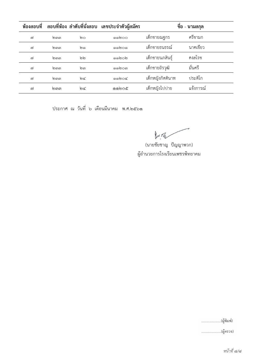 ประกาศรายชื่อผู้มีสิทธิ์สอบคัดเลือกนักเรียนเข้าเรียนชั้นมัธยมศึกษาปีที่ 1 ปีการศึกษา 2561